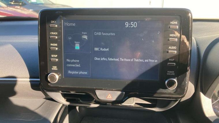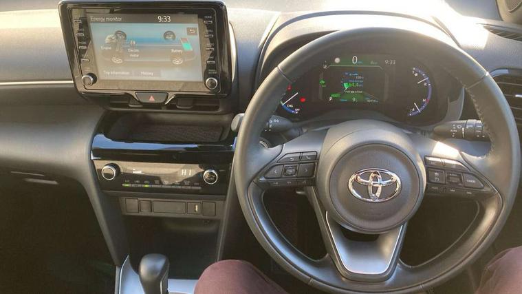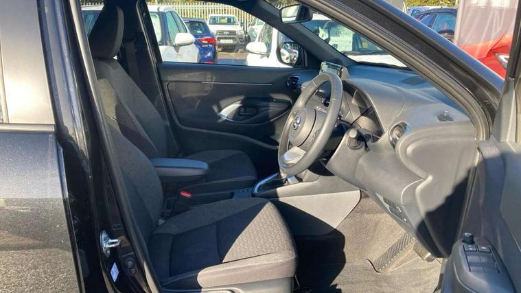 7" Multi information display screen, 8" Toyota touch 2 multimedia system with Smartphone integration with Apple CarPlay and Android auto, Adjustable speed limiter, Bluetooth connectivity, Driver attention alert system, eCall emergency system, Electric power steering, Full range intelligent adaptive cruise control, Hybrid system indicator, Key reminder warning, Lane trace assist, Multimedia, audio, telephone and voice recognition switches on steering wheel, My T Connected services, Pre-collision system enhanced with emergency steering assist, Reversing camera, Road sign assist - RSA, Steering assisted vehicle stability control, 6 speakers, DAB Digital radio, USB connection, 3rd brake light, Acoustic windscreen glass, Aluminium roof rails, Anti-jam protection on power windows, Auto high beam [AHB] with on/off switch, Automatic headlights, Black lower front grille, Black Shark-fin antenna, Black upper front grille, Black wheel arch mouldings, Body colour door handles, Body colour front bumper, Body colour rear bumper, Electric adjustable heated door mirrors, Follow me home headlights, Front and rear electric windows with auto up/down function, Headlight cut off reminder, Indicators integrated on door mirrors, Intermittent rear wiper, LED daytime running lights guide, LED front fog lights, LED front light guide, LED Indicators, LED projector headlights, LED rear light guide, Manual headlight levelling, Manually retractable door mirrors, Noise reduction layer on windscreen, Privacy glass, Rain sensor, Rear LED lights with sequential indicators, Rear side wing doors, Rear spoiler, Rear window defogger, 12v power outlet - front, 2x Rear coat hooks, 3 seat bench in 2nd row, 3 spoke leather steering wheel, 40:20:40 split folding rear bench seat, Adjustable speed limiter switch on steering wheel, Auto air conditioning, Black roof lining, Boot light, Central armrest, Centre console in light blue ambent lighting, Driver and front passenger personal lights, Fabric door trim, Fabric upholstery, Footwell in light blue ambient lighting, Front console box, Front cup holders, Front head restraints, Glovebox, Height adjustable driver's seat, Height adjustable front passenger seat, Hooks for luggage holding belts, Lane departure alert switch on steering control, Leather gearshift, Light blue ambient lighting on front doors, Manual telescopic and tilting steering wheel, Mirror on driver and passenger sun visor, Pollen air filter, Rear cup holders, Rear head restraints, Single front passenger seat, Soft tonneau cover, 3x3 point rear seat belts, ABS+EBD+Brake assist, Driver and passenger central airbags, Driver and passenger front airbags, Driver and passenger side airbags, Electronic parking brake, Emergency brake light system (EBS), Front seat belt reminder, Hill start assist control (HAC), ISOFIX child restraint system, Passenger airbag on/off switch, Pre-collision system with pedestrian and cyclist detection, Rear door child safety locks, Rear passenger side airbags, Rear seat belt reminder, Traction control, Tyre pressure warning system, Immobiliser, Intrusion alarm, Keyless smart entry with push button start, Power door locks, Power passenger window lock, Remote door lock, Tyre repair kit,