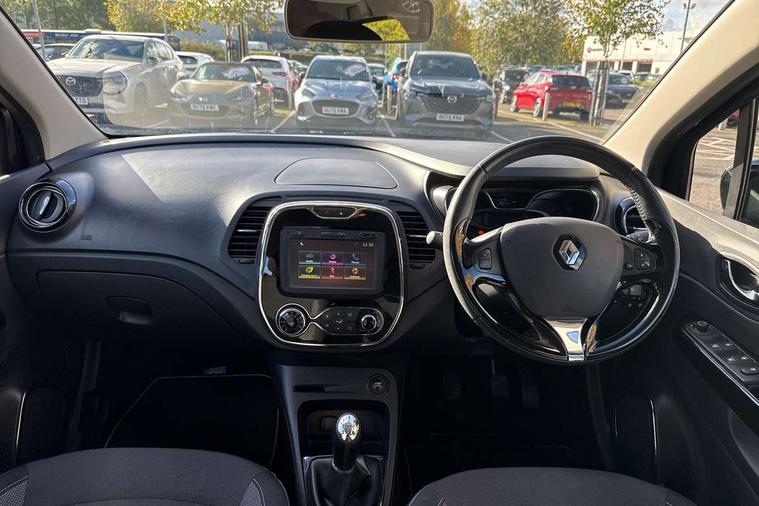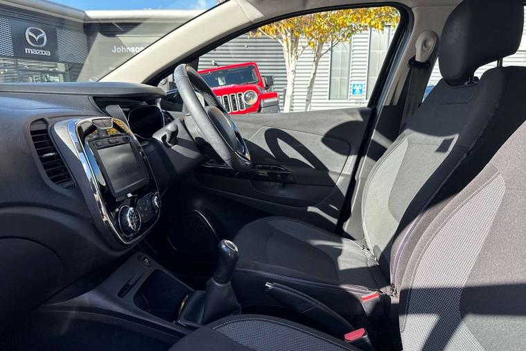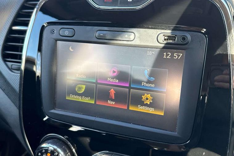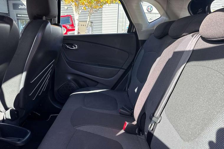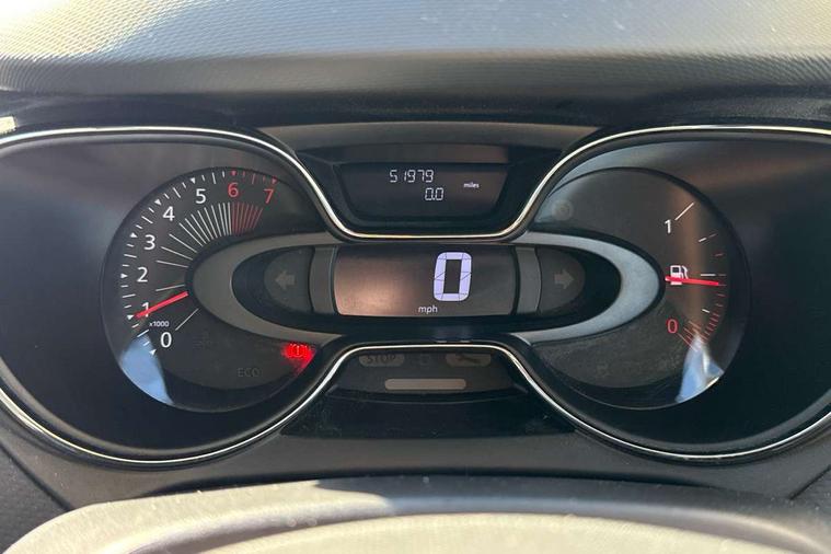 Bluetooth + USB, Cruise control + speed limiter, Trip computer, Variable PAS, Voice control system, Auxiliary input socket, DAB Digital radio, Fingertip controls for audio system, Automatic headlights + automatic windscreen wipers, Body colour door handles, Body coloured bumpers, Chrome headlight surround, Chrome insert to side strips, Chrome trim on tailgate, Cornering front fog lights, Electric adjustable heated door mirrors, Electric front windows + one touch + anti-pinch, Electric rear windows, LED daytime running lights, Rear wiper, Variable intermittent front wash/wipe, 12V Accessory socket, 2 cupholders, 3 rear height adjustable headrests, 60/40 split rear seats, Climate control, Cloth upholstery, Front seat backrest storage nets, Gloss black door armrest, Height adjustable driver's seat, Height adjustable front headrests, Height/reach adjust steering wheel, ISOFIX on front passenger and rear outer seats, Leather steering wheel and gear knob, Pollen filter, Removable storage between front and rear passenger, Reversible boot floor, Storage area on top of dashboard, Storage compartments in doors, Variable boot floor, 3 point seatbelts on all rear seats, ABS+EBA, Driver/Front Passenger airbags, ESC - Electronic Stability Control + traction control, Front passenger airbag deactivation, Front side airbags(head+thorax), Hill start assist, Rear door child safety locks, Seatbelt warning, Tyre pressure monitor, Deadlocking system, Keyless entry, RAID (Renault Anti-Intruder Device) with automatic door locking, Thatcham Cat 2 engine immobiliser,