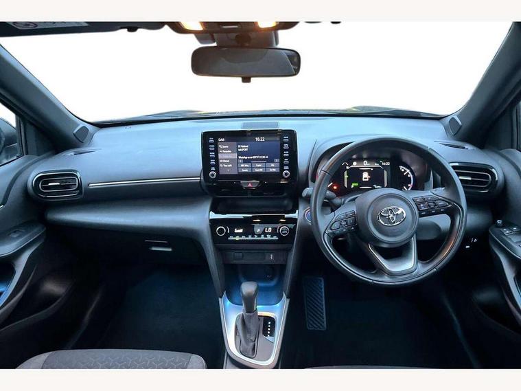 7" Multi information display screen, 8" Toyota touch 2 multimedia system with Smartphone integration with Apple CarPlay and Android auto, Adjustable speed limiter, Bluetooth connectivity, Driver attention alert system, eCall emergency system, Electric power steering, Full range intelligent adaptive cruise control, Hybrid system indicator, Key reminder warning, Lane trace assist, Multimedia, audio, telephone and voice recognition switches on steering wheel, My T Connected services, Pre-collision system enhanced with emergency steering assist, Reversing camera, Road sign assist - RSA, Steering assisted vehicle stability control, 6 speakers, DAB Digital radio, USB connection, 3rd brake light, Acoustic windscreen glass, Aluminium roof rails, Anti-jam protection on power windows, Auto high beam [AHB] with on/off switch, Automatic headlights, Black lower front grille, Black Shark-fin antenna, Black upper front grille, Black wheel arch mouldings, Body colour door handles, Body colour front bumper, Body colour rear bumper, Electric adjustable heated door mirrors, Follow me home headlights, Front and rear electric windows with auto up/down function, Front intermittent wipers, Headlight cut off reminder, Indicators integrated on door mirrors, Intermittent rear wiper, LED daytime running lights guide, LED front fog lights, LED front light guide, LED Indicators, LED projector headlights, LED rear light guide, Manual headlight levelling, Manually retractable door mirrors, Noise reduction layer on windscreen, Privacy glass, Rain sensor, Rear LED lights with sequential indicators, Rear side wing doors, Rear spoiler, Rear window defogger, 12v power outlet - front, 2x Rear coat hooks, 3 seat bench in 2nd row, 3 spoke leather steering wheel, 40:20:40 split folding rear bench seat, Adjustable speed limiter switch on steering wheel, Auto air conditioning, Black roof lining, Boot light, Central armrest, Centre console in light blue ambent lighting, Driver and front passenger personal lights, Fabric door trim, Fabric upholstery, Footwell in light blue ambient lighting, Front console box, Front cup holders, Front head restraints, Glovebox, Height adjustable driver's seat, Height adjustable front passenger seat, Hooks for luggage holding belts, ISOFIX child restraint system, Lane departure alert switch on steering control, Leather gearshift, Light blue ambient lighting on front doors, Manual telescopic and tilting steering wheel, Mirror on driver and passenger sun visor, Pollen air filter, Rear cup holders, Rear head restraints, Single front passenger seat, Soft tonneau cover, 3x3 point rear seat belts, ABS+EBD+Brake assist, Driver and passenger central airbags, Driver and passenger front airbags, Driver and passenger side airbags, Electronic parking brake, Emergency brake light system (EBS), Front seat belt reminder, Hill start assist control (HAC), Passenger airbag on/off switch, Pre-collision system with pedestrian and cyclist detection, Rear door child safety locks, Rear passenger side airbags, Rear seat belt reminder, Traction control, Tyre pressure warning system, Immobiliser, Intrusion alarm, Keyless smart entry with push button start, Power door locks, Power passenger window lock, Remote door lock, Tyre repair kit,