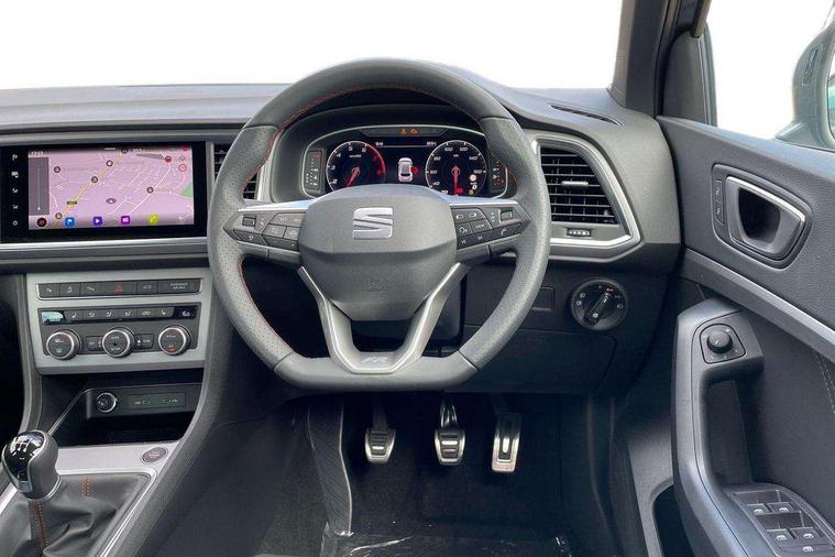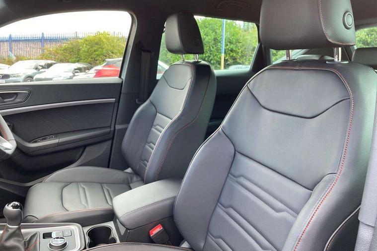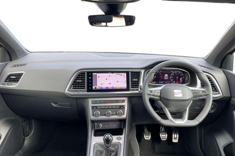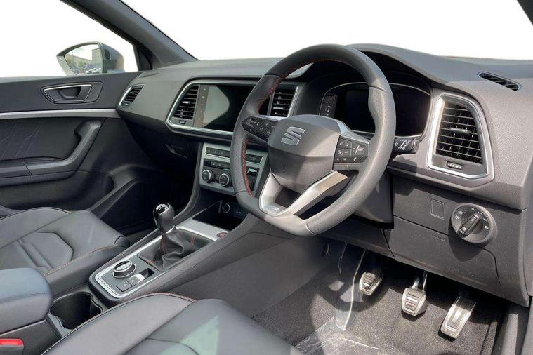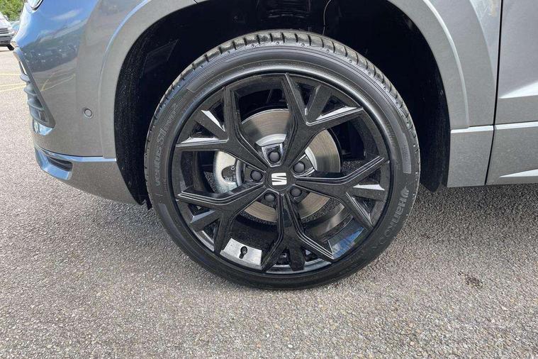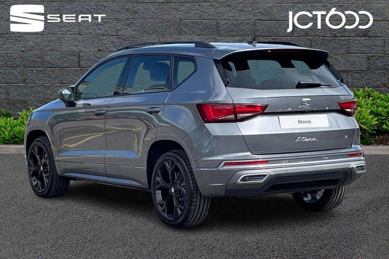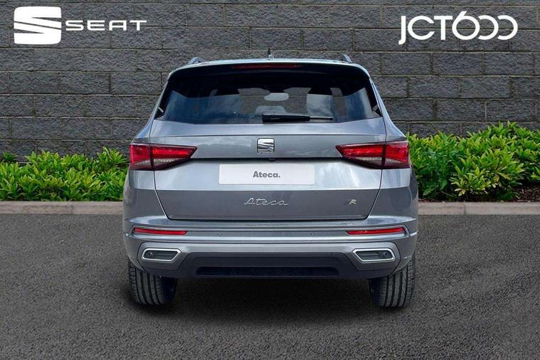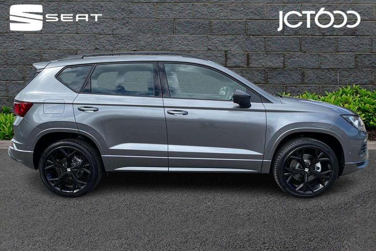 10" Digital cockpit, Bluetooth audio streaming with handsfree system, E-call, Electric tailgate with virtual pedal, Outside temperature gauge, Progressive power assisted steering, SEAT drive profile with driving experience button - Normal, Sport, Eco and Individual mode, gearshift, steering and throttle response, Self parking functionality (includes front and rear parking sensors), Speed limiter, Start/stop system, Top view camera with rear view camera, Trip computer, wired and wireless full link smartphone integration, Wireless phone charger, Steering wheel mounted audio/phone controls, Black roof rails, Black side window trim, Body colour bumpers, Body coloured wheel arch surrounds, Chrome front grille frame, Dark tinted rear windows, Daytime running lights, Door mirrors with welcome light silhouette, Dynamic headlight range control with self adjusting whilst driving, Electric adjustable/heated/folding door mirrors, Front and rear electric windows, Illuminated aluminium front door sill, LED 3rd brake light, LED headlamps with lens and LED front fog lamps with cornering function, LED rear tail lights with dynamic indicators, Rear exhaust tailpipe, Rear fog lights, Rear side wing doors, Rear spoiler, Rear wash/wipe, Variable front intermittent wipers, 12V socket in front, 3 seat bench in 2nd row, 60/40 split folding rear seat, Aluminium pedals, Black greenhouse interior roof, Dual zone climate control, Electric adjustable driver seat with memory function, Front and rear head restraints, Front centre armrest, Front seat back storage pockets, Heated front seats, Height adjustable passenger seats with lumbar adjustment, ISOFIX points in outer rear seats with top tether anchorage points, Leather sports steering wheel and gear knob, Leather upholstery with front comfort seats, Rear armrest and easy back seat release mechanism from boot, Single front passenger seat, Steering wheel mounted gearshift paddles, Convenience pack - Ateca, Interior lighting pack - Ateca, Navigation system pack with DAB - Ateca, Safety and driving pack (L) - Ateca, Safety and driving pack with attention and drowsiness assist - Ateca, 3x3 point rear seatbelts, ABS, Traction control system (TCS), Electronic stability control (ESC) and Electronic differential lock system (XDS), Airbags - Driver and front passenger airbag with deactivation, front side, two curtain and driver's knee airbags, Electric parking brake with auto hold function, Front and rear seatbelt reminder, Hill hold control, Manual rear child locks, Single tone horn, Tyre pressure monitoring system, Alarm, Keyless entry, Locking wheel bolts, Remote central locking, Chrome interior detailing, 19" Exclusive alloy whelels 36/10 in glossy black, Tool kit,