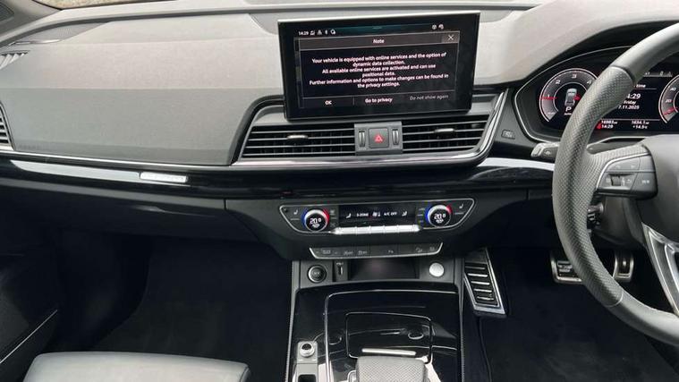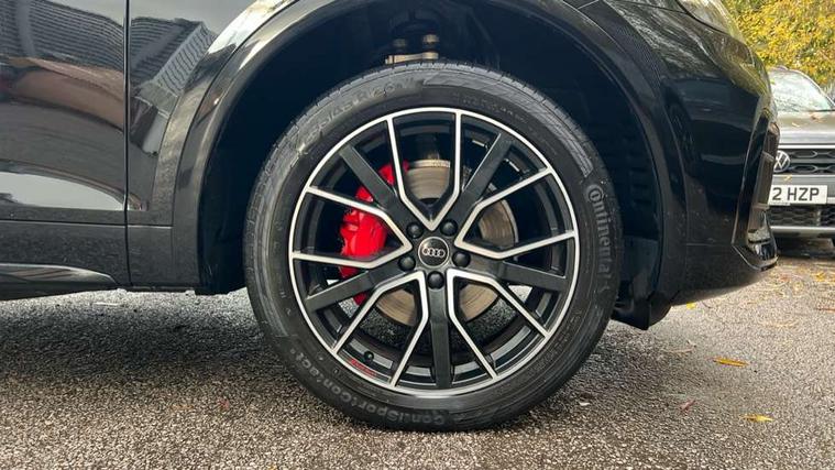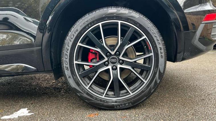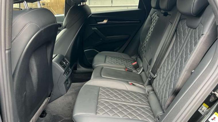 Audi connect safety and service (e-call), Audi connect with Amazon Alexa Integration, Audi drive select, Audi virtual cockpit plus with 12.3" screen and three different layout designs, Audi wireless smartphone interface, Automatic start-stop system with coasting functionality and efficiency programme, Bluetooth interface, Electro - mechanical power assisted steering, MMI navigation plus with 10.1" touch screen, Power tailgate, Reversing camera, Service interval indicator, Voice control system with Audi hotword activation "Hey Audi", Diesel particulate filter, Quattro on demand, S line sports suspension, DAB Digital radio, Acoustic windscreen, Audi beam with Audi rings logo, Audi matrix LED headlights with dynamic front and rear indicators, Audi rings at front and rear in black, Audi rings decal on rear doors, Auto dimming door mirrors, Auto dimming rear view mirror, Automatic headlight adjustment, Automatic headlights and windscreen wipers, Black roof rails, Body colour underbody protection, Chrome plated exhaust trims, Daytime running lights, Door sills in Selenite silver, Electric adjustable/heated/folding door mirrors, Front air inlet surrounds in aluminium, Front and rear electric windows, Headlight washers, High gloss black B pillar trims and triangular rear door trim, High level LED brake light, Rear chrome trim strip below lights, Rear privacy glass and rear side windows, Rear side wing doors, Rear spoiler, Rear wiper, Roof bars, Without model and engine badging at rear, 2 x USB charging port with aux input socket, 3 rear headrests, 4 way electric lumbar support for driver and front passenger, 40:20:40 split folding 3 rear bench seat in 2nd row with rear centre armrest, Black cloth headlining, Comfort front centre armrest, Contrast stitching on seats, steering wheel and gear lever gaiter, Deluxe 3 zone electronic climate control, Electrically adjustable front seats, Fine Nappa leather upholstery with diamond pattern contrast stitching + front sport seats with S embossed logo, Front head restraints, Front/rear floor mats, Gear lever in black leather, Heated front seats, Height/reach adjustable steering column, Illuminated door sill trims with S logo, ISOFIX child seat mounting and top tether, Rear seat bench plus, Removable luggage compartment floor, Single front passenger seat, Stainless steel pedals, Sunvisors with vanity mirrors, Trunk roller cover, Artificial leather pack - Q5, Black styling package - Q5 Edition 1, Extended LED Interior multi coloured Lighting Pack - Q5, 3 point seatbelts on all seats, 6 airbags - Driver, front passenger, curtain and side airbags, Electrically operated child locks on rear doors, Electromechanical parking brake, Electronic stabilisation control including ABS, ASR and EDL, Front and rear brake calipers painted in red, Front passenger airbag deactivation, Hill descent control, Hill hold assist, Multi collision brake assist, Pop-up bonnet for pedestrian protection, Pre sense city, Seat belt force limiter, Seatbelt monitoring, Tyre pressure warning, Warning triangle and first aid kit, Anti theft alarm, Anti-theft wheel bolts, Keyless Go access/ignition system, Remote central locking, Piano black finish inlay,