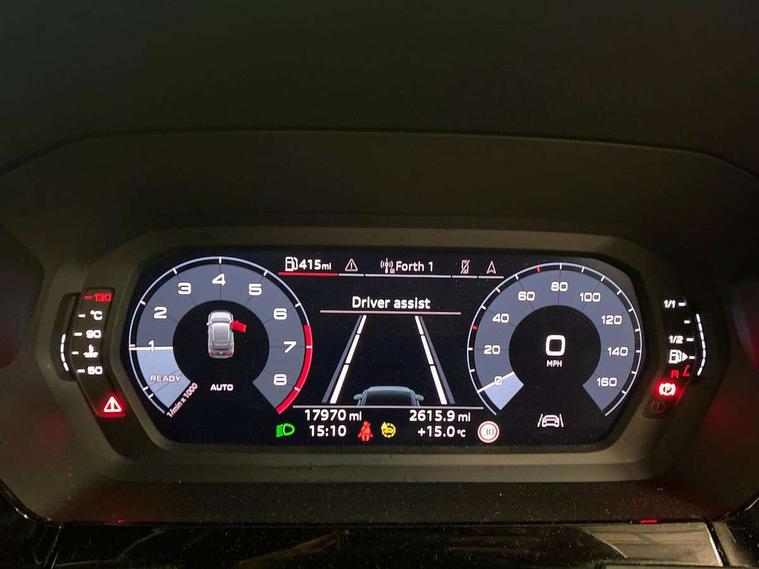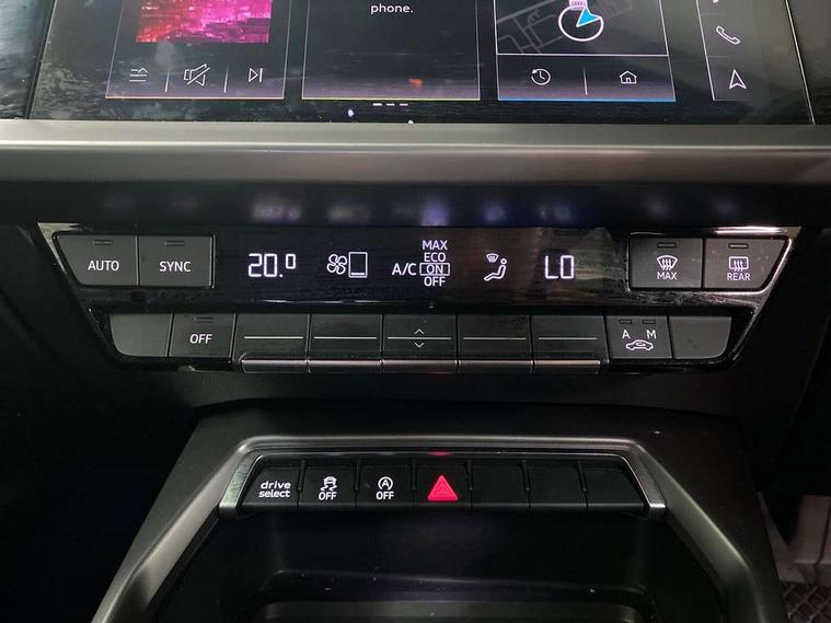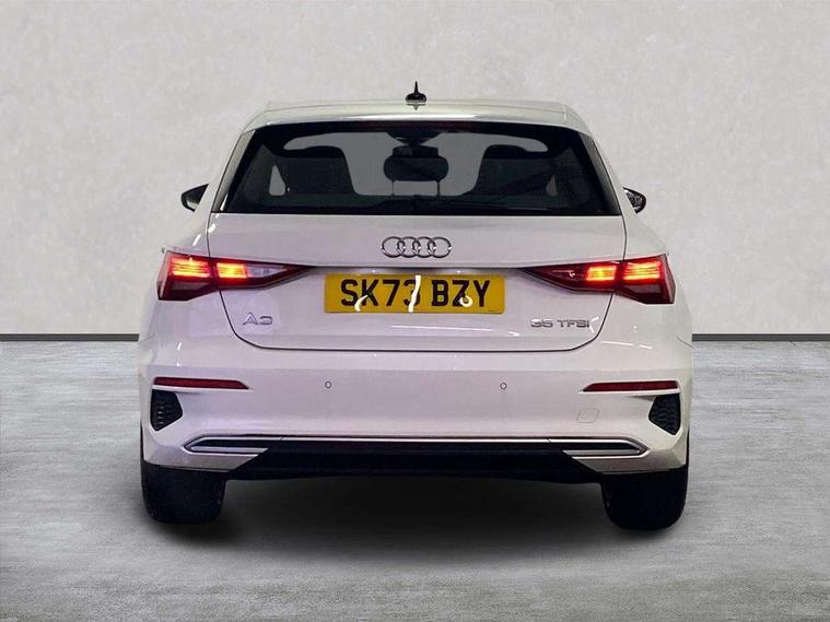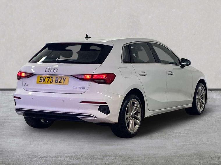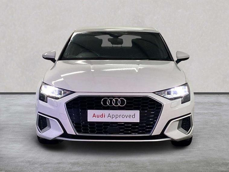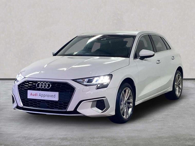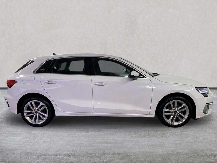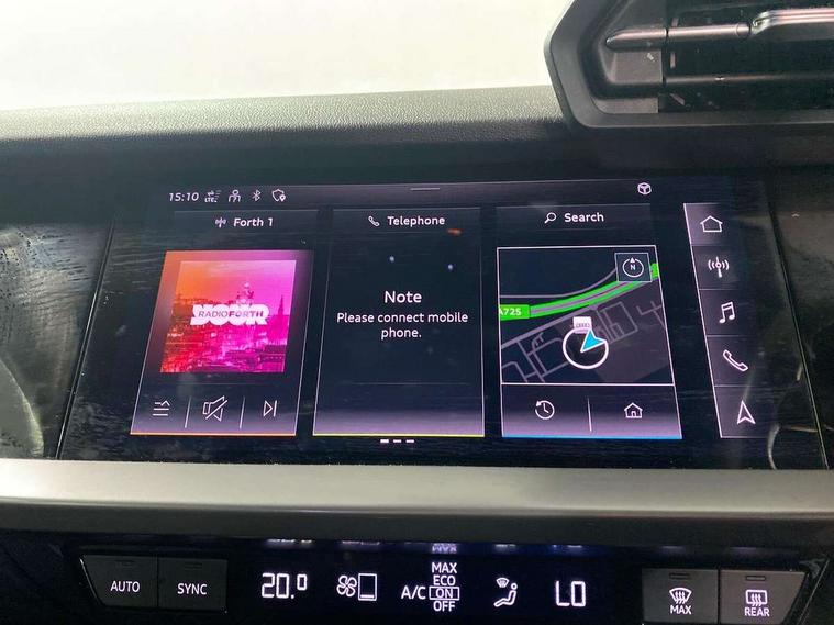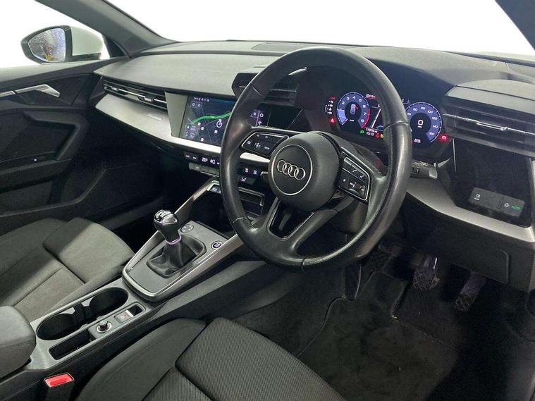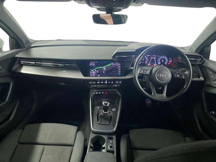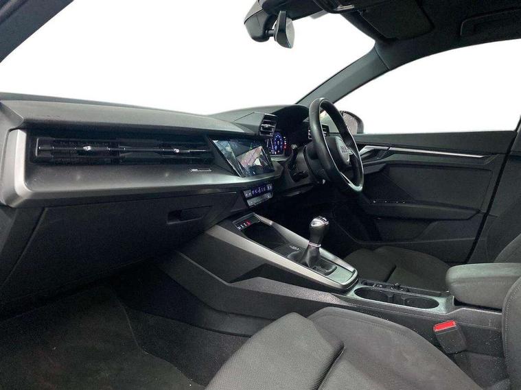 Audi drive select (Auto, Comfort, Dynamic, Efficiency and Individual), Audi smartphone interface, Audi Virtual Cockpit - 10.25" digital and colour instrument cluster, Automatic start/stop system with recuperation, Bluetooth interface, Camera based traffic sign recognition, Collision avoidance assistant, Cruise control, e-Call (emergency call), Electromechanical power speed sensitive steering, Lane departure warning system, MMI Navigation Plus with high resolution 10.1" colour touch screen display, Rear parking sensors, Service indicator, Trip computer, Voice control system with natural language interaction, Standard suspension, 2xUSB-C connection with data and charging functions, 6 passive loudspeakers, DAB Digital radio, 3rd brake light, Acoustic glass windscreen, Aluminium window trim, Auto dimming frameless rear view mirror, Body colour exterior mirrors, Body colour roof spoiler, Electrically adjustable/heated/folding/auto dimming door mirrors with integrated LED indications + kerb view function for passenger side, Front electric windows, LED daytime running lights, LED headlights and halogen rear lights, Light and rain sensors, Rear electric windows, Rear side wing doors, Rear window, rear door windows and rear side windows in clear glass, Rear wiper, 12V socket and storage compartment in front centre console, 3 seat bench in 2nd row, 3 spoke leather multifunction steering wheel, 4 way electrically adjustable lumbar support for driver and front passenger, 60/40 split folding rear seat bench, Dual zone electronic climate control, Front and rear headrests, Front centre armrest, Front door sill trims with aluminium inlay, Front/rear floor mats, Height and reach adjustable steering wheel, Interior lighting - Front and rear roof module including reading lights, glove compartment light and right hand side, Interior lighting - glove compartment light and right hand side, Luggage compartment floor covering, Manual boot compartment lid, Manually adjustable front seats, Routine cloth upholstery with front sports seats, Seat side bolsters, Single front passenger seat, Steel grey cloth headlining, Aluminium interior elements pack - A3 Sportback, LED interior lighting pack - A3 Sportback, Sport styling pack - A3 Sportback, 3x3 point rear seat belts, Driver and front passenger airbag with passenger airbag deactivation, Electronic Stabilisation Control (ESC) including ABS, ASR and EDL, First aid kit with warning triangle and 2 safety vests, Front side airbags with head airbags and interaction airbag, Pre-sense front with pedestrian and cyclist detection, Seatbelt monitoring, Tyre pressure loss indicator, Anti theft alarm, Anti-theft wheel bolts, Electronically operated child locks, Immobiliser, Remote control central locking, Inlays with silk effect paint in platinum grey,