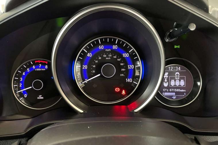 Adaptive motion for electric power steering, Bluetooth hands free telephone connection, Connect Navigation with 7" touchscreen, Digital Radio, Radio/CD/Mp3, Aha app integration, internet browsing, Cruise control with speed limiter, Emergency stop signalling system, Forward collision warning, Front and rear parking sensors, Idle stop, Intelligent speed assist, Lane departure warning system, Multi-information display, Traffic sign recognition, Vehicle stability assist, 'Shark fin' mobile antenna, 2x USB and HDMI, 4 speakers, Steering wheel mounted audio controls, Automatic coming/leaving home lighting function, Automatic headlights with dusk sensor, Automatic rain sensing wipers, Body colour door handles, Body colour door mirrors, Body coloured bumpers, Drivers one touch power window up/down, Electric heated + adjustable door mirrors, Electrically retractable door mirrors, Front and rear power windows, Halogen headlights, High beam assist, LED daytime running lights, LED high level brake lights, Rear wiper with intermittent and reverse linked, Cloth upholstery, Driver's seat height adjustment, Driver/passenger sunvisors and vanity mirrors, Front accessory power socket, Front map lights, Front/rear courtesy lights, Gear shift indicator, Isofix child seat restraint mechanism, Luggage area under floor storage box, Magic seat flexibility system, Manual air conditioning, Passenger seat back pocket, Rear head restraints, Rear parcel shelf, Reclining rear seats, Tilt/telescopic adjustable steering wheel, Trunk light, 3x3 point rear seatbelts, ABS/EBD, Active city braking, Anti-whiplash front headrests, Brake assist function, Deflation detection system, Driver's side SRS airbag, Dual front SRS airbags, Front and rear curtain airbags, Front and rear seat belt with emergency locking retractor, Front side airbags, Hill start assist, Passenger SRS airbag cut-off device, Honda super locks, Immobiliser, Remote central locking with 2 remote folding keys, Security alarm, Tyre repair kit,