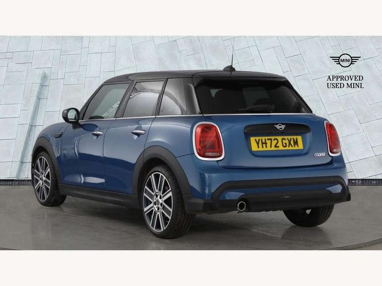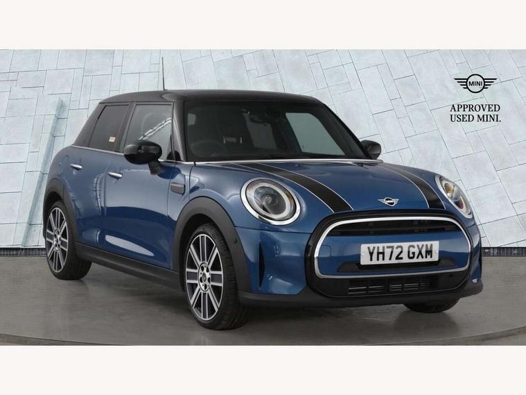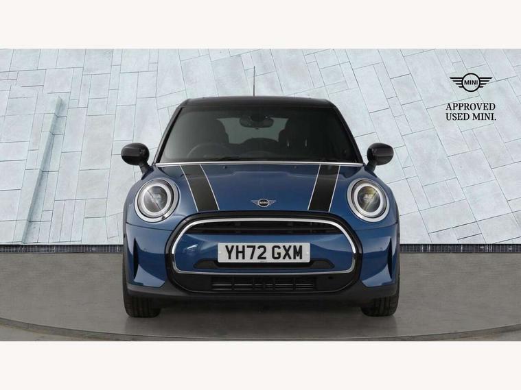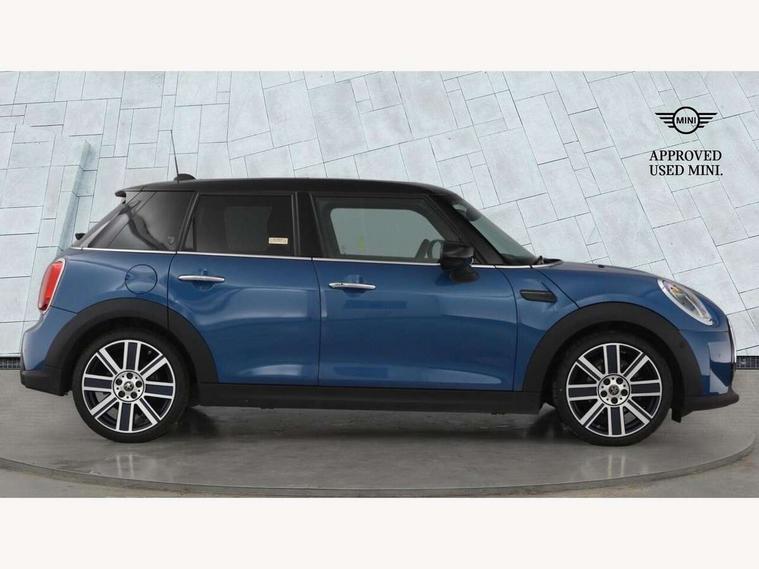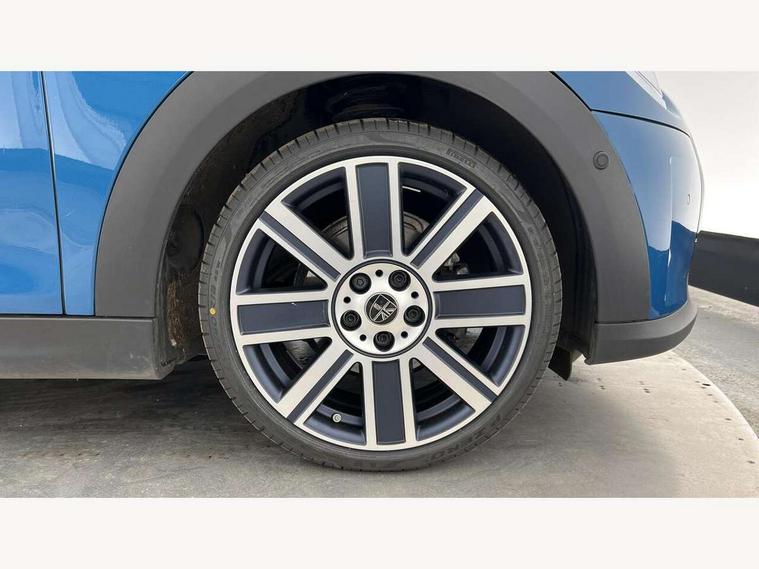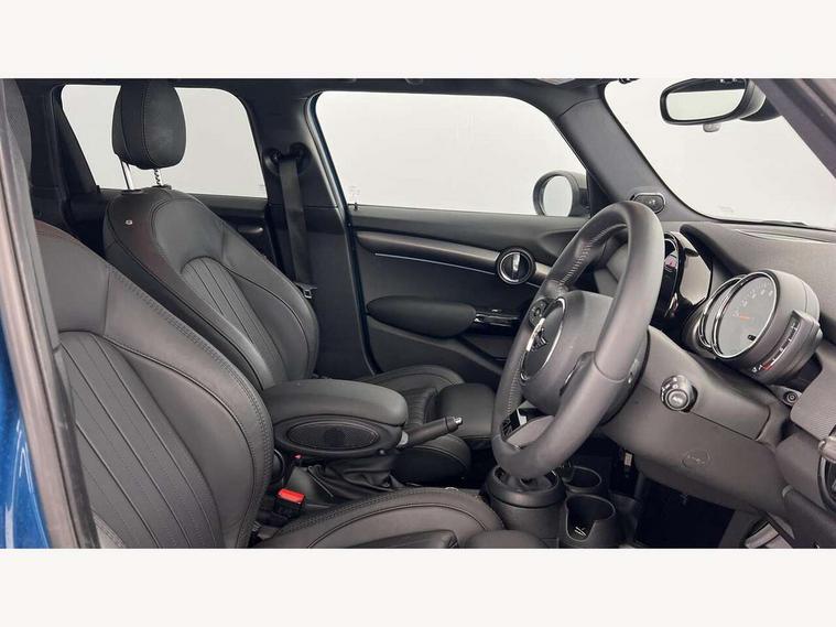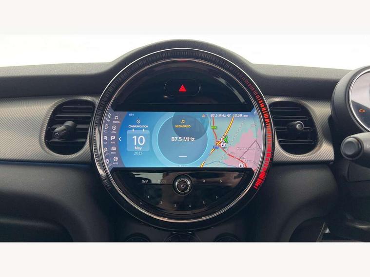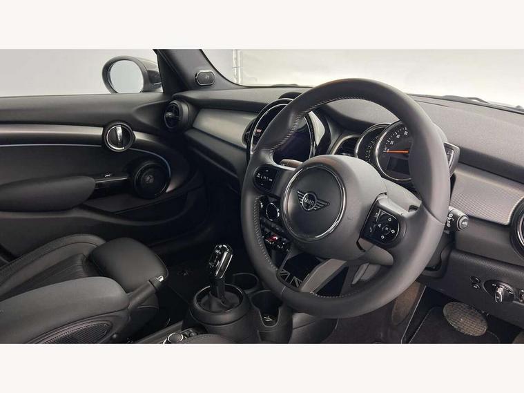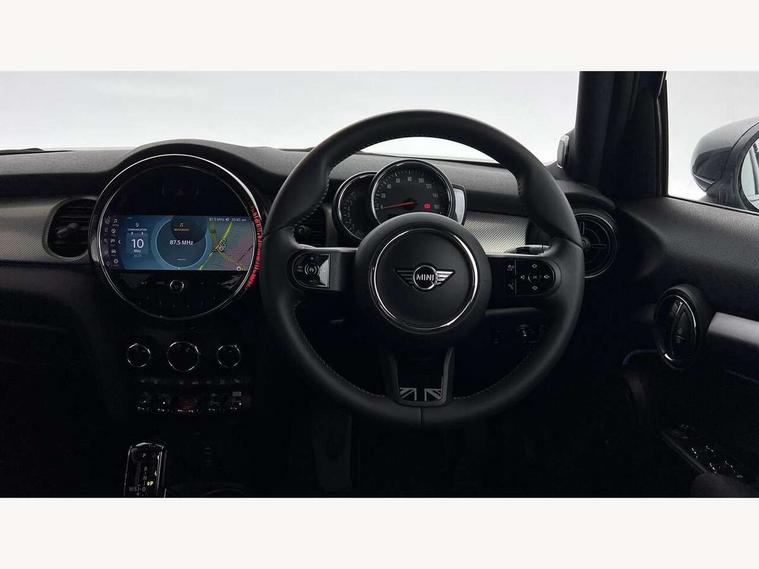 Apple CarPlay, Automatic start/stop function with brake energy recuperation, Compatible mobile phone bluetooth with audio streaming, Cruise control with brake assist, Electro-mechanical speed dependant steering assistance, Flexible car sharing preparation, Instrument cluster, MINI Driving Modes - centre toggle switch to control driving setting (sport, mid and green), Mini E-call, MINI TeleServices, On board computer, Rear park distance control, Service interval indicator, Double Vanos system, Fully variable valve control, Gear change indicator display, High precision injection, Performance Control, Steptronic transmission with double clutch, 8.8" touchscreen with LED ring, FM tuner and DAB digital radio, 3rd brake light, Automatic headlight activation switch, Body colour fuel filler cap, Chrome line exterior - radiator grille bars, tailgate handle, lower front grille grating and rear central fog-light, Dynamic brake lights, Electric front+rear windows, Heated rear window, Heated windscreen washer jets, LED headlight with closed ring and daytime driving lights, Metal door sill strips with MINI imprint, Model logo Cooper on right of tailgate, Rain sensor window wipers, Rear fog lights, Rear LED lights with union jack design, Rear side wing doors, Rear window wiper, Side scuttle panel with integrated indicator, Sun/heat protection glass, White indicator lenses, 12V Accessory socket in centre console, 3 seat bench in 2nd row, 4 lashing eyes in luggage compartment, 60/40 split folding rear seat, Anthracite headliner including grab handles and clothes hooks, Carbon black colour line - Knee roll and door armrest, Chrome interior highlights, Chrome line interior - air vents, gear lever base, door handles and speakers in doors, Cupholders, Front and rear head restraints, Front and rear isofix with front passenger airbag deactivation, Front and rear velour floor mats, Glove compartment, Height and length steering column adjustment, Interior lighting with 12 different colours across the dashboard, underneath door bezel with illuminated laser-engraved design on central display, Leatherette gearshift lever and handbrake gaiters, LED reading lights, vanity mirror lights, front foot well light and spotlight on front seats, Manual air conditioning, Mechanical seat adjustment - forward/back & backrest for front seats and driver seat height adjust, MINI yours badge on exterior pillar, Multifunction steering wheel, Single front passenger seat, Storage compartments in doors, Sunvisors with vanity mirrors, Tool kit, Walknappa leather steering wheel with grey seam and MINI Yours badge on Piano Black lower steering wheel spoke, 3 point seatbelts on all five seats, 6 Airbags - front, side, head and seat belt tensioners, Anti-lock braking system (ABS), Child locks on rear doors, DSC - Dynamic Stability Control, Front and rear disc brakes, Hill start assist, Single tone fanfare horn, Tyre pressure monitoring system, Alarm system with tilt sensor, monitoring doors, bonnet interior and tailgate, Electronic vehicle immobiliser, Start/stop toggle with keyless go,