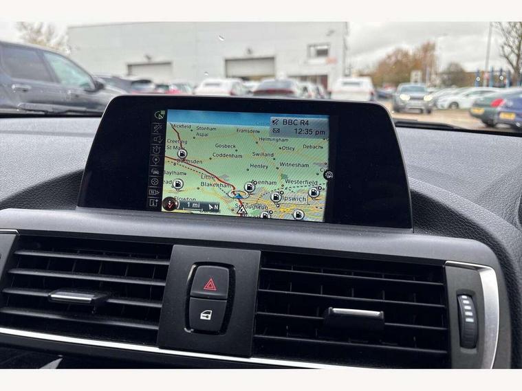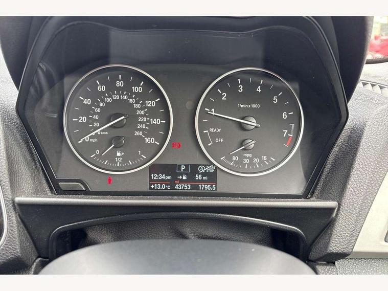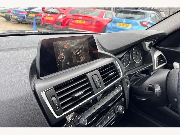'Lights On' Reminder warning buzzer, BMW Teleservices, Brake force display, Engine start/stop button, Oil level indicator, On board computer, On board diagnostics, Outside temperature display, Service interval indicator, Drive Performance Control, Auxiliary point for auxiliary devices, BMW professional radio with CD player, DAB Digital radio, Body colour bumpers, Body colour door handles, Body coloured door mirrors, Chrome exhaust tailpipe, Chrome kidney grille with black vertical slats, Electric front windows + one touch + anti-pinch, Electric rear windows, Electrically adjustable door mirrors, Follow me home headlights, Green tinted heat insulating glass, Heated door mirrors, Heated windscreen washer jets, Rain sensor including auto headlights activation, Rear wash/wipe, Welcome lighting, 12V power socket in centre console, 12V power socket in passenger footwell, 4 grab handles, 60/40 split rear seats, Anthracite Velour floor mats, Door armrests, Folding rear seat head rests, Front folding/sliding centre armrest with storage, Front head restraints, Front/rear courtesy lights with soft on/off dimming, Glovebox, Isofix rear child seat preparation, Leather gear knob and handbrake grip, Load restraint lashing eyes, Multifunction steering wheel with audio controls, Reach + rake adjustable steering column, Storage compartments in doors, ABS/EBD, Automatic Stability Control (ASC), BMW emergency call, Child locks on rear doors, Cornering brake control (CBC), Crash sensor, Driver/Passenger airbags (Impact dependent), Drivers knee airbag, DSC+, Dynamic brake control, Dynamic Traction Control - DTC, Front passenger airbag deactivation, Front side airbags, Hill start assist, ITS head airbags for front/rear, Pyrotechnically pre-tensioned front seatbelts, Seat belt force limiter, Three 3 point rear seatbelts, Tyre pressure monitor, Warning triangle and first aid kit, Automatic drive away locking facility, Electronic immobiliser, Remote central locking, Thatcham Cat.1 alarm,