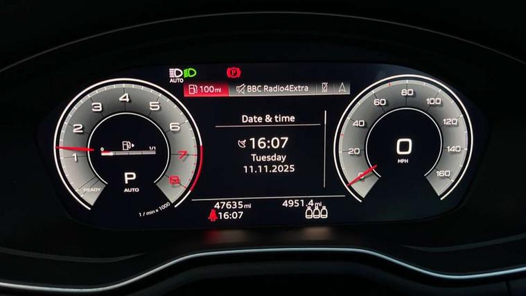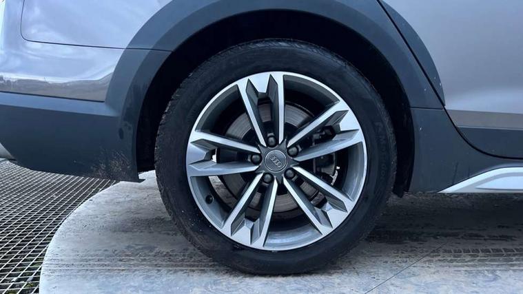 Audi connect safety and service (e-call), Audi drive select, Audi parking system plus with front and rear sensors, Audi smartphone interface, Audi virtual cockpit, Automatic start-stop system with coasting functionality and efficiency programme, Bluetooth interface, Electromechanical power steering, MMI Navigation plus with MMI touch includes 10.1" high resolution colour MMI display, 3D map, Power operated tailgate, Rear view camera, Voice control system, 58 Litre fuel tank, Comfort dynamic suspension, Quattro all wheel drive, 2 USB charging ports, 8 passive loudspeakers, CD Drive, DAB digital radio reception, Allroad radiator grille with vertical chrome slats, Auto dimming rear view mirror, Body coloured door mirrors, Chrome plated exhaust trims, Door sill trims in aluminium inlay with allroad logo, Electrically folding auto dimming/adjustable/heated door mirrors with LED side indicators and kerb view function for passenger side, Extended side sills in selenite silver, Front acoustic glazing, Front and rear bumpers and extended wheel arches in contrasting finish, High beam assistant, LED headlights with LED rear lights + dynamic rear indicators + headlight adjustment and high beam, turning light + LED daytime running lights, Privacy glass, Rain and light sensors, Underbody protection, Windscreen with acoustic glazing, 3 spoke high multi-function leather sport steering wheel with paddle shift and height and reach adjustable, 4 way electric lumbar support for driver and front passenger, 40/20/40 split folding 3 rear seat bench in 3 parts with rear centre armrest, Deluxe 3 zone electronic climate control, Electric load area cover, Front and rear head restraints, Front centre armrest, Heated front seats, ISOFIX child seat mounting and top tether, Manual seat adjustment, Stainless steel loading sill protector, Tool kit, Twin leather upholstery + front sports seats, Exterior off road aluminium package - A4 Allroad, High gloss package - A4, LED Interior light pack - A4/S4, Storage and luggage compartment pack - A4, 3 rear seatbelts, 6 airbags - Driver, front passenger, curtain and side windows, Electronic Stabilisation Control (ESC) including ABS, ASR and EDL, Hill hold assist, Multi collision brake assist, Off road detection system, Pop-up bonnet for pedestrian protection, Pre sense city, Seatbelt monitoring, Warning triangle and first aid kit, Anti theft alarm, Anti theft wheel bolts, Keyless Go, Aluminium ellipse silver inlays, Tyre repair kit,