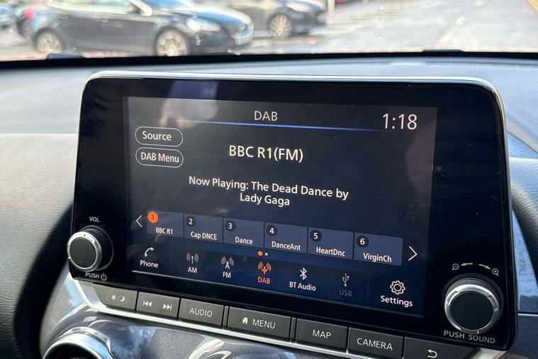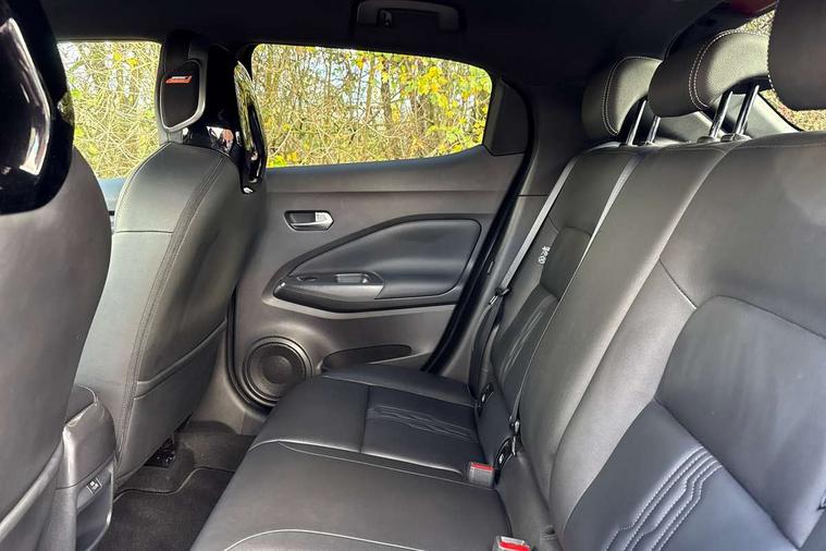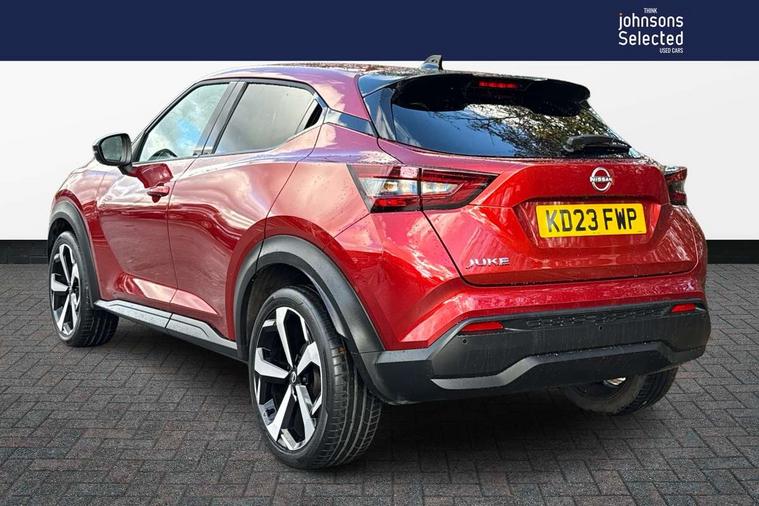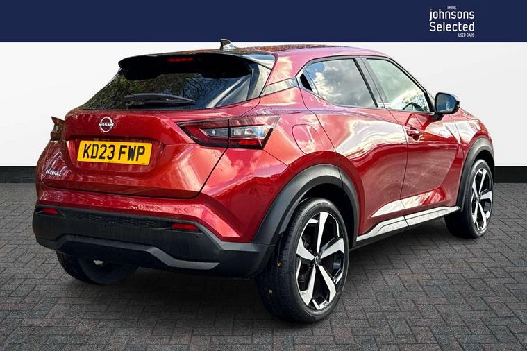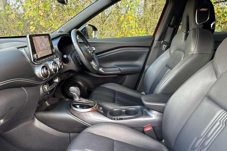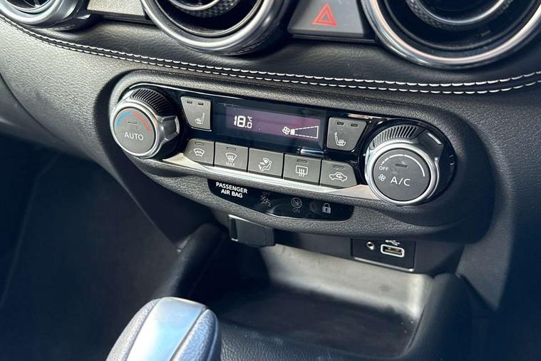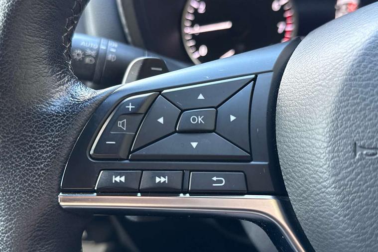 7" full colour TFT screen combimeter, Apple CarPlay and Google Android auto, Drive modes select (Eco, normal and sport), Emergency and breakdown call, Front parking sensor, Idle start/stop system, Intelligent lane intervention, Lane departure warning system, Nissan connect 8" touch screen entertainment system, Nissan connect nav with TomTom traffic, Nissan connect services and Wifi connection, Outside temperature sensor, Power Steering, Rear parking sensor, Traffic sign recognition, Trip computer, Voice recognition, Gasoline particulate filter, 10 Bose speakers 6 speakers and 2 headrest speakers for driver/passenger seats, Bluetooth system, USB, Aux-in and 12V socket, Bose personal sound stage control, DAB Digital radio, Rear console USB port, Auto dimming interior rear view mirror, Auto headlights, Automatic hazard signal with emergency stop signal, Body colour bumpers, Body colour door handles, Electrically adjustable door mirrors with integrated indicators, Follow me home headlights, Front and rear electric window with one touch driver window, Heated and auto folding door mirrors, High beam assist, LED daytime running lights, LED front fog lights, LED headlamps, LED rear fog lamp, LED rear lamps, Rain sensor windscreen wipers, Rear privacy glass, Rear side wing doors, Rear wiper, Thermaclear heated windscreen, Three blink turn signal, 3 height adjustable rear headrests, 3 seat bench in 2nd row, 60/40 split folding rear seat, Automatic climate control, Card holder on driver sunvisor, Door ambient lighting, Driver and passenger sliding and reclining seats, Driver seat back pocket, Driver side rear coat hanger, Driver/passenger sunvisors and vanity mirrors, Front and rear cabin lights, Front armrest, Front door pockets with bottle holders, Front head restraints, Front passenger isofix child seat anchorage point, Front/rear passenger grab handles, Gear console ambient circle lighting, Grey synthetic leather kneepad, Heated front seats, Height adjustable driver's seat, Height adjustable passenger seat, Internal chrome door handles, Leather gearshift knob, Leather steering wheel, Luggage board, Luggage space lighting, Monoform sporty seats, Multifunction steering wheel, Passenger seat back pocket, Rear door bottle holders, Single front passenger seat, Steering wheel mounted gearshift paddles, Synthetic leather upholstery, Telescopic steering wheel adjustment, Two cupholders in front centre console, Two rear isofix child seat anchorage points with top tether, Welcome light and console tray ambient lighting, ProPilot pack - Juke, ABS with EBD and brake assist, Active ride control, Active Trace Control, Driver and passenger airbags, Driver and passenger side airbags, Electric handbrake with auto hold function, Electronic Stability Programme (ESP), Front and rear curtain airbags, Height adjustable seatbelts, Hill start assist, Intelligent emergency braking with pedestrian and cyclist recognition, Rear door child safety locks, Seatbelt reminder for driver/front passenger and rear seats, Single tone horn, Three 3 point rear seatbelts, Traction control, Tyre pressure monitoring system, VDC Dynamic Vehicle Control, Ventilated rear brake discs, Alarm, Immobiliser, Intelligent key and start push button with walk away lock and approach unlock functions, Remote central locking,