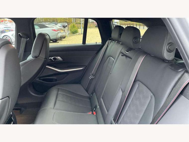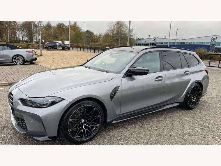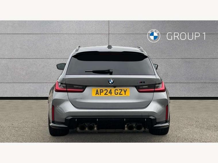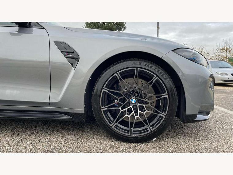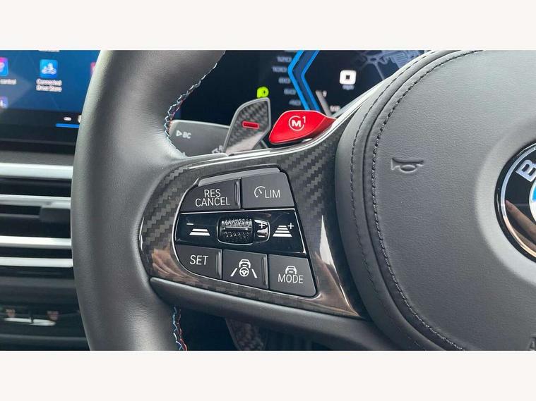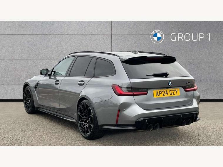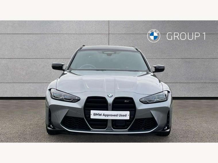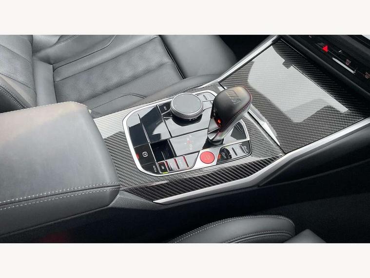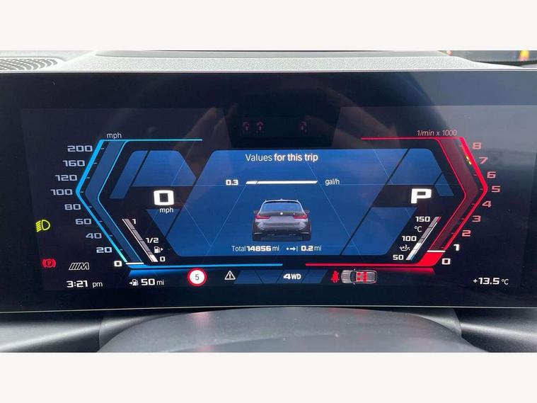 Active guard plus, Automatic start/stop system, Bluetooth functionality with Apple CarPlay/Android Auto, BMW ConnectedDrive online services, BMW iDrive controller on centre console, BMW legal emergency call, BMW Live Cockpit Professional sat nav system with 12.3" instrument display and high resolution control display, BMW Online services, BMW Teleservices, Brake pad wear indicator warning light, Condition based service, Door/boot open warning light, Driving experience switch, Electric boot lid, Head up Display, Illuminated control elements, Instrument cluster with extended contents, Lights on warning, M drive buttons, Oil sensor for level and grade, warning by check control system, Oil temperature gauge, On board computer, On board diagnostics, Optimum shift indicator, Outside temperature display, Pull away assistant, Run flat indicator, Service interval indicator, Shifting point display, Speed limiter, Variable sport steering, Adaptive M Sport suspension, Double joint spring strut front axle, M Drive Professional including track mode, laptimer, traction control & Drift analyser, M Sport differential, M steptronic sport transmission with drivelogic, Safety battery terminal clamp, 8 programmable favourite buttons, Auxiliary point for auxiliary devices, DAB Digital radio, Harman/Kardon loudspeaker system, Personal eSim, 3rd brake light, Acoustic glazing, Auto dimming driver's door mirror, Auto dimming rear view mirror, Automatic headlights + automatic windscreen wipers, Automatic parking function on front passenger's exterior mirror, Black model designation badges, BMW emblem on engine compartment lid and tailgate, BMW high gloss shadow line with extended contents, BMW Individual shadowline lights, Body colour bumpers, Carbon fibre reinforced plastic (CFRP) roof with high gloss black roof aerial bulge and roof mouldings, Day time running light, Door mirror integrated indicators, Door sill finishers with aluminium inserts, Dynamic brake lights, Electric adjustable heated door mirrors, Electric folding door mirrors, Electric front and rear windows with one touch/convenient open/close function, Follow me home headlights, Front and rear apron plastic in body colour, Front and rear bumper system, Headlight beam throw control, Heat protection, sun protection glazing, Heated rear window with automatic switch off, Heated washer jets, High beam assistant, High gloss black frameless kidney grille with M badge, High gloss black lower bumper edges, side sills and diffuser edge binding, High gloss black M roof rails, Illuminated bow type door handles in body colour drivers side with door lock, LED number plate light, LED tail lights with 3D L-shaped LED light design, M designation, M Sport entry door sill strips, Mirror glass aspheric on driver's side, convex on passenger side, Rear fog lights, Rear reflectors, Rear right M3 competition inscription, Rear side wing doors, Rear wiper, Reversing light, Shark fin roof aerial, Strakes in front side panel, black matt/black high-gloss, with model badge, Visible VIN plate, Welcome lighting, 2 front cupholder in centre console with clamping elements and matt black inlay, 2 x 12 V Power sockets (luggage compartment and front centre console), 2 x USB Type C ports for charging and data transmission in front centre console, 3 folding rear headrests, 3 seat bench in 2nd row, Ambient inside door handle light, Ambient lighting for instrument panel, Ambient lighting for storage compartment, Ambient lighting front and rear, Ambient lighting in door panels, Anthracite headlining, Battery in luggage compartment, Carbon fibre centre console incl. cover for cupholders and storage compartment, Carbon fibre decorative steering wheel finishers, Carbon fibre shift paddles, Carbon fibre strip in instrument panel on front passenger side, Centre console armrest with storage compartment, Compartment in front of cupholder, Driver/passenger sunvisors with illuminated vanity mirrors + covers, Dynamic ambient interior lighting, Electric front seats + driver memory, English handbook, Floor mats in velour, Folding rear centre armrest with 2 cupholders, Front door storage bins with bottle holder, Front isofix attachment + airbag deactivation, Front seat backrest width adjustment, Front seats lumbar support, Front/rear door armrests, Gearshift lever with embossed M badge, Heated front seats, Height adjustable front headrests, Isofix on 2nd row outer seats, Lockable/illuminated glovebox, Luggage compartment lighting, Manual 40:20:40 split folding rear seat with two tilt positions for backrest, Multifunction steering wheel, Rake/reach adjustable steering wheel, Single front passenger seat, Storage compartment in rear doors, Three zone automatic air conditioning, Through loading system, Toolkit located in luggage compartment, Wireless charging tray, Additional storage compartment pack - M3, Connected package professional - M3, High gloss shadowline exterior trim pack - M3, 3 point seatbelts on all seats, Anti-lock braking system (ABS), Automatic Stability Control (ASC), Brake energy regeneration, Brake fade compensation, Compound structure brake discs, Cornering brake control (CBC), Crash sensor, Driver/Front Passenger airbags, Dry braking, Dynamic brake control, Dynamic stability control + (DSC+), Dynamic Traction Control - DTC, Electromechanical parking brake, Electronic differential lock control (EDLC), Front and rear head airbags, Front seat side impact airbags, Front seatbelt pretensioners + load limiters, Hill start assist, M Sport seat belts, Rear child proof door locks, Seat occupancy detection for driver and passenger side, Seatbelt warning, Side impact protection, Two tone horn, Tyre pressure sensor, Warning triangle and first aid kit, Centre lock switch, Closing system with central locking, Digital key, Electronic immobiliser, Thatcham cat 1 remote alarm, Vehicle Key with 4 buttons including the integrated key, Galvanic finish to control surrounds, High gloss black interior trim, T