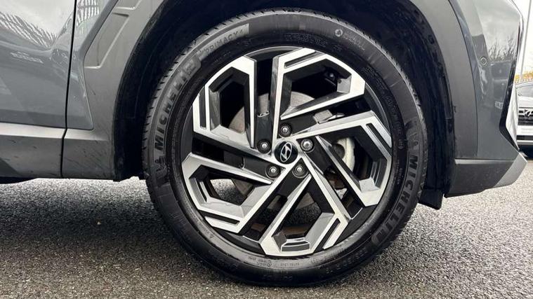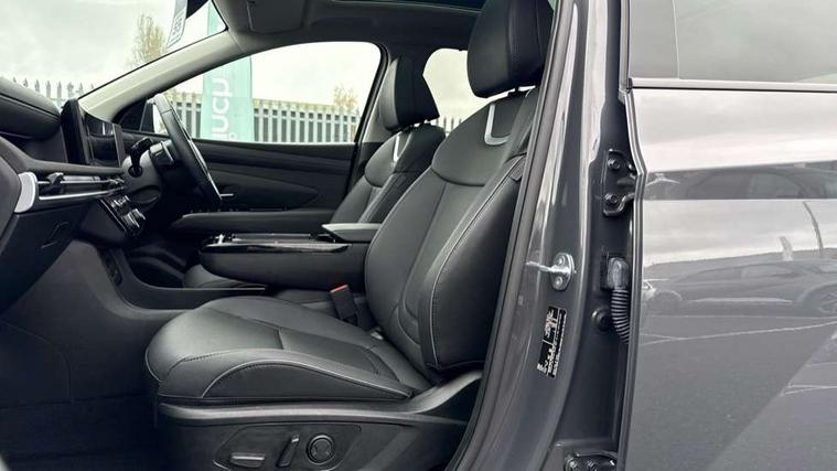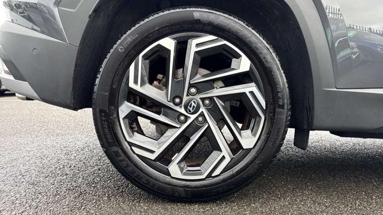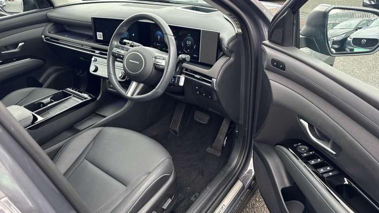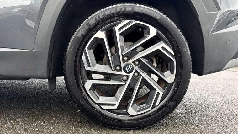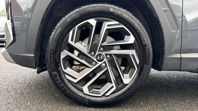 12.3" LCD display with driver's supervision instrument cluster, 12.3" widescreen navigation with bluelink and mapcare, Blind spot view monitor, Bluetooth system, Cruise control - smart adaptive speed control with stop and go function, Digital clock, Drive mode selector, Driver attention warning, E-call, Emergency stop signalling system, Forward Collision Avoidance Assist (FCA) - Car, Pedestrian and Cycle, Forward Collision Avoidance Assist Junction Turning (FCAJX), Front and rear parking sensors, Front, rear and side parking distance warning, Highway Driving Assist (HDA), Hyundai road side assistance, Intelligent speed limit assist, Lane follow assist, Lane keep assist, Over the air updates(OTA), Parking collision avoidance assist (PCA), PAS, Rear camera and guidance parking system, Rev counter, Smart power tailgate, Surround view monitor, Tailgate open warning light, Trip computer, Trip odometer, Voice recognition, Water temperature gauge, Windscreen washer fluid sensor and warning indicator, Wireless Apple CarPlay/Android Auto, Wireless phone charging pad, 2 front and 2 rear USB-C ports, DAB Digital radio, Krell premium audio system with 8 speakers and subwoofer, Steering wheel mounted audio/phone controls, Adjustable intermittent front windscreen wipers with aero wiper blade, Auto dimming rear view mirror, Automatic defog system, Automatic headlights with dusk sensor, Automatic windscreen wipers with rain sensor, Black wheel arches, Body colour bumpers, Body colour door mirrors with integrated indicators, Body colour exterior door handles, Electric tilt/slide panoramic sunroof, Electrically adjustable, heated and power folding door mirrors, Follow me home headlights, Front and rear electric windows with anti-trap mechanism and one touch control, Front fog lights, LED 3rd brake light, LED daytime running lights, LED rear lights, Matrix LED headlights, Positioning Lights - LED, Privacy glass - Rear windows and tailgate, Rear side wing doors, Rear wash/wipe with intermittent wipe setting, Roof rails, Tinted glass with windscreen shade band, Trailer stability assist, 12V power outlets in front console and luggage compartment, 3 seat bench in 2nd row, 40/20/40 split folding rear seat, 64 colours interior ambient lighting, Adjustable head restraints (Up and down), Cupholders in rear armrest, Door courtesy lights, Driver and passenger sunvisors with illuminated LED vanity mirrors, Driver's seat electric adjustments, Driver's seat memory, Front and rear door pockets, Front armrest with storage box, Front centre console and door bottle holders, Front passenger's seat electric adjustments, Heated front seats, Heated rear seats, Heated steering wheel, Height/reach adjustable steering column, Illuminated/air conditioned glove compartment, ISOFIX child seat anchorage points attached on outer rear seats, Leather upholstery, Leather wrapped steering wheel and gear knob, Luggage compartment lighting, Luggage cover, Luggage hooks, Luggage net, Map and reading lights, Rear seat remote folding function, Rear side window sunblind, Reclining rear seats, Retractable load cover, Single front passenger seat, Sunglasses holder, Three zone climate control, Touch sensitive climate controls with temperature dials, TUCSON branded metal door scuff plate, Underfloor boot compartment, Ventilated front seats, Trailer wiring package - Tucson, 3x3 point rear seatbelts, Active bonnet, Airbag - Front, front side, curtain and centre front airbags, Anti-lock brake system (ABS), Brake assist function, Childproof rear door locks, Curtain airbag roll over sensor, Downhill brake control, Electric parking brake, Electronic stability control, Front and rear seatbelt reminder, Front passenger airbag deactivation switch, Front seatbelt pretensioners, Hill start assist control (HAC), Multi-Collision braking, Outer rear seatbelt height adjustment, Seatbelt height adjustment for front seats, Traction control, Tyre pressure monitoring system with individual tyre pressure display - TPMS, Vehicle stability management, Deadlocks, Immobiliser, Locking wheel nuts, Remote control central locking, Smart key with keyless entry and engine start/stop button, Speed sensitive auto door locking, Thatcham category 1 alarm, 19" Alloy wheels, Tyre repair kit,