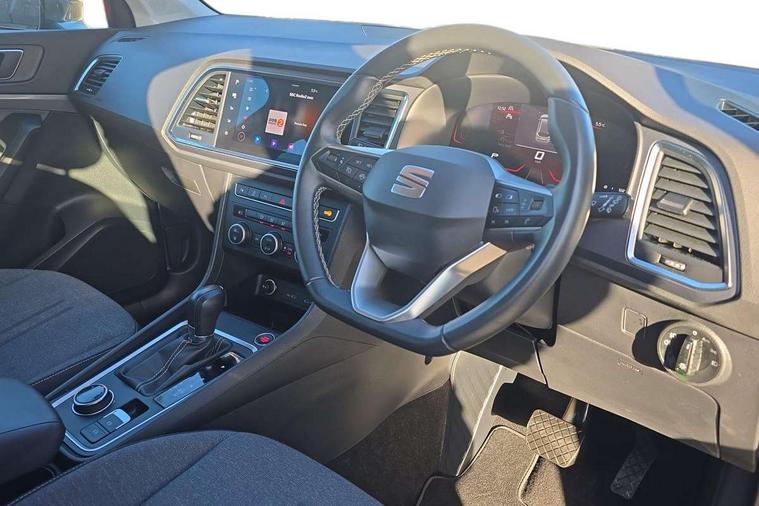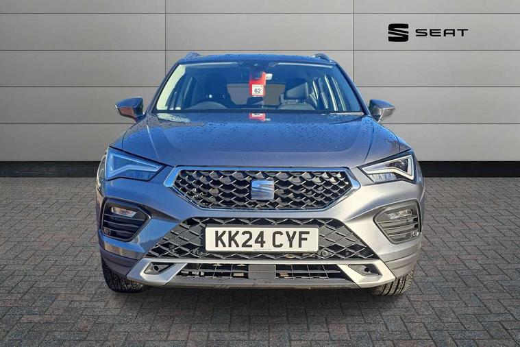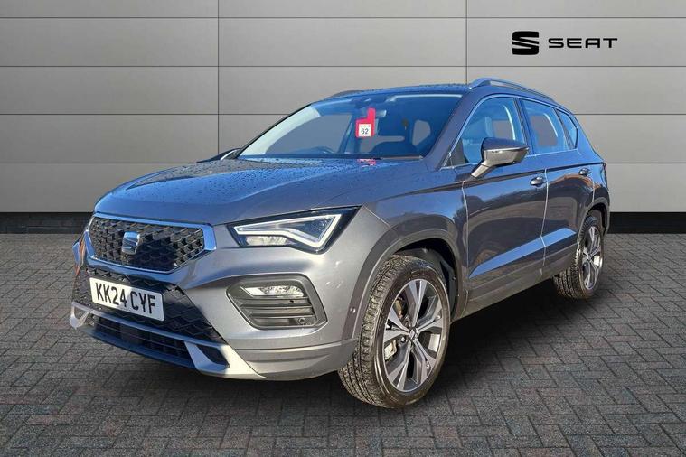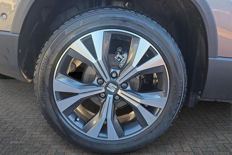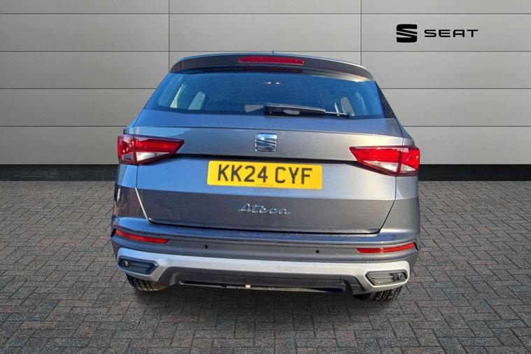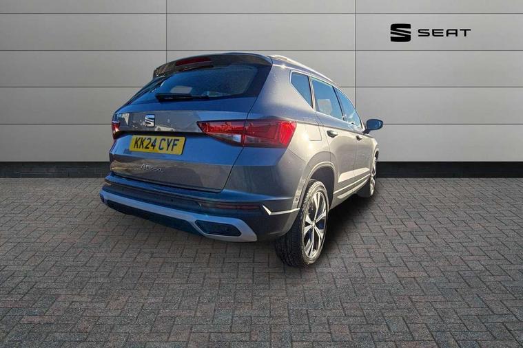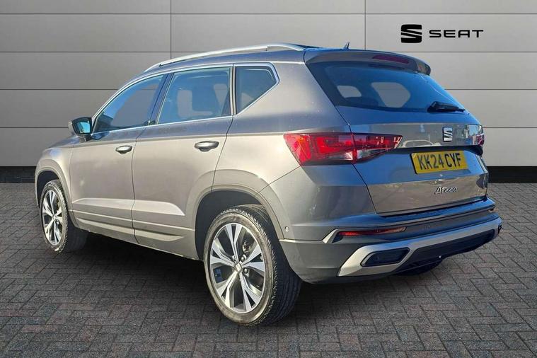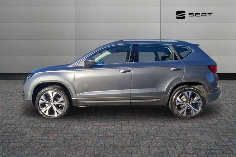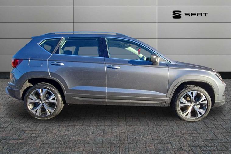 8" Digital cockpit, Colour multi-function on board computer display, Cruise control system with speed limiter, E-call, Outside temperature gauge, PAS, SEAT drive profile with driving experience button - Normal, Sport, Eco and Individual mode, gearshift, steering and throttle response, Self parking functionality (includes front and rear parking sensors), Start/stop system, Tailgate, Trip computer, wired and wireless full link smartphone integration, Wireless phone charger, Steering wheel mounted audio/phone controls, Black wheel arch surrounds, Body colour bumpers, Chrome front grille frame, Chrome roof rails, Chrome side window trim, Daytime running lights, Door mirrors with welcome light silhouette, Dynamic headlight range control with self adjusting whilst driving, Electric adjustable/heated/folding door mirrors, Front and rear electric windows, Full LED headlamps with lens and LED front fog lamps with cornering function, LED 3rd brake light, LED rear tail lights, Rear exhaust tailpipe, Rear fog lights, Rear side wing doors, Rear wash/wipe, Variable front intermittent wipers, 12V socket in front, 3 seat bench in 2nd row, 60/40 split folding rear seat, Cloth upholstery with front comfort seats, Drawer under right front seat, Dual zone climate control, Front and rear head restraints, Front centre armrest, Front seat back storage pockets, Height adjustable driver and passenger seat with lumbar adjustment, ISOFIX points in outer rear seats with top tether anchorage points, Leather sports steering wheel and gear knob, Rear armrest and easy back seat release mechanism from boot, Single front passenger seat, Steering wheel mounted gearshift paddles, Convenience pack - Ateca, Interior lighting pack - Ateca, Navigation system pack with DAB - Ateca, Safety and driving pack with attention and drowsiness assist - Ateca, 3x3 point rear seatbelts, ABS, Traction control system (TCS), Electronic stability control (ESC) and Electronic differential lock system (XDS), Airbags - Driver and front passenger airbag with deactivation, front side, two curtain and driver's knee airbags, Electric parking brake with auto hold function, Front and rear seatbelt reminder, Front assist with autonomous emergency braking, Hill hold control, Manual rear child locks, Single tone horn, Tiredness recognition system, Tyre pressure monitoring system, Alarm, Keyless entry, Locking wheel bolts, Remote central locking, Chrome interior detailing, 18" Performance machined alloy wheels 36/2 in nuclear grey,