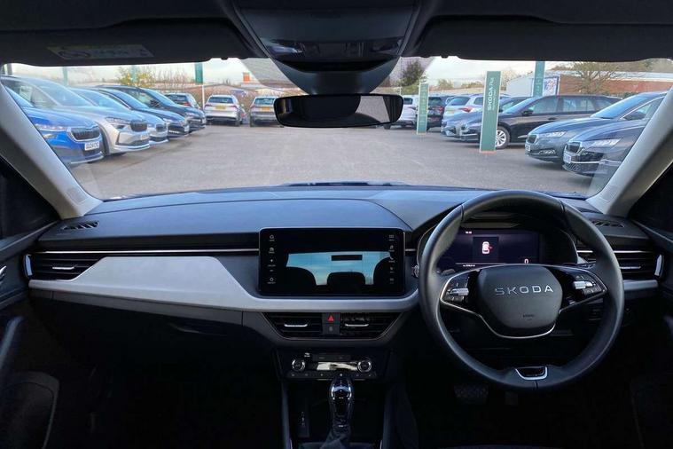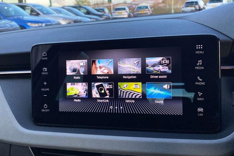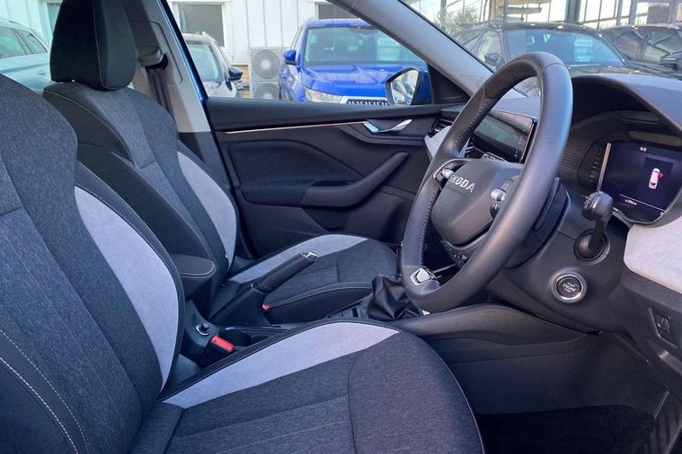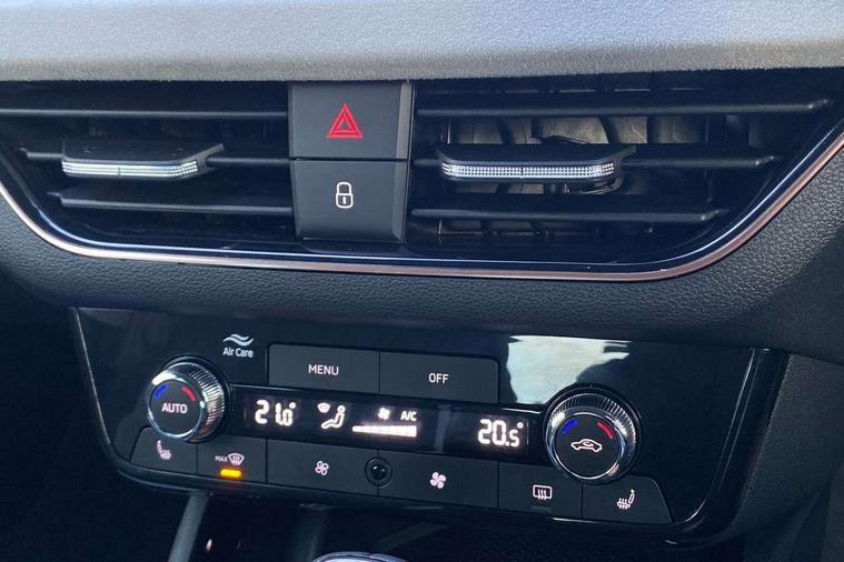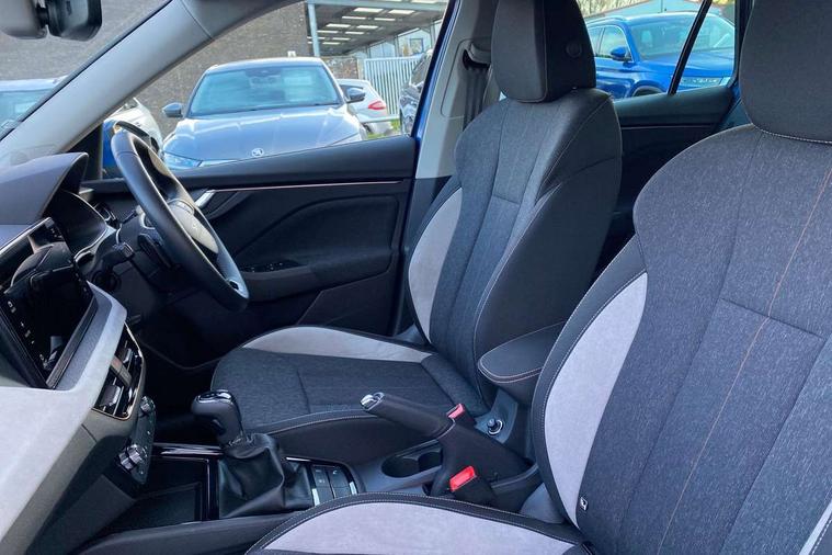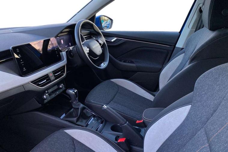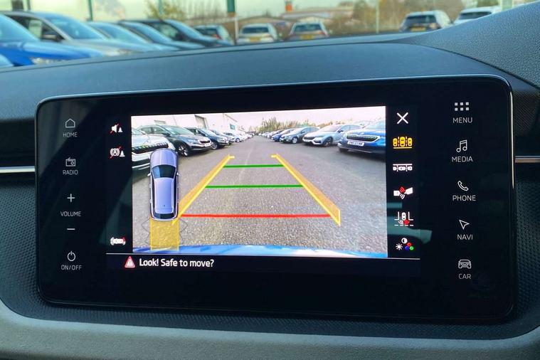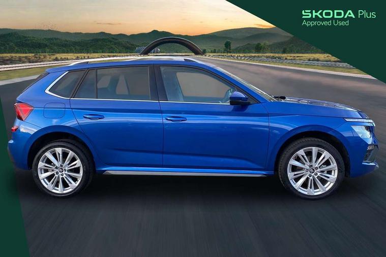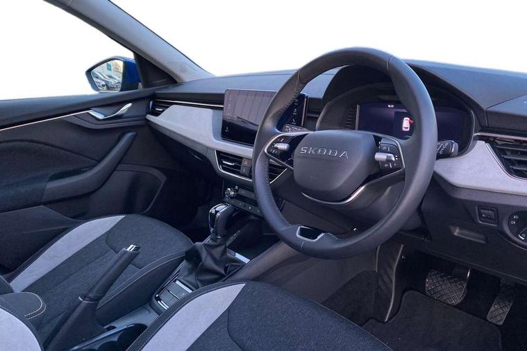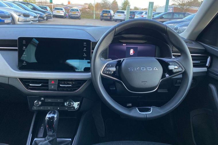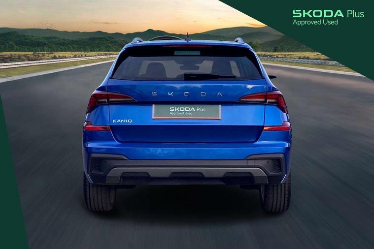 Advanced driver attention and drowsiness monitor, Bluetooth system, E-call, Front assist system, PAS, Rear parking sensors, Rear view camera, Service indicator, Speed limiter, Traffic sign recognition, Virtual cockpit with 10.25" display, Voice control system, Wireless smartlink, 4 USB C ports, 8 Speakers, 9.2" Skoda navigation display, DAB Digital radio, Auto dimming rear view mirror, Automatic headlight control with coming home and leaving home feature, Body colour bumpers, Body colour door mirrors and handles, Chrome grille surround, Chrome roof rails with chrome window surround, Front and rear electric windows, Heated rear window, LED daytime running lights, LED high beam, LED low beam, LED third brake light, Light sensors, Privacy glass, Rear side wing doors, Rear wiper, Ticket holder inside windscreen, 12V socket in luggage compartment, 3 seat bench in 2nd row, Accent black door inserts, Ambient lighting in white/red, Cargo elements, Chrome inner door handles, Copper hotstamping, Driver and passenger sun visors with vanity mirror, Dual zone climate control, Front and rear roof lights, Front centre armrest, Front head restraints, Glove compartment with illumination, Height adjustable driver seat, Height adjustable front passenger seat, Ice scraper, Inner circulation control with pollen filter, ISOFIX on front passenger seat, Isofix preparation for back seats, Leather gearknob and handbrake lever, Lodge cloth upholstery, Manual lumbar support for front seats, Net package and top tether hooks in boot space, Net under rear shelf, Overhead glasses storage compartment, Pocket on the back of both front seats include mobile phone pockets, Rake/reach adjustable steering wheel, Reading lights, Rear centre armrests, Single front passenger seat, Suedia grey decor inserts, Textile floor mats, Third rear headrest, Top tether for front passenger seat, Umbrella in driver's door, Convenience pack - Kamiq, 3x3 point rear seatbelts, Airbags - driver and front passenger, Disc brakes, ESP, Extended and predictive pedestrian/cyclist protection, Front passenger airbag deactivation switch, Front side airbags with curtain airbags, Hill hold control, Manual leather parking brake, Manual rear child locks, One tone horn, Seatbelt reminder for driver an co-driver, Traction control, Tyre pressure monitor, Anti-theft alarm system with interior monitoring, backup horn, towing protection and remote central locking with SAFE system, Anti-theft wheel bolts, Electronic engine immobilizer,
