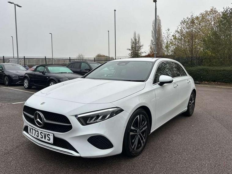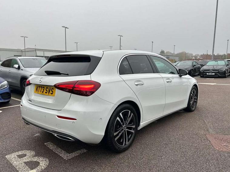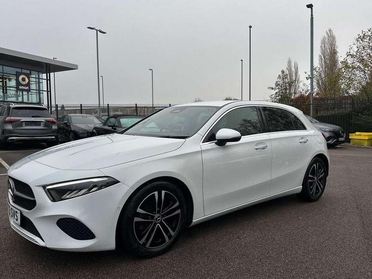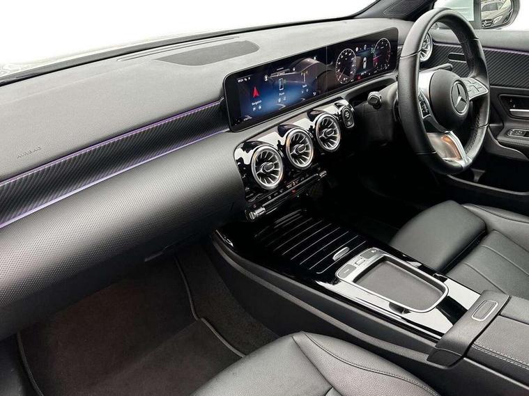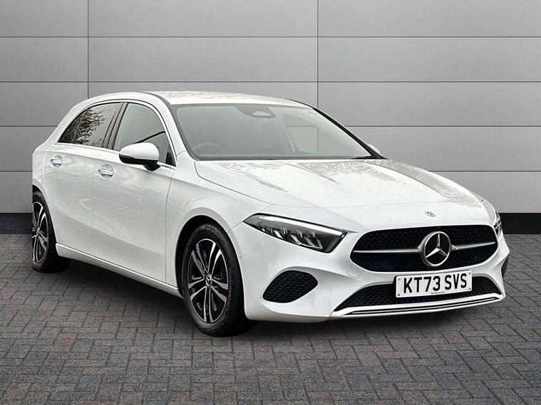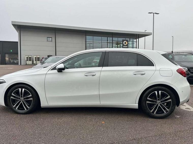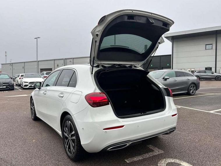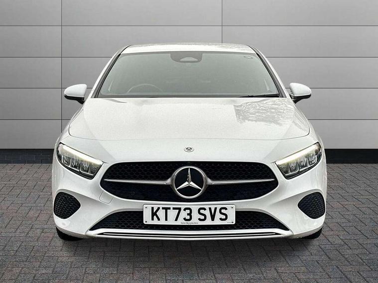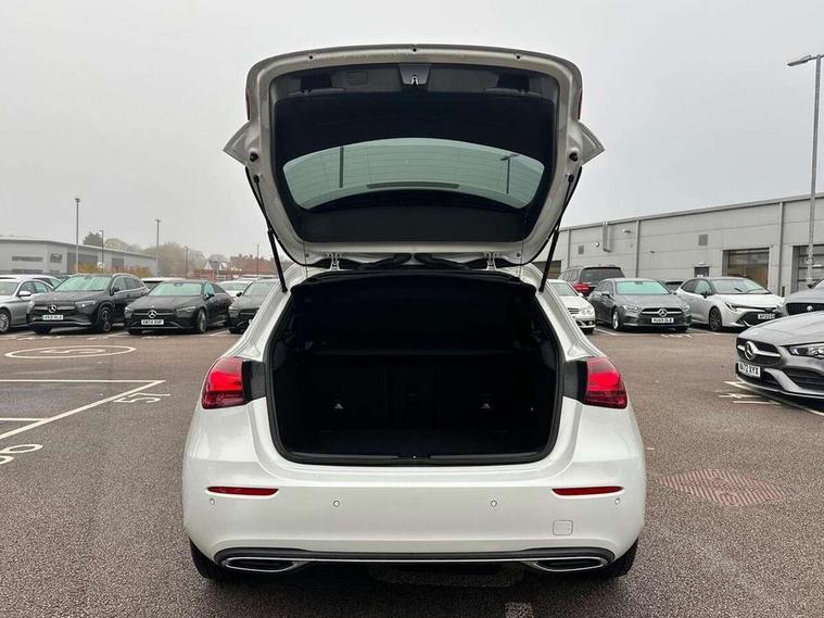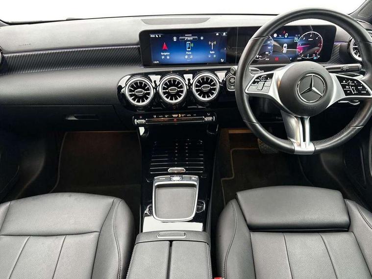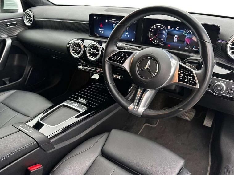 10.25 inch touchscreen central media display, 10.25" Digital instrument cluster display screen, Attention assist, Brake pad wear indicator warning light, Car wash mode, Cruise control + speed limiter, Direct steering, Direction indicators with lane change function, Dual bluetooth interfaces, DYNAMIC SELECT with a choice of driving modes (ECO, Comfort, Sport and Individual), Easy pack tailgate hands-free access, ECO start/stop function, Engine start/stop button, Fluid level warning indicator for fuel, oil, coolant and washer fluid, Hard-disk navigation, Hey Mercedes Voice activation, Lamp failure indicator, Lane keeping system, Mercedes me connect including emergency call system, accident recovery, breakdown management and maintenance, Mercedes me remote services, Outside temperature gauge, Owners manual in English, Pre-installation of private car share, Preinstallation for Mercedes Benz link, Remote boot closing, Service indicator (ASSYST), Smartphone integration with Apple CarPlay and Android auto, Speed limit assist, Speed sensitive power steering, Tailgate, Trip computer in multifunction display with current consumption indicator, Wireless charging, Lowered comfort suspension, DAB Digital radio, MBUX multimedia system, Mercedes Benz sound system (100 W) with 6 speakers, 4 Electric Front and Rear windows, Adaptive brake lights, Body colour bumpers, Body colour door handles with chrome inserts, Body colour side skirt, Body coloured door mirrors, Chrome beltline strips, Diamond radiator grille with pins in fine star pattern, Electric adjustable and heated door mirrors with integrated LED side indicators, Exhaust system with 2 visible tailpipe trim elements and rear apron, Headlamp assist automatic headlamp activation, Heat insulating dark tinted rear and rear side windows, Heated glass rear windscreen + timer control, LED High level third brake light, LED High Performance headlamps including integral LED daytime running lamps and adaptive highbeam assist, LED tail lamp, Privacy glass, Radio aerial, Rain sensing windscreen wipers with two sensitivity settings, Rear fog lights, Rear side wing doors, Rear windscreen wiper, Window line trim strip in chrome, 3 seat bench in 2nd row, 3 spoke ARTICO man-made leather multifunction sports steering wheel, 4 way lumbar support, 40:20:40 split folding rear seats, Air conditioning - One zone thermatic automatic climate control with automatically controlled air distribution, Artico man-made leather upholstery, Automatic child seat recognition sensor, Black air vents with surround in silver chrome, Black roof lining, Front centre armrest with stowage, Front comfort seats with adjustable head restraints, Front door sills with Mercedes Benz lettering, Front seat backs luggage nets, Gearshift paddles on steering wheel, Heated front seats, Height/reach adjustable steering column, Interior lighting - 64 colour Ambient lighting, Interior mirror with reading lamps in black and frameless, ISOFIX and top tether child seat fixing points in two outer rear seats, Rear armrest with 2 cupholders, Rear head restraints, Seat occupancy sensor for front passenger seat, Single front passenger seat, Stowage compartment in centre console with retractable cover, Sunvisors with illuminated vanity mirrors, Twin front cupholders, Velour floor mats, Light and sight pack - A Class, Mirror package - A Class, Parking pack - A Class, Seat comfort pack - A Class, USB pack plus - A Class, 3 rear 3 point seatbelts, ABS with Brake Assist, Active bonnet, Active brake assist includes forward collision warning system with autonomous braking, Adaptive brake assist with hold function and hill start assist, Black seatbelts, Bonnet with power domes, Childproof locks manually operated for rear doors and electrically operated for rear power windows, Crash responsive emergency lighting, Driver and passenger head and side airbags, Drivers knee airbag, Dual stage driver/passenger airbags, Electronic parking brake, ESP curve dynamic assist, ESP with ASR, Front and rear seatbelt reminder, Tyre pressure monitoring system, Warning triangle and first aid kit, Window airbags, Alarm system/interior protection/immobiliser, Guard 360 degree vehicle protection, Keyless entry lock/unlock, Keyless Go, Remote central locking and crash sensor with emergency opening function, Dark carbon fibre interior trim, 17" 5 spoke light alloy wheels, aerodynamically optimised, painted in black with high sheen finish, Summer tyres, Tirefit sealant kit,