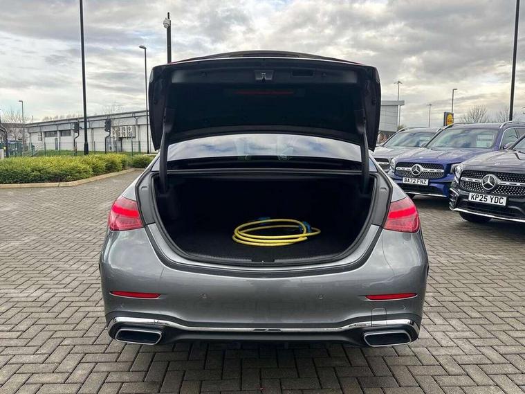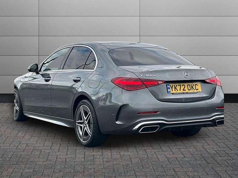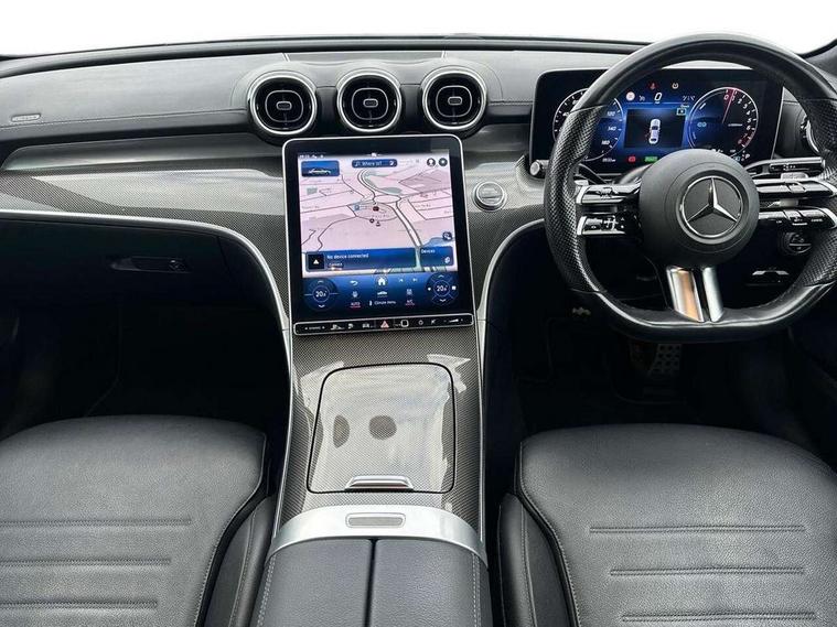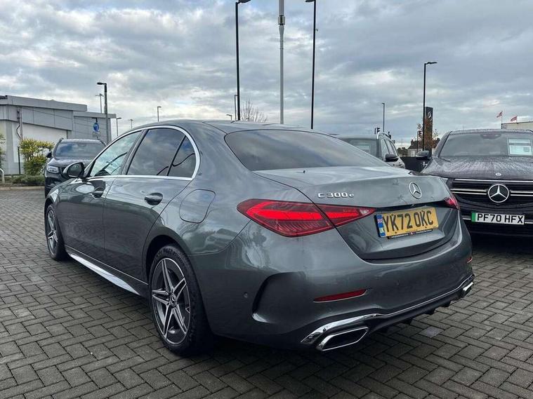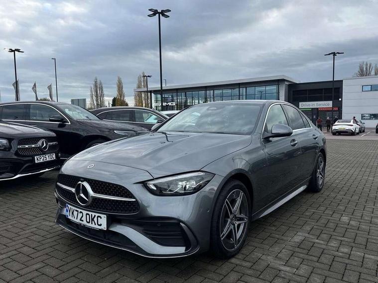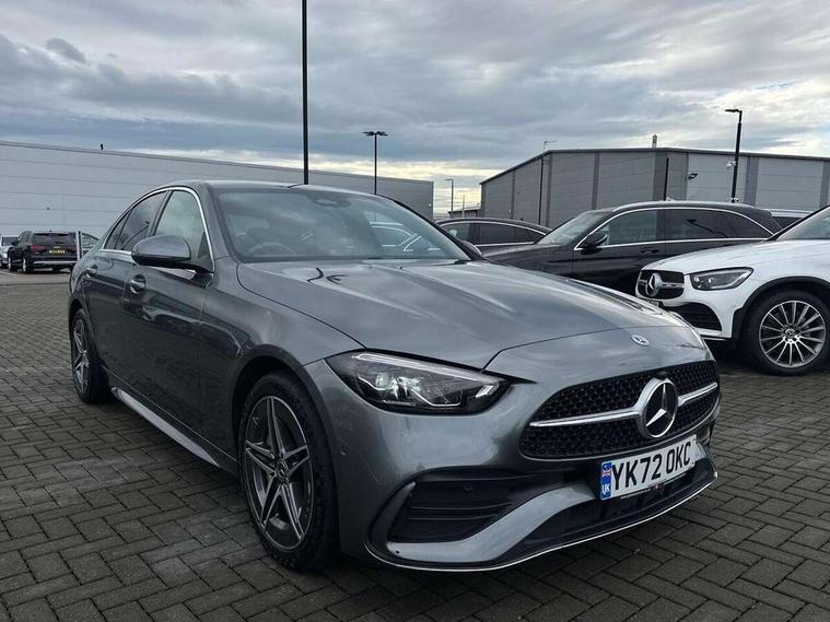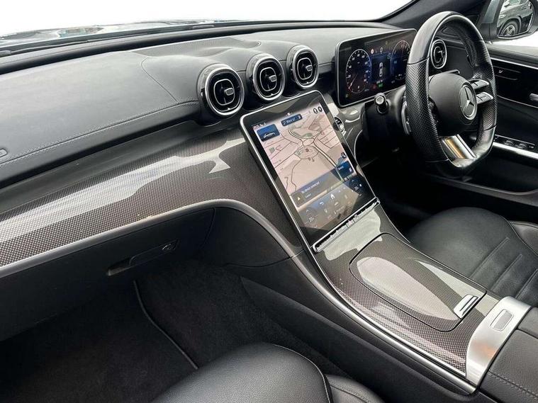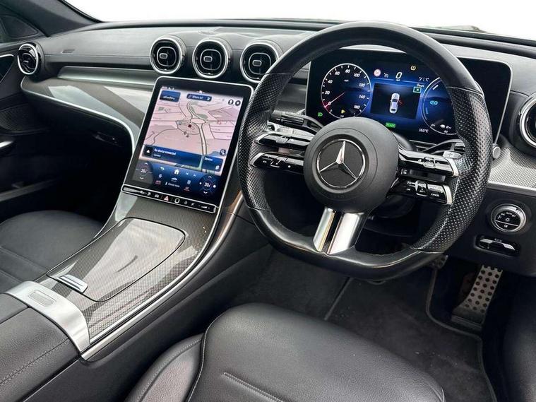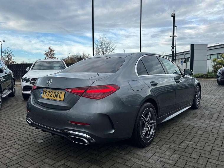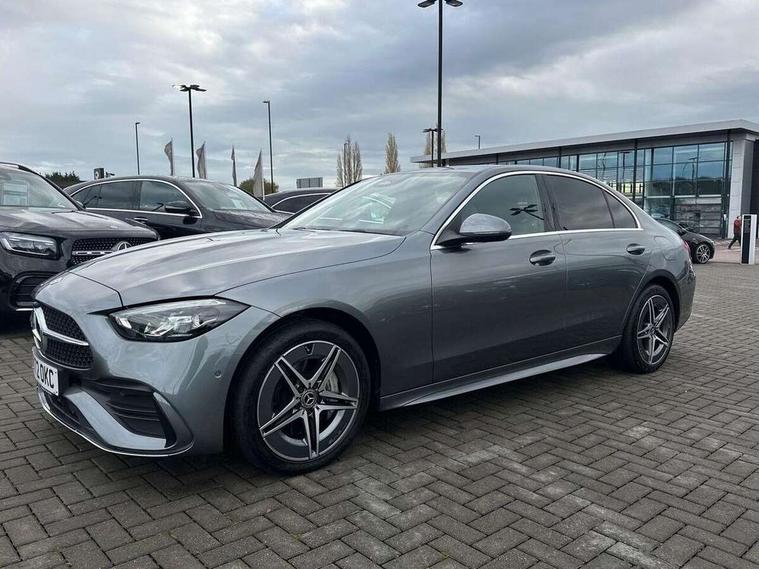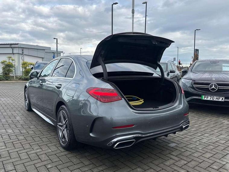 11.9" high resolution multimedia colour display, 12.3" digital instrument cluster display, Active blind spot assist, Active brake assist plus, Active lane keeping assist, AMG DYNAMIC SELECT with a choice of driving modes (Slippery, Comfort, Sport, Sport+, Individual), Attention assist, Cruise control with speedtronic variable speed limiter, E-call, Extended MBUX functions, Finger print sensor, Fluorescent jacket for driver, MBUX navigation premium, MBUX voice control activated by keywords "Hey Mercedes", Mercedes connect me, Mercedes me remote services, Outside temperature gauge, Pre-installation for digital key transfer, Remote boot release, Service indicator (ASSYST), Smartphone integration, Sports direct steer speed sensitive steering, Status display for rear seat belts in instrument cluster, 11 kW AC onboard charger, 5m charging cable for wall box/public charging stations(mode 3), 66l fuel tank with increased capacity, 9G TRONIC 9 speed automatic transmission, Agility control sports suspension and lowered by 15 mm, Petrol Particulate Filter, Sporty engine sound system, DAB Digital radio, MBUX multimedia system, Adaptive brake lights, Adaptive high beam assist, AMG body styling front apron, rear apron and side skirts, AMG front bumper with sporty air intakes and chrome elements, AMG rear bumper with high gloss chrome elements, AMG side skirts in vehicle colour, B-pillar trim in glossy black, Body coloured bumpers, Body coloured door mirrors, Chrome beltline trim, Daytime running lights, Electric windows with one touch opening/closing and obstruction sensors, Electrically adjustable and heated door mirrors, Green tinted glass, LED high performance headlamps, LED Indicators, LED tail lights, LED third brake light, Powerdomes on bonnet, Privacy glass, Radiator diamond grille with integrated Mercedes Benz star and louvre silver with chrome pins, Radio aerial integrated into rear window, Rain sensor with automatic windscreen wiper activation, Rear boot, Rear side wing doors, Side windows surround in polished aluminium, Two visible exhaust pipes integrated into rear bumper, 3 spoke flattened bottom AMG multifunction steering wheel in black nappa leather with chrome inserts and perforated leather in grip area, 40:20:40 split folding rear bench seat, AMG Leather upholstery, AMG sports seats, Audio and onboard settings control on multifunction steering wheel, Auto Mercedes-Benz child seat recognition sensor, Black air vents with silver chrome elements, Black floor mats with AMG lettering, Black roof liner, Door trim elements high gloss black with silver chrome surroundings and switches, Double cupholder in centre console, Folding rear seat backrest, Front and rear head restraints, Front centre armrest with storage compartment, Front door sills with Mercedes Benz lettering, Gearshift paddles on steering wheel, Heated front seats, Illuminated glove compartment stowage, Manually height and reach adjustable steering column, Overhead control unit in high gloss black, Rear top tether child seat ISOFIX attachment, Single front passenger seat, Sports pedals with stainless steel surfaces and rubber studs, Sunvisors with illuminated vanity mirrors, THERMATIC 2 zone automatic climate control, Interior lighting package - C Class, Mirror pack - C Class, Parking package with reversing camera - C Class, Seat comfort pack - C Class, Stowage space pack - C Class, USB package - C Class, 3 rear 3 point seatbelts, Active bonnet pedestrian safety measure which detects an impact and raises bonnet, Adaptive brake system with HOLD function and brake drying in the wet, Anti-lock braking system (ABS), Black seat belts, Brake calipers with Mercedes-Benz lettering + perforated front brake discs, Child proof door locks, Drivers knee airbag, Drivers pelvis airbag, Dual stage driver/passenger airbags, Electric parking brake, Electronic Stability Programme (ESP), Front centre airbag between driver and front passenger seats, Front side airbags, Larger brake discs on front axle, Rear passenger airbag, Rear seatbelt warning indicator, Sports braking system with perforated front disc brakes, Tyre pressure monitoring system, Warning triangle and first aid kit, Window airbags, Central locking with interior switch, automatic locking and crash sensor with emergency opening function, Chrome surround in electric key, URBAN GUARD vehicle protection (Thatcham Category 1) consisting of break-in, anti-theft alarm system (ATA), interior monitoring and tow-away protection, Artico man-made leather dashboard with contrast stitching, Centre console trim in metal weave, 18" AMG 5 spoke design aerodynamically optimised alloy wheels painted in tantalite grey with high sheen finish, Summer tyres, TIREFIT with tyre inflation compressor,