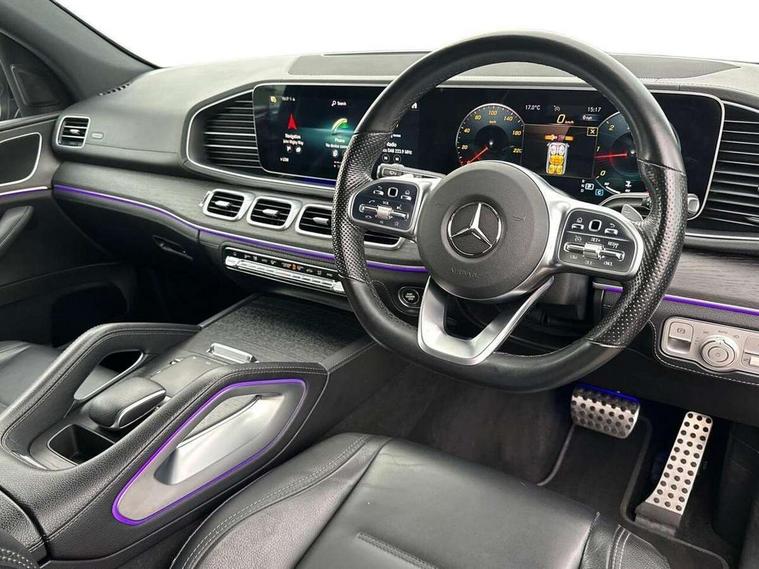 12.3 High resolution wide screen cockpit display with choice of three display styles Classic, Progressive or Sport and unique ambient lighting setting, Attention assist, Blind spot assist, Brake wear warning display, Cruise control with variable speed limiter, Direct steer speed sensitive steering, DYNAMIC SELECT with a choice of driving modes (ECO, Comfort, Sport and Individual), Easy-pack tailgate - Powered opening/closing automatically, ECO start/stop function, Geofencing, Hard-disk navigation, Hey Mercedes Voice activation, High resolution 12.3" multimedia colour display, Lane keeping assistant (LKA), Mercedes me connect including emergency call system, accident recovery, breakdown and maintenance management, Outside temperature display, Remote boot release, Reversing camera, Service indicator (ASSYST), Smartphone integration, Speed limit assist, Status display for rear seat belts in instrument cluster, Traffic Sign Assist, Traffic sign recognition including wrong way warning function and display of posted speed limits in the instrument cluster, Trip computer in multifunction display showing current fuel consumption, Wireless charging, 85 litre fuel tank, 9G TRONIC 9 speed automatic transmission, Diesel particulate filter (DPF), Incorrect fuelling protection, Lowered comfort suspension with steel springs and selective adaptive dampening with lowering by up to -15mm, Additional USB connection, DAB Digital radio, Dual bluetooth interface, 2 USB ports (type C), MBUX multimedia system, 3rd brake light, Adaptive brake lights, Adaptive high beam assist, Aerial for GPS, Aluminium look, illuminated running boards with rubber studs, AMG bodystyling front and rear aprons and side skirts in polished aluminium, Body colour door mirrors, Body coloured bumpers, Daytime running lights, Electric windows with one touch opening/closing and obstruction sensors, Exterior mirrors heated and electronically adjustable, Front green tinted glass, LED high performance headlamps, LED rear lights, Privacy glass - heat insulating dark tinted glass, Radiator grille with integrated star and single louvre in matt iridium silver with chrome trim, Radio aerial integrated into rear window, Rain sensing windscreen wipers, Rear side wing doors, Rear wiper, Roof rail system, Top surround of side windows in polished aluminium, Visible twin pipe exhaust system integrated into bumper, Waistline in polished aluminium, 3 spoke AMG multifunction steering wheel with touch control buttons, trimmed in black nappa leather with flattened bottom section, 3rd row of seats for 2 people, 4 way adjustable front head restraints and 2 way rear head restraints, 4 way lumbar support, 40:20:40 split folding rear seats, AMG brushed stainless steel sports pedals with rubber studs, AMG floor mats with AMG lettering, Artico man-made leather upper dashboard with contrast topstitching, Automatic child seat recognition sensor, Black roof liner, Central stowage compartment with 12 V socket in centre console, Chrome door pins, Courtesy lights in rear grab handles with reading light functionality, Electric height/reach adjustable steering column, Electronically adjustable second row three seats adjustments, Front centre armrest with stowage compartment and illuminated grab handles, Gearshift paddles on steering wheel, Glove compartment - lockable, air conditioned and illuminated, Heated front seats, Interior lighting - 64 colour Ambient lighting, Seat occupancy sensor for front passenger seat, Second row three seats, Single front passenger seat, Sports steering wheel, Sunvisors with illuminated vanity mirrors, Thermotronic automatic 4 zone climate control, Touchpad, Anti theft Protection package - GLE, Memory package - GLE, Mirror package - GLE, Parking package - GLE, Active bonnet, Active braking assist, Adaptive brake system with HOLD function and brake drying in the wet, Airbags - driver and front passenger, with extended adaptivity for front passenger airbag, Airbags - sidebag for driver and front passenger with combined thorax/pelvis bag, Airbags - windowbags, Anti-lock braking system (ABS), Childproof locks manually operated for rear doors and electrically operated for rear power windows, Drivers knee airbag, Electronic parking brake, Electronic Stability Programme (ESP), ISOFIX child seat attachment points two outer rear seats, Perforated front brake discs and brake calipers with Mercedes-Benz lettering, Pre-Safe anticipatory safety system, Three point rear seat belts, Tyre pressure monitoring system and loss warning system, Warning triangle and first aid kit, Alarm system/interior protection/immobiliser, Central locking with interior switch, automatic locking and crash sensor with emergency opening function, Chrome surround in electric key, Keyless Go starting function, Dashboard and door, anthracite open pore oak wood trim, Trim - Centre console, anthracite open pore oak wood trim, 21" AMG multi spoke light alloy wheels painted in black with a high sheen finish, Summer tyres with noise reducing absorber, TIREFIT with tyre inflation compressor,