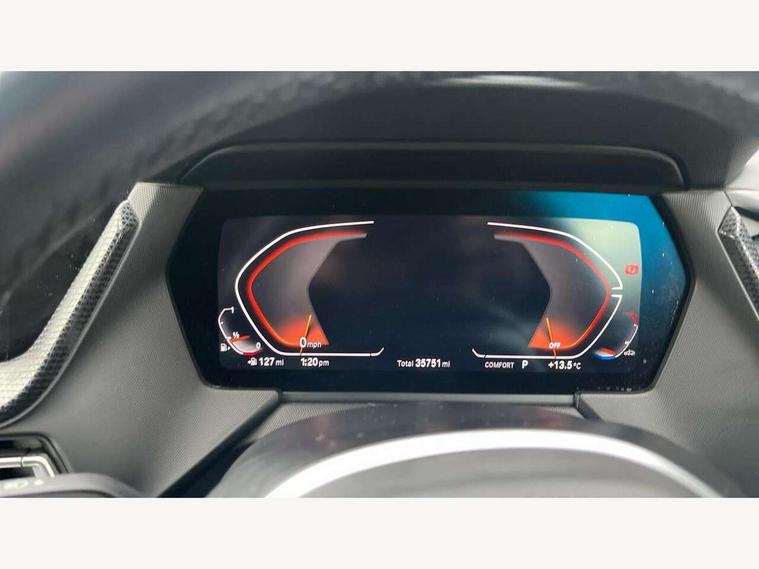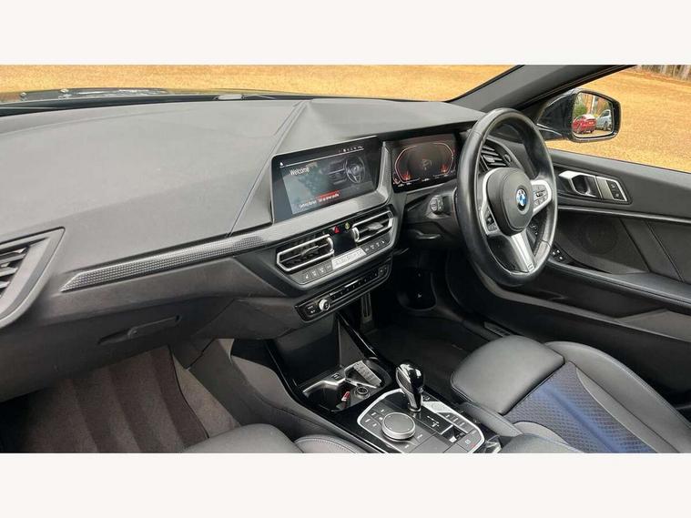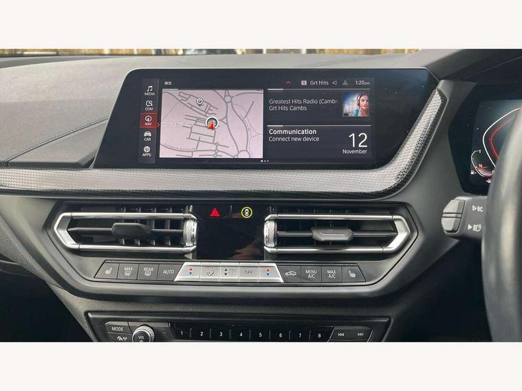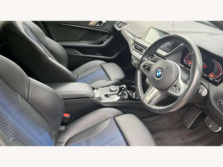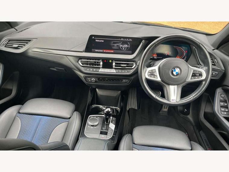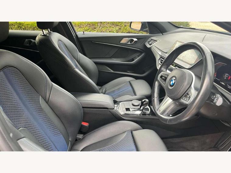Active guard plus, Attentiveness assist, BMW Online services, BMW Teleservices, Check Control warning system for monitoring of lights and door/luggage compartment open warning, Connected eDrive Services, Eco pro mode, Integrated owners handbook, Oil sensor for level and grade, On board computer, Optimum shift indicator, Personal Profile, Pull away assistant, Speed limiter, Aluminium lightweight construction, Anti roll bar front and rear, Balancer shaft, Double VANOS, Drive Performance Control, Electronic differential lock, High precision injection, M sport suspension, Petrol Particulate Filter, VALVETRONIC engine management, Bluetooth audio streaming, DAB Digital radio, Auto dimming rear view mirror, Automatic headlight beam throw control, Automatic windscreen wipers and automatic headlight, Body colour door handles, Body colour mirror caps, Chrome 'M' logo side designation, Chrome exhaust tailpipe in single, round (Exhaust tailpipe, stainless steel - single, round), Chrome kidney grille frame with Satin Aluminium struts, Direction indicator side lights in exterior mirrors, Electric folding and anti dazzle exterior mirrors, Fading support, Follow me home headlights, Front and rear bumper system with replaceable deformation elements, Front and rear electric windows with open and close fingertip control, anti trap facility and comfort closing, Front door sill finishers in black plastic with M designation in metallic look, Green tinted heat protection glazing, Heated, electrically adjustable exterior mirror aspheric on driver side, convex on passenger side, High gloss shadowline window frame, Recess cover mirror frames and B/C pillar embelisher trim, High level third brake light, LED daytime running lights, LED eyebrow turn indicators, LED front fog lights, Lightweight engineering, Matt black air guide grilles, Model designation on right side of tailgate, Nearside reverse light in rear light cluster, Preparation for high beam assistant, Rain sensor including auto headlights activation, Rear fog lights, Rear window wiper, Shark fin antenna, Visible VIN plate, Welcome lighting, 12V power socket in centre console, 3 rear seat head restraints, 3 spoke M sports design leather steering wheel finished in nappa leather with specific M badge, Anthracite headlining, Anthracite Velour floor mats, Child seat ISOFIX attachment for two outer rear seats and front passenger seat with anchorage points, Conditioned based service, Dakota leather upholstery with perforation and contrast stitching, Driver and front passenger seat heating, Folding rear clothes hook, Four grab handles integrated in roof lining, Front and rear door pockets, Front and rear door pockets with bottle holders, Front and rear side armrest integrated into door trim, Front armrest foldable with integrated storage compartment, Front sports seats with electric side bolster adjustment, Glove compartment, Height adjustable front head restraints, Manual adjust steering wheel, Multi-function controls for steering wheel, Storage compartment in centre console, Sun visors with vanity mirrors and insert tab, Two zone automatic air conditioning, Additional interior lighting pack - 1 Series, Connected pack professional - 1 Series, Extended storage pack - 1 Series, Interior lights pack - 1 Series, Luggage compartment pack - 1 Series, M Sport exterior styling aerodynamics pack - 1 Series, 2 tone horn, 3 point seatbelts on all seats, front pyrotechnic belt tensioners, stopper and belt force limiters, rear coded belt buckles, Airbags - front driver/passenger, front & rear curtain, front side, Anti lock braking system (ABS) with brake assist, BMW emergency call, Brake drying, Braking readiness, Crash sensor activating central locking release, hazard warning lights, fuel cut off, interior lighting + activation of safety battery terminal clamp, Driver and front passenger seat belt security check, Dynamic stability control + (DSC+), Dynamic Traction Control - DTC, Electrically operated hand brake, Front and rear disc brakes, Front passenger manual airbag deactivation, Seatbelt warning, Side impact protection, Tyre pressure monitoring system, Warning triangle and first aid kit, Automatic drive away locking facility, Central locking switch for all doors, fuel filler cap and luggage compartment, Deadlocking function system to all doors, Locking wheel bolts, Remote control with integrated key with High-gloss Black inlay and M designation and 1 button for open/ close lock, window, open luggage compartment, Start/stop button with comfort go keyless engine start and auto start stop deactivation button, Thatcham Cat.1 alarm and immobiliser, Contrast stitching on instrument panel, Reduced rolling resistance tyres,