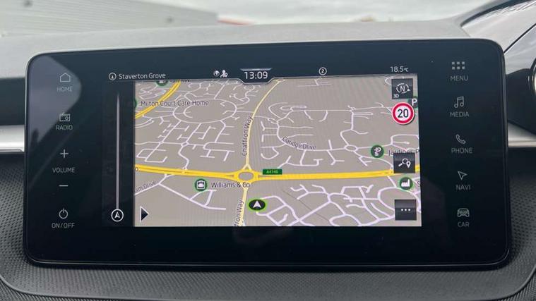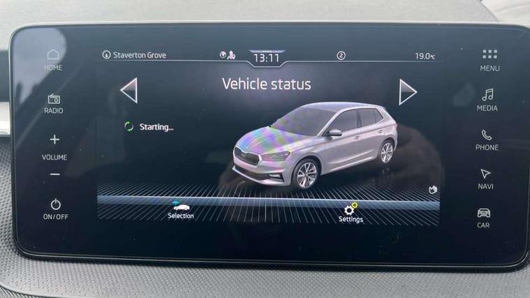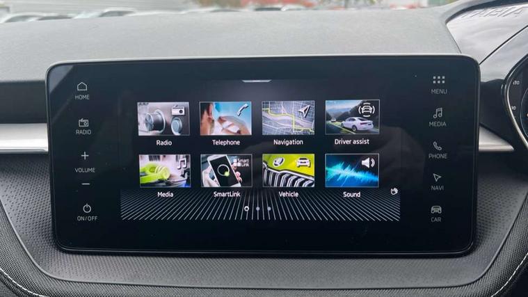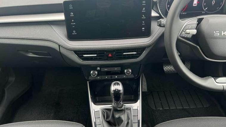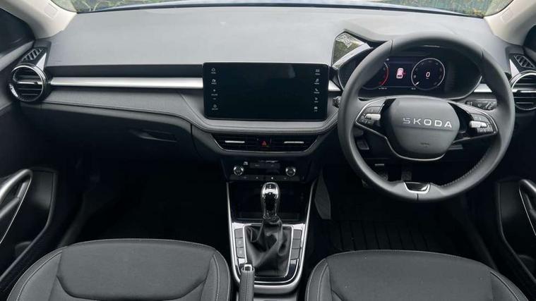 Advanced driver attention and drowsiness monitor, Bluetooth connection, Driver alert system, Electromechanical power steering, Exterior temperature gauge, Service interval indicator, Traffic sign recognition, Virtual cockpit with 10.25" colour display, Wireless SmartLink for Apple CarPlay and Android Auto, 6 Speakers (4 in front and 2 in rear), 9.2" colour display skoda navigation system with voice control and web radio, Auxiliary socket for external MP3 player, DAB digital radio reception, Auto dimming rear view mirror, Body colour door mirrors, Body coloured bumpers, Chrome window surround, Door mirror integrated indicators, Front and rear electric windows, Front window wiper intermittent control, Headlight range control - Automatic, Ice scraper in fuel cap, LED 3rd brake light, LED daytime running lights with coming and leaving home feature, LED rear lights, Privacy glass, Rear LED fog light, Rear side wing doors, Rear window wiper with washing nozzles, Roof mounted spoiler, SKODA tailgate lettering in chrome, Unique dark chrome design logo on alloy wheels, 2 LED reading lights in front and rear, 3 rear headrests, Backrest split and folding, Central console with fixed cup holder and storage box, Chrome handbrake release button, Comfort seats, Door sills with fabia badging, Dual zone air conditioning with climatronic electronic control, Fabric upholstery, Front centre armrest, Gearshift knob/handle in leather, Grain satin black interior door handles, Hand brake lever handle in leather, Height adjustable front headrests, Height adjustable front seats, Height adjustable steering wheel, ISOFIX and TopTether anchorage points to the outer rear seats, ISOFIX and TopTether on the front passenger seat, Luggage compartment lighting, Manually adjustable lumbar support in front seats, Pollen filter, Rear seat bench unsplit, Single front passenger seat, Skoda lettering on steering wheel, Storm grey headlining, Sun visors with mirror and airbag label on passenger side, Textile floor mats, Ticket holder, Umbrella in drivers door, Ambient lighting pack - Fabia Hatchback, 3-point height adjustable front seats belts with pretensioner and force limiter, Automatic warning lights in case of crash, Driver and passengers airbag with switch off function, e-Call+, ESC including ABS, MSR, ASR, EDS, HBA and XDS, Front and rear seat belt warning, FRONT ASSIST (AEB City and AEB Inter Urban), Front side airbags, Head airbags, Hill hold control, One tone horn, Pedestrian protection, Three rear 3-points safety seat belts with pretensioner and force limiter including stop function for outer rear seat belts, Tyre pressure monitoring system, Anti-theft alarm system including immobiliser, interior monitoring, backup horn, and towing protection, Central locking with radio remote control, interior controls, SAFE function and 2 foldable keys, Chrome edged air vents, Grain satin black central console cover, Metallic grey upper decorative trim, Satin black door and side trim panel in front, Textile microsuede grey lower decorative trim with art grey stitching, Anti-theft wheel bolts protection, Super-low rolling resistance tyres,