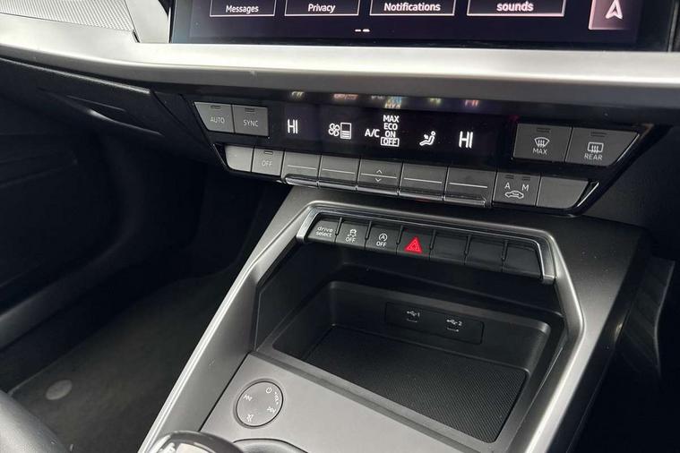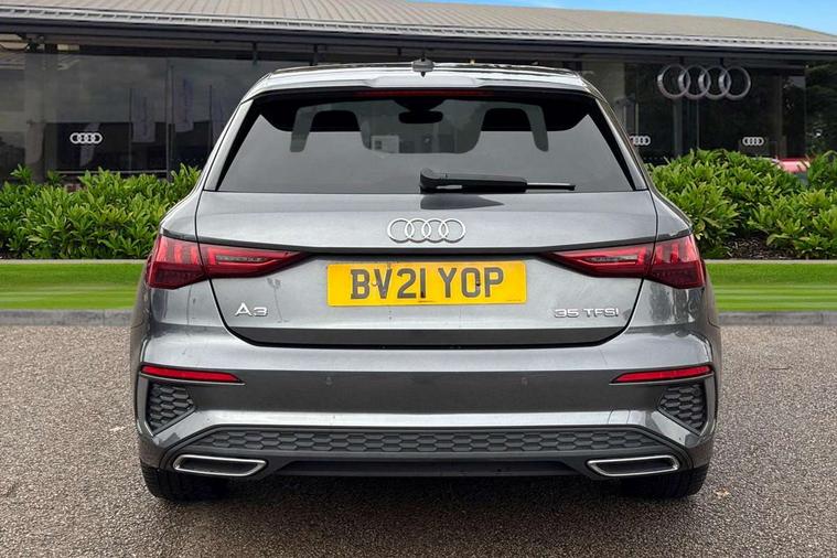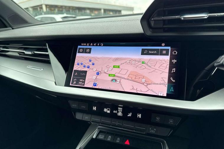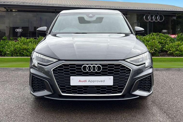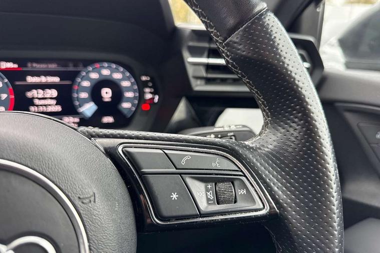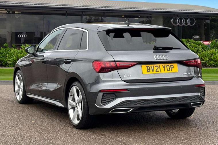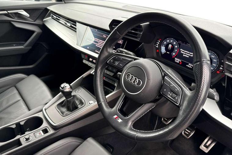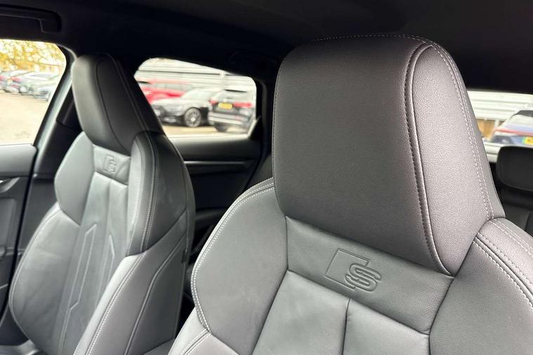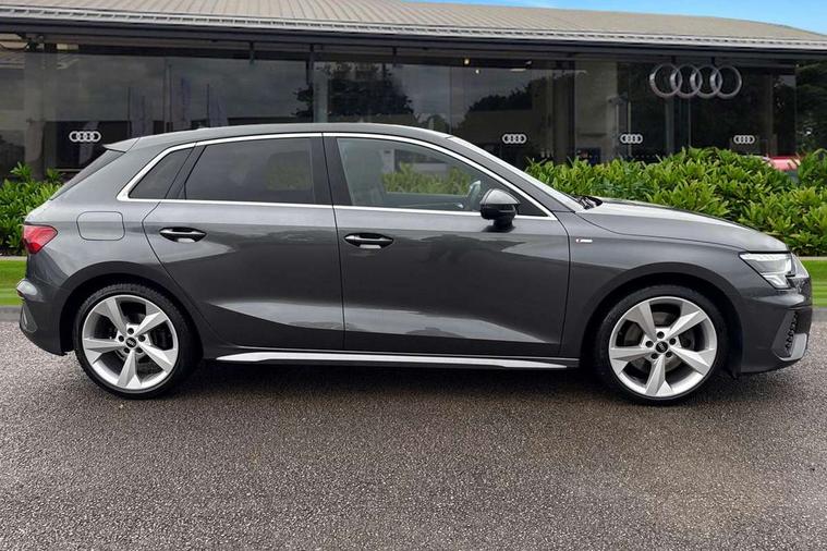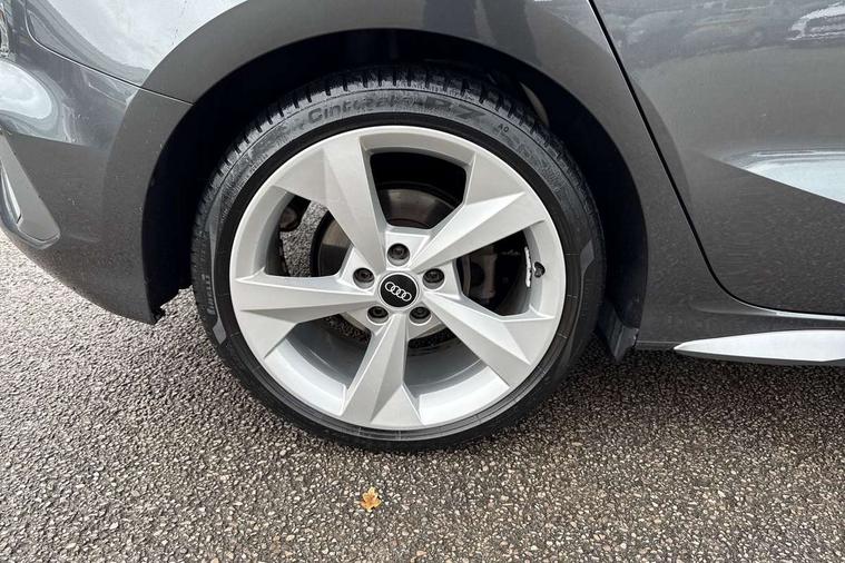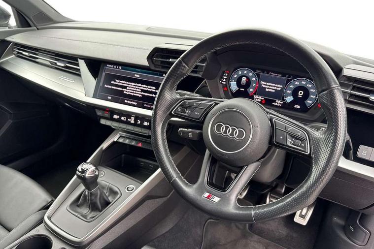 Audi connect emergency call and service, Audi drive select (Auto, Comfort, Dynamic, Efficiency and Individual), Audi smartphone interface, Audi Virtual Cockpit - 10.25" digital and colour instrument cluster, Automatic start/stop system with recuperation, Bluetooth interface, Collision avoidance assistant, Cruise control, Electromechanical power speed sensitive steering, Lane departure warning system, MMI Navigation Plus with high resolution 10.1" colour touch screen display, Rear parking sensors, Service indicator, Trip computer, Voice control system with natural language interaction, 2xUSB-C connection with data and charging functions, 6 passive loudspeakers, DAB Digital radio, Acoustic glass windscreen, Aluminium window trim, Auto dimming frameless rear view mirror, Electrically adjustable/heated/folding/auto dimming door mirrors with integrated LED indications + kerb view function for passenger side, Front electric windows, Illuminated aluminium inserts front door sills with S logo, LED daytime running lights, Light and rain sensors, Privacy glass - dark tinted rear window, rear door and side windows, Rear electric windows, Rear side air outlets in grained matt black, Rear wiper, S line bumpers, S roof spoiler, 12V socket and storage compartment in front centre console, 40/20/40 split folding rear seat bench with cupholder, Black cloth headlining, Dual zone electronic climate control, Front and rear centre armrest in leather, Front and rear headrests, Front/rear floor mats, Height and reach adjustable steering wheel, Interior lighting - glove compartment light and right hand side, Luggage compartment floor covering, Manual boot compartment lid, Manually adjustable front seats, Seat side bolsters, Stainless steel pedals and front footrest, Twin leather upholstery with front sports seats S embossed logo, Aluminium interior elements pack - A3 Sportback, S line styling pack - A3 Sportback, 3x3 point rear seat belts, Driver and front passenger airbag with passenger airbag deactivation, Electronic Stabilisation Control (ESC) including ABS, ASR and EDL, First aid kit with warning triangle and 2 safety vests, Front side airbags with head airbags and interaction airbag, Hill hold assist, Pre-sense front with pedestrian and cyclist detection, Seatbelt monitoring, Tyre pressure loss indicator, Anti theft alarm, Anti-theft wheel bolts, Electronically operated child lock, Immobiliser, Remote control central locking, Accent surfaces in the dashboard and centre console in platinum grey silk effect paint finish, Dark spectrum aluminium inlays,