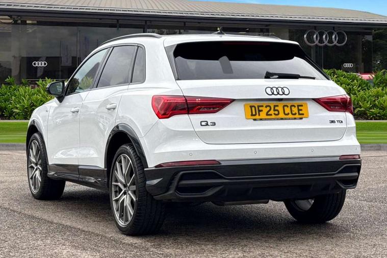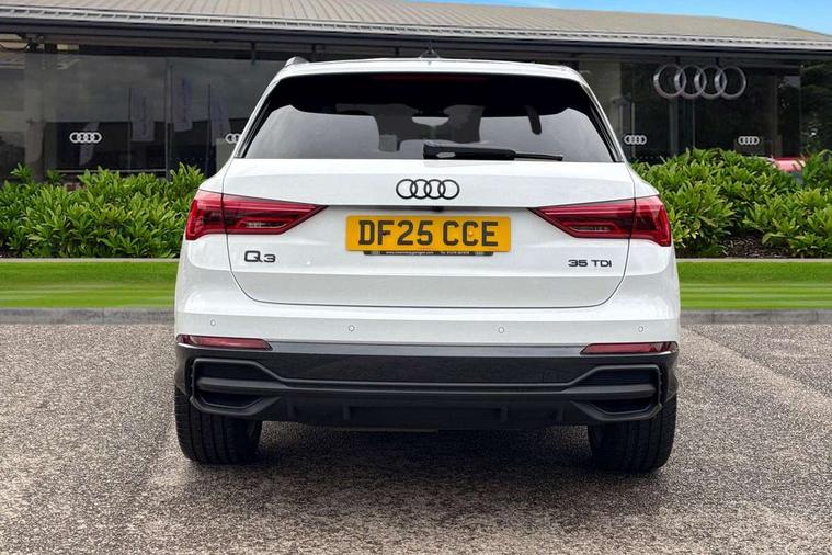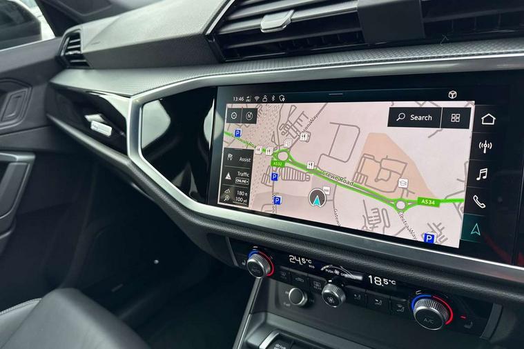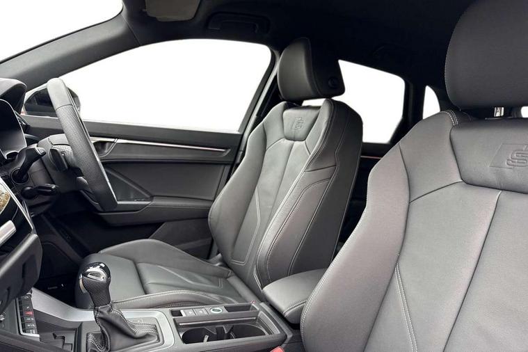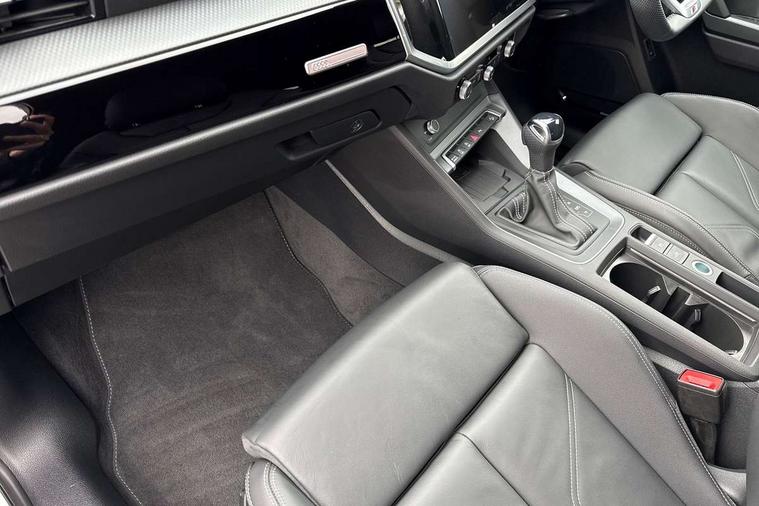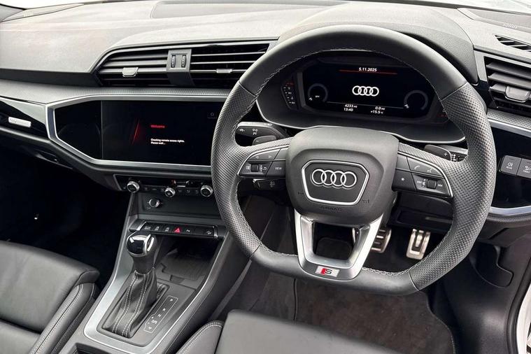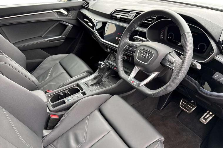 Amazon alexa Integration, Audi connect safety and service, Audi drive select, Audi lane departure warning, Audi Virtual Cockpit - 10.25" display, Bluetooth interface, Camera based traffic sign recognition, Distraction and Fatigue warning, Legal emergency call, MMI Navigation Plus with high resolution 10.1 inch touchscreen colour display, Power operated tailgate, Progressive steering, Service interval indicator, Smartphone interface includes wireless Apple carplay/Android Auto, Start stop system with recuperation, Voice control system with natural language interaction, Diesel particulate filter, Sports suspension, 2 USB-C ports with charge and data functions, 6 passive loudspeakers, DAB digital radio module, Acoustic windscreen, Audi Beam uses LEDs to project the Audi logo onto the ground as you exit your Q3, Auto dimming door mirrors, Auto dimming frameless rear view mirror, Black roof rails, Electrically folding, adjustable and heated door mirrors with integrated LED side indicators and kerb view function for passenger side, Front and rear electric windows, Front fog lights, Grille vertical bars in aluminium silver/Matt, High gloss black finish B and C pillars, LED Dynamic rear indicators, LED headlights with LED daytime running lights, LED rear lights, LED third brake light, Privacy glass dark tinted rear and rear-side windows (from B-pillar backwards), Rain and light sensors, Rear diffuser grille in grained matt black, Rear diffuser strip in matt anthracite black, Rear side wing doors, Rear wiper, S line bumpers in contrasting Manhattan grey, Variable front intermittent wipers, 12V socket in rear centre console, 3 seat bench in 2nd row, 40:20:40 folding with manual adjustment for 60:40 forwards/backwards position and backrest angle, Adjustable rear seat bench/backrest with centre armrest and cupholder, Black cloth headlining, Dual zone electronic climate control, Electric lumbar support, Front and rear black floor mats with contrast stitching in rock grey, Front and rear headrests, Front centre armrest, Height and reach adjustable steering wheel, Illuminated door sill trims with S logo, ISOFIX child seat mounting for front passenger with airbag deactivation and outer rear seat including top tether attachment point for outer rear seats, Manual front seats with height adjustment, Perforated leather gearknob, Single front passenger seat, Stainless steel luggage compartment sill finisher, Stainless steel pedals, Twin leather upholstery with front sport seats + S embossing, Black styling pack - Q3, Non smoking pack - Q3, 3x3 point rear seatbelts, 6 airbags - Driver, front passenger, curtain and side windows, Audi pre-sense front with pedestrain and cyclist recognition, Electrically operated child locks on rear doors, Electromechanical parking brake, Electronic stabilisation control including ABS, ASR and EDL, Front seatbelt reminder, Hill descent control, Hill hold assist, Pre sense basic, Seatbelt monitoring, Tyre pressure warning, Warning triangle and first aid kit, Anti theft wheel bolts, Immobiliser, Remote central locking, Thatcham approved category 1 anti theft alarm, Aluminium look interior elements, Detail dashboard around MMI touch colour display in glass look, black with surround in aluminium look, Leatherette door armrest, Piano black inlay,