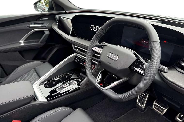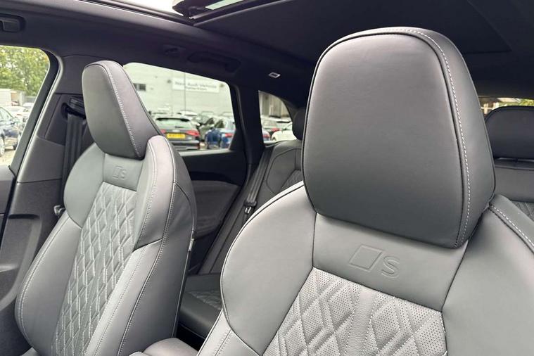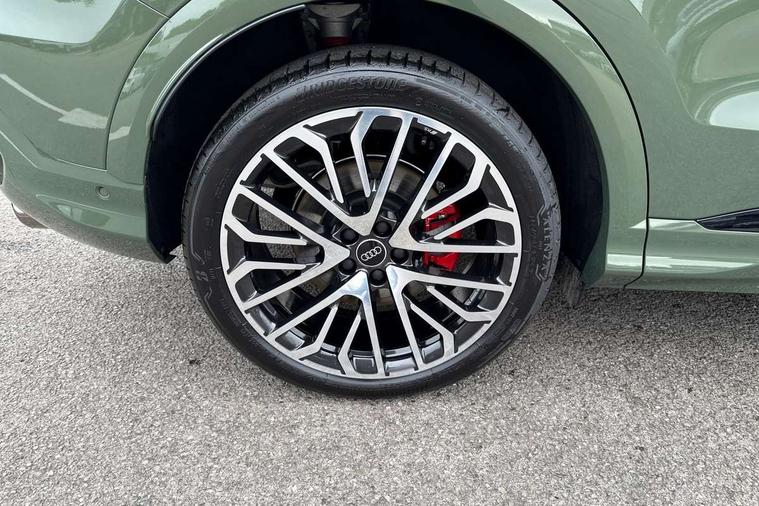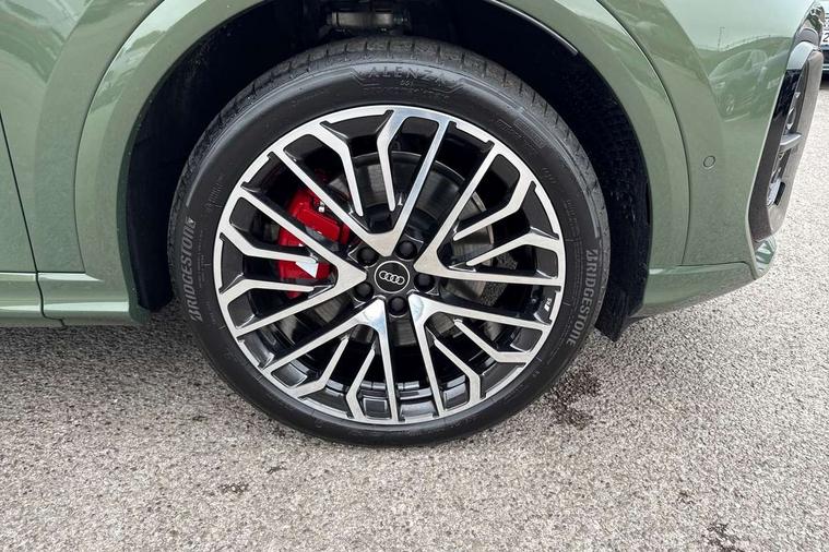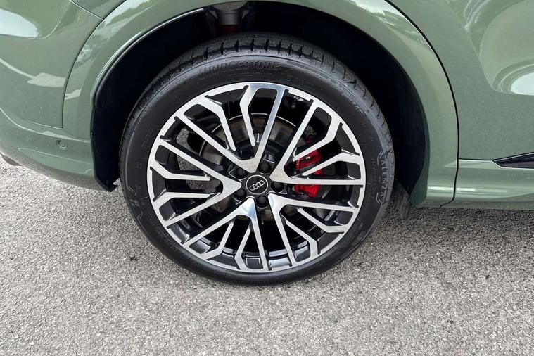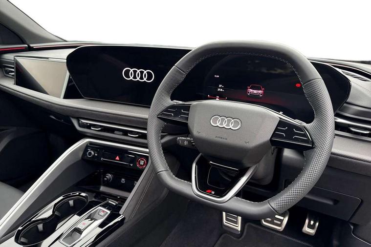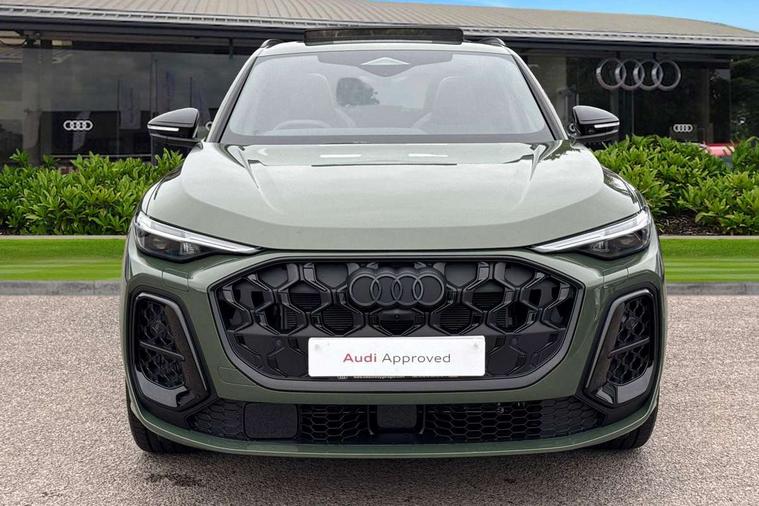 Adaptive cruise assist plus with steering intervention, Advanced driver attention alert, Audi application store, Audi connect emergency call and service, Audi digital key, Audi drive select, Audi smartphone interface, Audi virtual cockpit plus with 11.9" OLED colour display, Camera based traffic sign recognition, Fatigue monitor, Front cross traffic intersection assist, Garage door opener, Lane change assistant with exit warning system, rear cross traffic alert and rear turn assist, Lane departure warning with emergency assist, MMI 10.9" front passenger touch display, MMI navigation plus with high resolution 14.5" OLED touchscreen colour display, Park assist plus, Parking system plus with 360 display, PAS, Reversing camera, Swerve assist and turn assist, Top view camera, Traffic sign based speed limiter, S adaptive air suspension, 2 USB-C ports in both the front and rear, DAB Digital radio, Smartphone compartment with wireless charging, Acoustic glass for front door windows, Active digital light signatures - Six additional combinations of active daytime running light signature, Auto dimming rear view mirror, Coming/leaving home lighting function, Digital OLED tail lights including communication light, Electrically adjustable heated and folding + automatically dimming exterior mirrors, Exhaust tailpipes in dark chrome, Front and rear electric windows, Front door sill trims with aluminium inlays, illuminated with 'S' logo, Full body paint finish, Headlight cleaning system, Heated rear window, High beam assist, High gloss window surrounds, Inlay and front air inlets in matt anthracite chrome, Logo projection light in exterior mirrors, Matrix LED headlights, Memory function for door mirrors, Privacy glass, Projection light for rear window, Radiator grille in phantom black, Rear and side windows with heat insulating glass, Rear honeycombe grille in matt black with inlay in matt anthracite chrome, Rear side wing doors, Rear wash/wipe, Red S rhombus badging with 'S' lettering on rear, S exterior styling, Towbar preparation, Windscreen with acoustic glazing, 3 rear head restraints, 3 seat bench in 2nd row, 3 spoke leather steering wheel with multi-function buttons with touch control, flattened on top and bottom, with S badging and contrast stitching, 40:20:40 split folding rear seat bench with centre armrest and cup holders, Comfort centre armrest, Deluxe 3 zone electronic climate control, Electric steering wheel adjustment, Electrically adjustable front seats with memory function for driver's side, Front and rear floor mats, Front seat ventilation, Front sport seats with integrated head reastrains, Headlining in black cloth, Heated front seats, Heated outer rear seats, Heated steering wheel, i-Size child seat mounting on the front passenger side and outer rear seats, i-Size and top tether on the outer rear seats, Increased charging capacity for USB ports 2X100 Watts in rear, 2X60 Watts in front, Interior trim in aluminium look, Luggage compartment lid, electrically opening and closing, Perforated fine nappa leather with diamond stitching incl. ventilation and massage function for front seats, Pneumatically adjustable lumbar support with massage function for front seats, S embossed logo on front sport seats, Single front passenger seat, Softwrap in Dinamica, Stainless steel pedals and footrest, Steering wheel grips in perforated leather and shift paddles, Ambient lighting package plus - Q5, Black styling package plus - Q5, Sound and Vision pack - Q5, Storage and luggage compartment pack - Q5, 3x3 point rear seatbelts, ABS, Acoustic vehicle alerting system, Convenience key with safelock, Driver and front passenger airbag with passenger airbag deactivation, Electric child safety locks, First aid kit with warning triangle and high visibility vests, Front emergency brake assist, Front side airbags with head airbag system and front interaction airbag, Hill hold assist, Occupant detection in rear seat area, Proactive passenger protection system for front, sides and rear, Red brake calipers, Side airbags in front and rear with head airbag system and front interaction airbag, Tyre pressure loss indicator, Anti theft alarm, Anti-theft wheel bolts, Remote control key with SAFELOCK and keyless go, Accent surfaces and control buttons in gloss black, Black dashboard with contrast stitching, Steel grey seat stitching, Upper and lower interior elements in dinamica microfiber, Tyre repair kit,