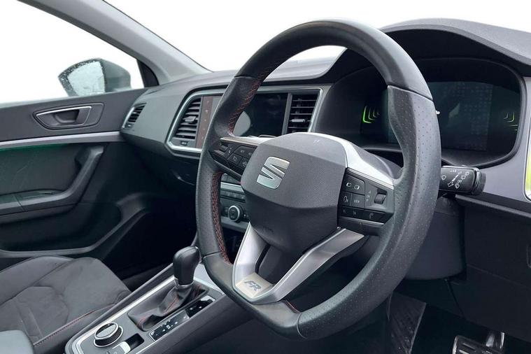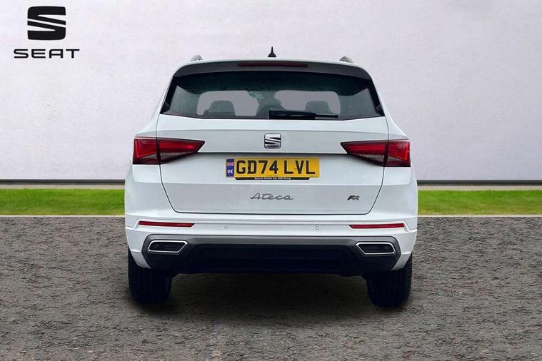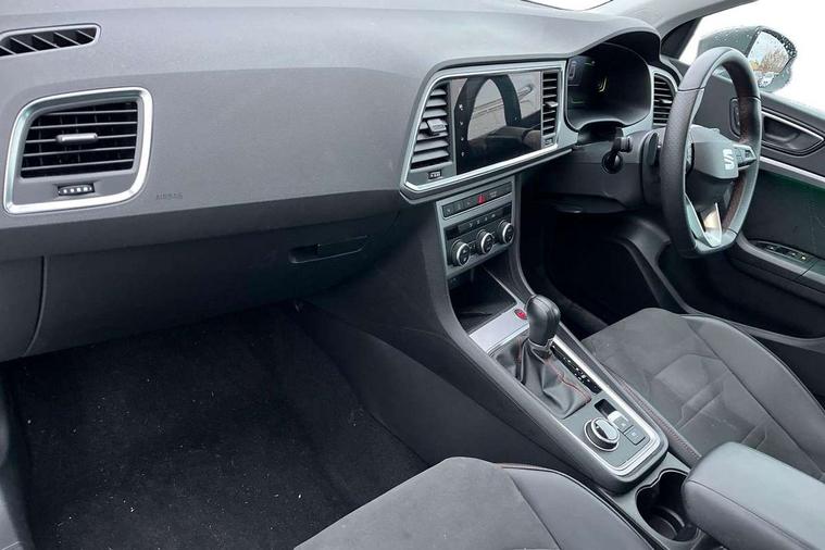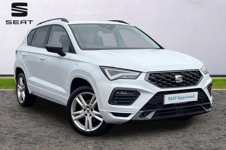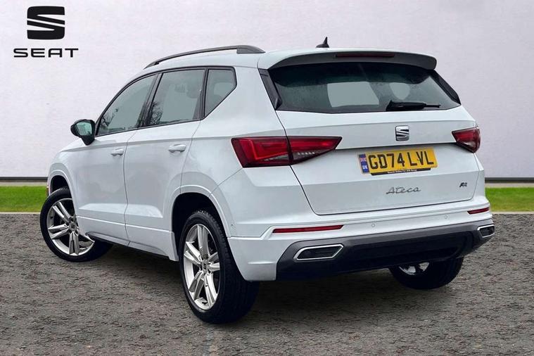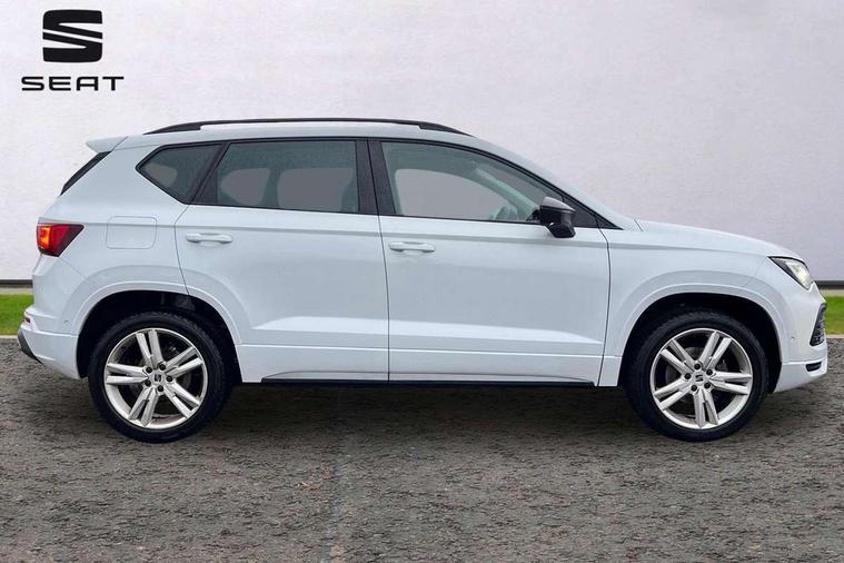 8" Digital cockpit, Colour multi-function on board computer display, Cruise control system with speed limiter, E-call, Outside temperature gauge, Progressive power assisted steering, SEAT drive profile with driving experience button - Normal, Sport, Eco and Individual mode, gearshift, steering and throttle response, Self parking functionality (includes front and rear parking sensors), Start/stop system, Tailgate, Trip computer, wired and wireless full link smartphone integration, Wireless phone charger, Steering wheel mounted audio/phone controls, Black roof rails, Black side window trim, Body colour bumpers, Body coloured wheel arch surrounds, Chrome front grille frame, Dark tinted rear windows, Daytime running lights, Door mirrors with welcome light silhouette, Dynamic headlight range control with self adjusting whilst driving, Electric adjustable/heated/folding door mirrors, Front and rear electric windows, Full LED headlamps with lens and LED front fog lamps with cornering function, Illuminated aluminium front door sill, LED 3rd brake light, LED rear tail lights with dynamic indicators, Rear exhaust tailpipe, Rear fog lights, Rear side wing doors, Rear wash/wipe, Roof spoiler, Variable front intermittent wipers, 12V socket in front, 3 seat bench in 2nd row, 60/40 split folding rear seat, Aluminium pedals, Dinamica upholstery with front comfort seats, Drawer under right front seat, Dual zone climate control, Front and rear head restraints, Front centre armrest, Front seat back storage pockets, Height adjustable driver and passenger seat with lumbar adjustment, ISOFIX points in outer rear seats with top tether anchorage points, Leather sports steering wheel and gear knob, Rear armrest and easy back seat release mechanism from boot, Single front passenger seat, Steering wheel mounted gearshift paddles, Convenience pack - Ateca, Interior lighting pack - Ateca, Navigation system pack with DAB - Ateca, Safety and driving pack with attention and drowsiness assist - Ateca, 3x3 point rear seatbelts, ABS, Traction control system (TCS), Electronic stability control (ESC) and Electronic differential lock system (XDS), Airbags - Driver and front passenger airbag with deactivation, front side, two curtain and driver's knee airbags, Electric parking brake with auto hold function, Front and rear seatbelt reminder, Front assist with autonomous emergency braking, Hill hold control, Manual rear child locks, Single tone horn, Tiredness recognition system, Tyre pressure monitoring system, Alarm, Keyless entry, Locking wheel bolts, Remote central locking, Chrome interior detailing, 18" Brillaint silver alloy wheels,