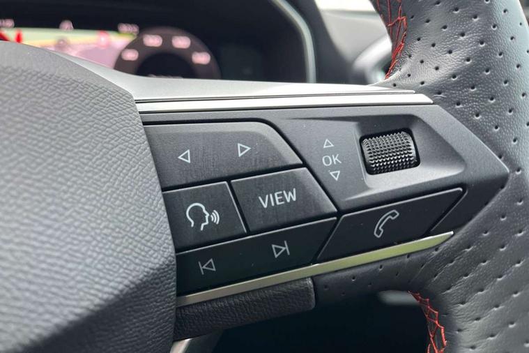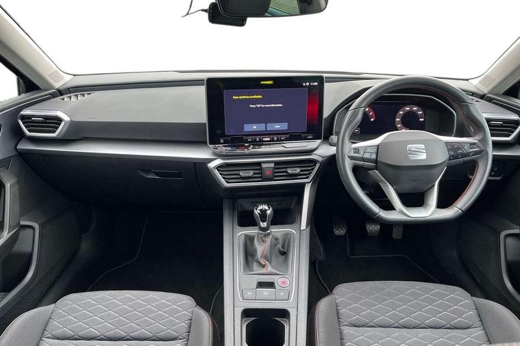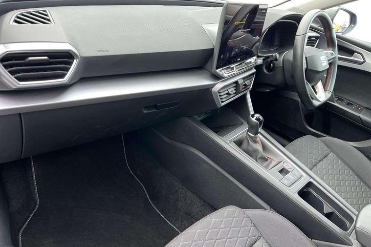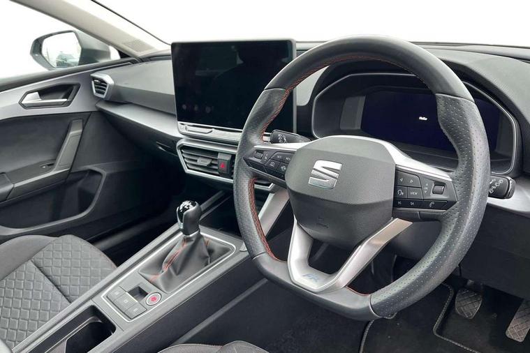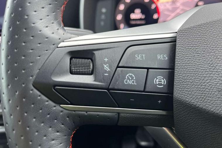 Digital cockpit, E-call, Four x USB Type C ports, Front assist with forward collision warning braking reaction to vehicles, pedestrians and cyclists, Full link smartphone integration with Mirror Link, wireless Apple CarPlay and wired Google Android Auto, Lane assist, Lockable tailgate, Park assist (inc front/rear parking sensors), Power assisted speed sensitive electro-mechanical steering, Rear view camera, RPM, trip computer, outside temp gauge, instrument light brightness, low fuel warning light, lights on reminder, gearshift indicator, SEAT drive profile with 4 modes (Eco/Normal/Sport/Individual), throttle response, Service interval indicator, Start/stop system with regenerative braking, Sports suspension, XDS electronic differential lock and dynamic traction support, 7 speakers, Auxiliary input socket, Auto dimming rear view mirror, Body colour door handles, Body coloured bumpers, Cosmo grey exterior mirrors with integrated LED indicators, Dark tinted rear windows, Dynamic headlight range control, Electric front/rear windows, Electrically adjustable, heated and folding door mirrors, FR sports bumper, Illuminated front door sill, LED front fog lamps, LED Headlights with dynamic turn signals, LED tail lights and rear fog lights with rear coast to coast lighting, Matt black roof rails, Rear side wing doors, Rear wash/wipe, Separate daytime running light with automatic headlight control and coming home feature, Third brake light, Welcome light silhouette from exterior mirrors, Windshield wiper intermittent control with light/rain sensor, 12v power point in centre console, 3 seat bench in 2nd row, 60/40 split rear bench seat with armrest, Ambient lighting with glovebox, footwell and single monocolour, Driver/passenger manual seat height adjustment, Dust/pollen filter, Flat bottomed perforated leather steering wheel with red stitching and FR logo and leather gear stick, Front and rear height adjustable headrests, Front and rear reading lights X 4, Front centre armrest, Front seatback storage pockets, Height/reach adjust steering wheel, ISOFIX points in outer rear seats with top tether anchorage points, Luggage tie-down hooks, Lumbar adjustment for front seats, Single front passenger seat, Sliding boot cover, Sunvisors with covered illuminated mirror, Three zone climate control, Two tone cloth upholstery, Media system plus with navigation - Leon, 3 point seatbelts on all rear seats, ABS, Brake control system - ESC and brake booster, Child proof door locks, Driver and front passenger airbags with front passenger airbag de-activation, front side and curtain airbags, Electronic parking brake, Extended safety system - seat belt tensioner, window closure and hazard lights, Hill hold control, Rear disc brakes, Seat belt reminder for front and rear seats, Tiredness recognition system, driver alert system, Tyre pressure monitoring system, Anti theft alarm system with interior monitoring in cab, backup horn and towing protection, KESSY Go (Keyless start), Locking wheel bolts, Wireless phone charging, Chrome interior detailing, 17" Dynamic Bi-spoke alloy wheels with 91W tyres, Tool kit,