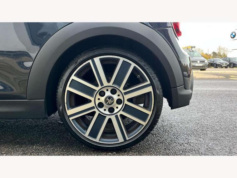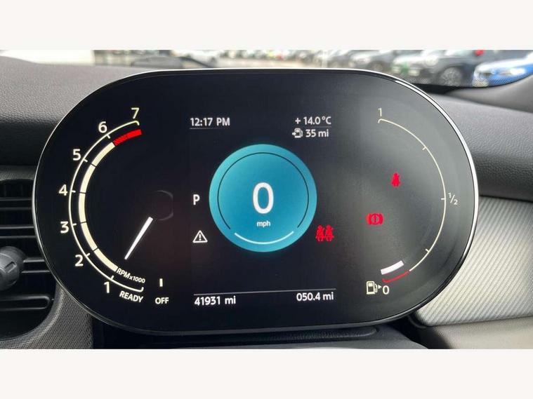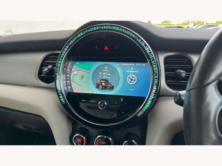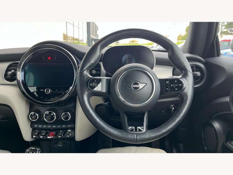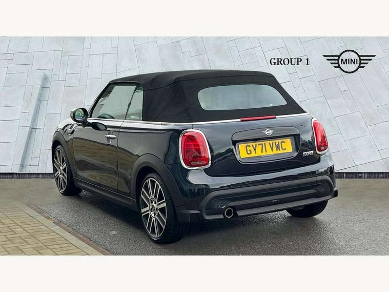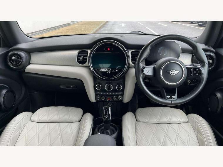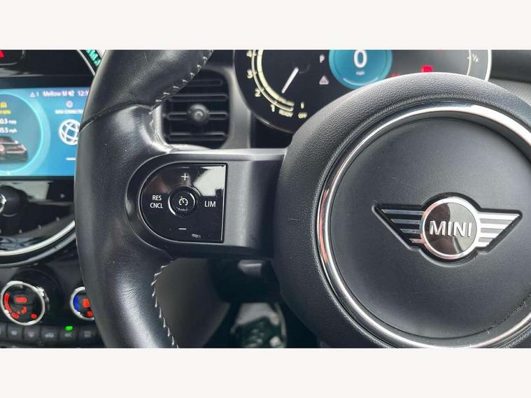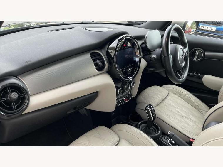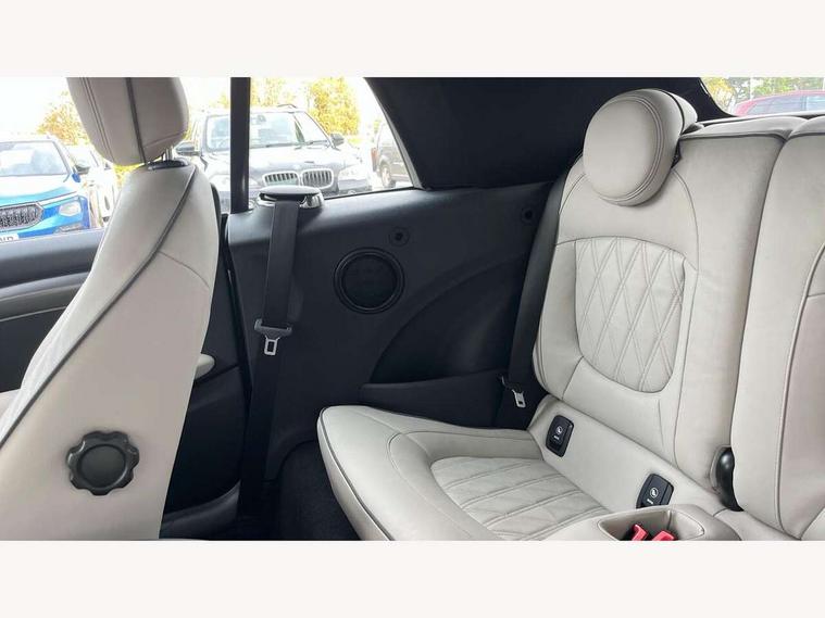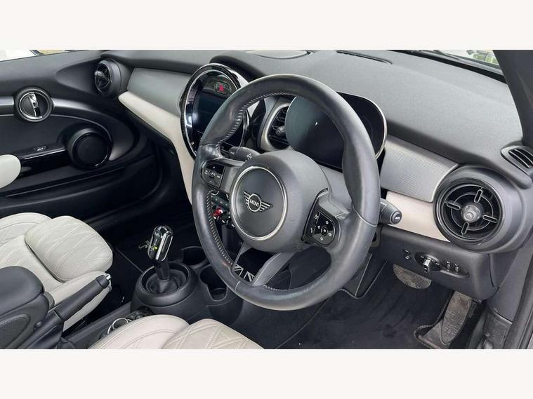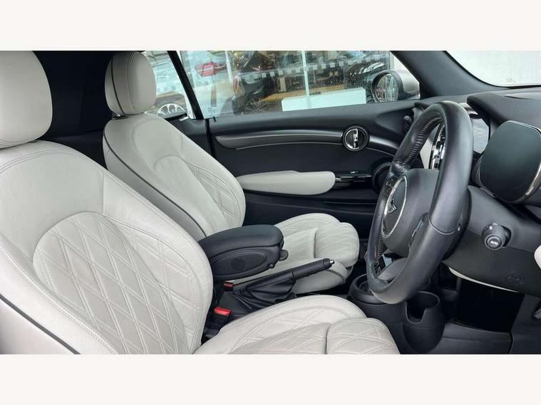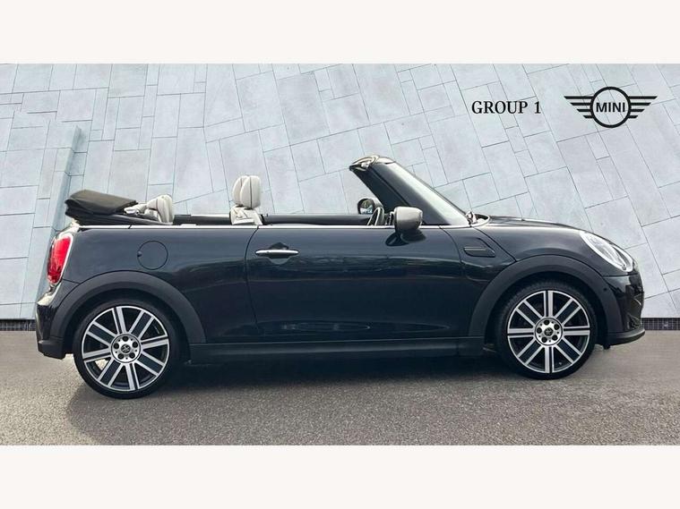 Apple CarPlay, Automatic start/stop function with brake energy recuperation, Compatible mobile phone bluetooth with audio streaming, Cruise control with brake assist, Electro-mechanical speed dependant steering assistance, Instrument cluster, MINI Driving Modes - centre toggle switch to control driving setting (sport, mid and green), Mini E-call, MINI TeleServices, On board computer, Rear park distance control, Service interval indicator, Double Vanos system, Fully variable valve control, High precision injection, Performance Control, Steptronic transmission with double clutch, 8.8" touchscreen with LED ring, FM tuner and DAB digital radio, Automatic headlight activation switch, Body colour fuel filler cap, Dynamic brake lights, Electric windows, Fully electric black softtop with integrated sunroof functionality, Heated rear window, Heated windscreen washer jets, LED headlight with closed ring and daytime driving lights, Left exhaust tailpipe with chrome finisher, Metal door sill strips with MINI imprint, Mini Yours soft top - Black/Union Jack, Model logo Cooper on right of tailgate, Radiator grille bars, tailgate handle, lower front grille grating, rear central fog light in chrome, Rain sensor window wipers, Rear fog lights, Rear LED lights with union jack design, Side scuttle panel with integrated indicator, Sun/heat protection glass, White indicator lenses, 12V Accessory socket in centre console, 4 lashing eyes in luggage compartment, 50/50 split folding rear seats, Chrome interior highlights, Colour line - Carbon black, Cupholders, Easy Load boot handles, Front and rear head restraints, Front and rear isofix with front passenger airbag deactivation, Glove compartment, Height and length steering column adjustment, Interior lighting with 12 different colours running across the dashboard, underneath door bezel illuminated laser engraved design on central display, Leather gearshift lever and handbrake gaiters, LED reading lights, vanity mirror lights, front foot well light and spotlight on front seats, Manual air conditioning, Mechanical seat adjustment, driver seat height adjust, forward/back and front seats backrest, MINI Yours walk nappa leather steering wheel with grey seam and MINI Yours badge on piano black lower steering wheel spoke, Multifunction steering wheel, Sports steering wheel, Storage compartments in doors, Sunvisors with vanity mirrors, Velour floor mats, Convertible pack with comfort access - Mini Convertible, 3 point seatbelts on all four seats, 6 Airbags - front, side and seat belt tensioners, Active rollover protection, Anti-lock braking system (ABS), DSC - Dynamic Stability Control, Front and rear disc brakes, Hill start assist, Single tone fanfare horn, Tyre pressure monitoring system, Alarm system with tilt sensor, monitoring doors, bonnet interior and tailgate, Electronic vehicle immobiliser, Keyless Go, Tool kit,