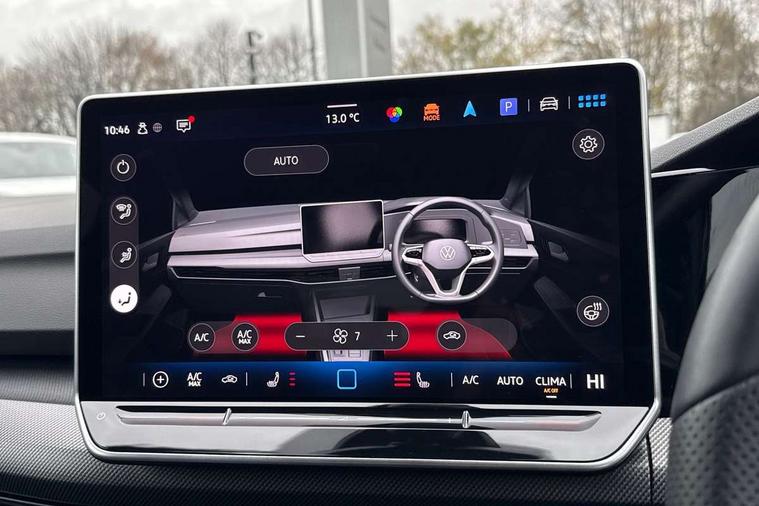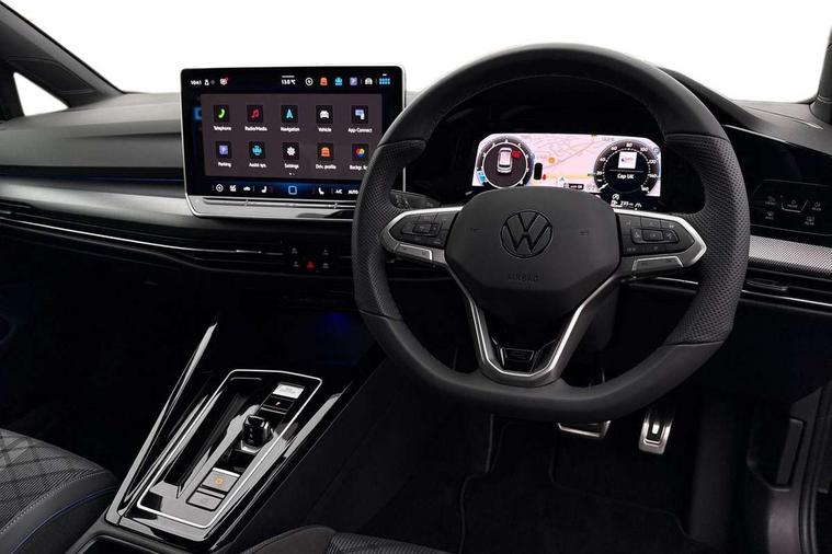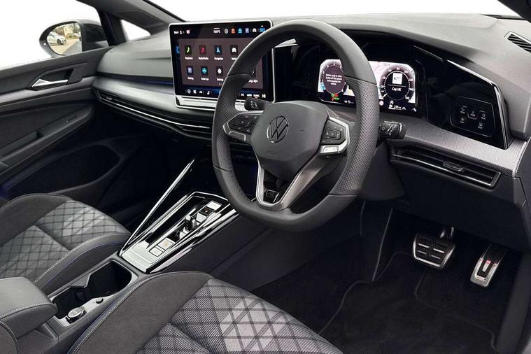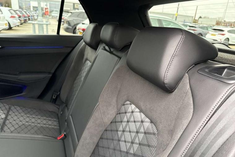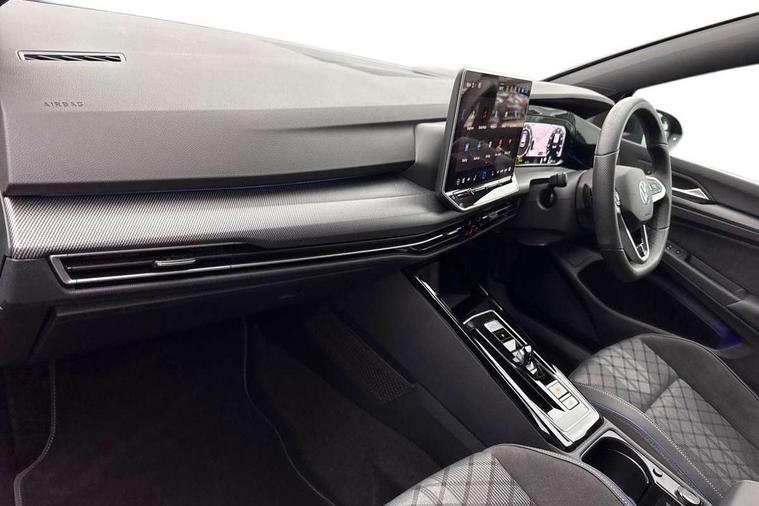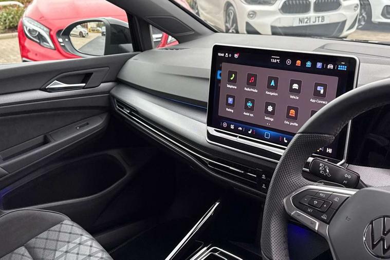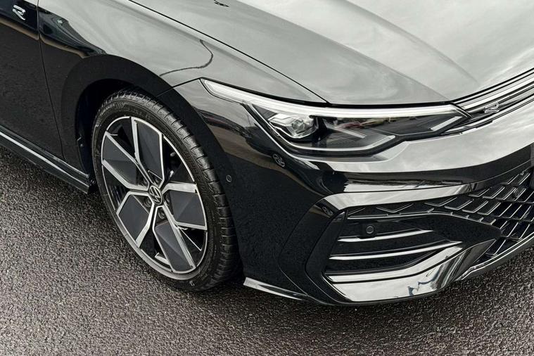 Activated carbon canister, Adaptive cruise control (ACC), Advanced driver attention and drowsiness monitor, Dynamic road sign display, Dynamic steering, E-Sim card for online connectivity, eCall emergency call system, Emergency assist, Lane keeping system Lane Assist, Multi-color Digital cockpit pro, selection of different info profile possible, Multifunction front facing camera for distance control, Navigation system, Oncoming vehicle braking when turning including swerve support, Preparation for light assist system, Speed limiter, Speedo, rev counter, electronic odometer, trip, service interval display, exterior temperature and fuel gauge, Traffic jam assist, Voice enhancer and voice control, Warning signal and warning light for front and rear seatbelts not fastened, We connect plus preparation, We connect preparation, Wireless app connect, Hybrid propulsion system, Petrol Particulate Filter, Start-stop system with battery regeneration (recuperation - energy recovery during braking), XDS electronic differential lock for improved traction and handling, 2 USB C ports in front, 2 USB charging sockets on the centre console in the rear charging capacity upto 45W, Comfort telephony + wireless charging, without wireless aerial connection, Digital radio reception (DAB), Diversity antenna for FM reception, Gaming platform via car app, Infotainment system with 12.9" display, Mobile phone interface with inductive charging feature, 3rd brake light, Auto dimming rear view mirror, Auto headlights, Automatic headlamp activation with Coming home and Leaving home feature, Body colored bumpers in R-Line style, Body colour door handles, Exterior mirrors convex on the left and aspherical on the right, Front and rear electric windows, Heat insulating windshield made of laminated glass, LED daytime running lights, Rain sensor, Rear exhaust tailpipe, Rear fog light on one side and reversing lights on both sides, Rear side wing doors, Rear windscreen washer and wiper with interval delay, Remote electrically foldable door mirrors, puddle lights and reverse activated passenger's door mirror, Volkswagen logo in front, illuminated lighting animation with wake up/goodbye scenario and illuminated door handles, Welcome light with surround lighting, 12V socket in front centre console, 12V socket in luggage compartment, 3 rear head restraints, 3 seat bench in 2nd row, Ambient lighting with 30 colour including LED light unit in front footwell with selectable light colour, Brushed stainless steel pedals, Carpet mats, front and rear, Chrome plated radiator grille inserts, air vent surrounds and light switch surrounds, Front centre armrest, Front seat lumbar support adjuster, Heated front seats, Integrated front head restraints, ISOFIX anchors for child seats on outer rear bench seats and on front passanger seat compatible for i-Size, Luggage compartment lighting, Manual height adjustable front seats, Plastic gear knob, Premium sports seats in front, Rear cupholder and loadthough, Sardegna cloth upholstery with front and outer rear seats Art Velour inner sides of bolsters, Single front passenger seat, Soul black instrument panel, Split folding backrest with centre armrest and unsplit rear seat bench, Storm grey roof lining, Sun visors with illuminated vanity mirrors, Black exterior Styling package with Matrix LED headlights - Golf, Winter package - Golf DSG Estate/Hatchback, 3 point height adj front seatbelts + pretensioners, 3 rear three point seatbelts, ABS, Autonomous emergency braking front assist with pedestrian and cyclist monitoring, Child locks on rear doors, Driver and front passenger airbag with front passenger airbag deactivation, Electronic parking brake with auto hold, ESC (Electronic Stability Control), Extended pedestrian protection measures, Hill start assist, Rear disc brakes, Two tone horn, Tyre pressure loss indicator, Volkswagen roadside assistance, Anti theft wheel bolts, Preparation for alcohol interlock, Decorative inserts carbon grey for dashboard and front door trim panels, 18" Leeds alloy wheels,