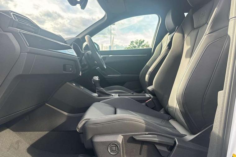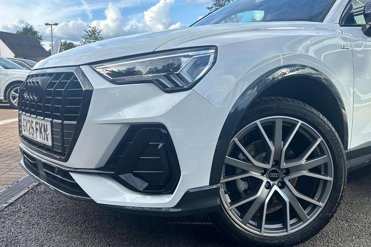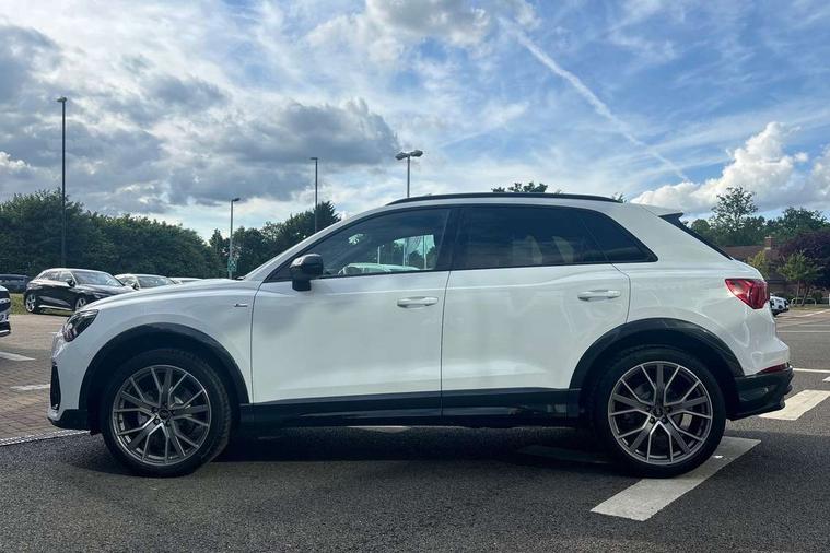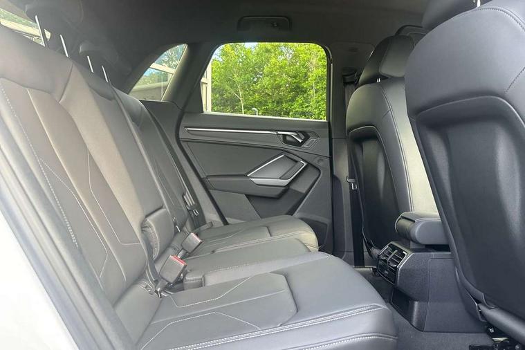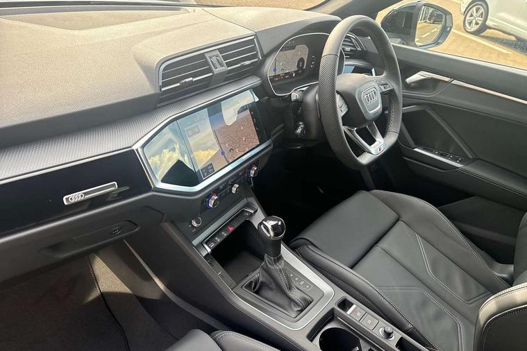 Amazon alexa Integration, Audi connect safety and service, Audi drive select, Audi lane departure warning, Audi Virtual Cockpit - 10.25" display, Bluetooth interface, Camera based traffic sign recognition, Distraction and Fatigue warning, Legal emergency call, MMI Navigation Plus with high resolution 10.1 inch touchscreen colour display, Power operated tailgate, Progressive steering, Service interval indicator, Smartphone interface includes wireless Apple carplay/Android Auto, Start stop system with recuperation, Voice control system with natural language interaction, Sports suspension, 2 USB-C ports with charge and data functions, 6 passive loudspeakers, DAB digital radio module, Acoustic windscreen, Audi Beam uses LEDs to project the Audi logo onto the ground as you exit your Q3, Auto dimming door mirrors, Auto dimming frameless rear view mirror, Black roof rails, Electrically folding, adjustable and heated door mirrors with integrated LED side indicators and kerb view function for passenger side, Front and rear electric windows, Front fog lights, Grille vertical bars in aluminium silver/Matt, High gloss black finish B and C pillars, LED Dynamic rear indicators, LED headlights with LED daytime running lights, LED rear lights, LED third brake light, Privacy glass dark tinted rear and rear-side windows (from B-pillar backwards), Rain and light sensors, Rear diffuser grille in grained matt black, Rear diffuser strip in matt anthracite black, Rear side wing doors, Rear wiper, S line bumpers in contrasting Manhattan grey, Variable front intermittent wipers, 12V socket in rear centre console, 3 seat bench in 2nd row, 40:20:40 folding with manual adjustment for 60:40 forwards/backwards position and backrest angle, Adjustable rear seat bench/backrest with centre armrest and cupholder, Black cloth headlining, Dual zone electronic climate control, Electric lumbar support, Front and rear black floor mats with contrast stitching in rock grey, Front and rear headrests, Front centre armrest, Height and reach adjustable steering wheel, Illuminated door sill trims with S logo, ISOFIX child seat mounting for front passenger with airbag deactivation and outer rear seat including top tether attachment point for outer rear seats, Manual front seats with height adjustment, Perforated leather gearknob, Single front passenger seat, Stainless steel luggage compartment sill finisher, Stainless steel pedals, Twin leather upholstery with front sport seats + S embossing, Black styling pack - Q3, Non smoking pack - Q3, 3x3 point rear seatbelts, 6 airbags - Driver, front passenger, curtain and side windows, Audi pre-sense front with pedestrain and cyclist recognition, Electrically operated child locks on rear doors, Electromechanical parking brake, Electronic stabilisation control including ABS, ASR and EDL, Front seatbelt reminder, Hill descent control, Hill hold assist, Pre sense basic, Seatbelt monitoring, Tyre pressure warning, Warning triangle and first aid kit, Anti theft wheel bolts, Immobiliser, Remote central locking, Thatcham approved category 1 anti theft alarm, Aluminium look interior elements, Detail dashboard around MMI touch colour display in glass look, black with surround in aluminium look, Leatherette door armrest, Piano black inlay,