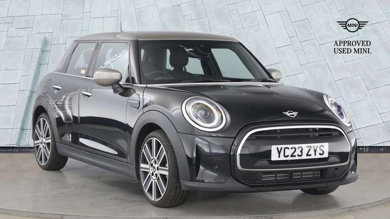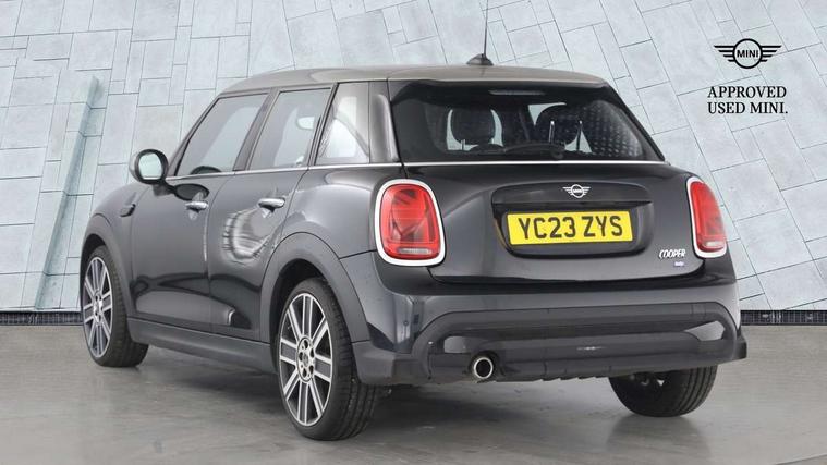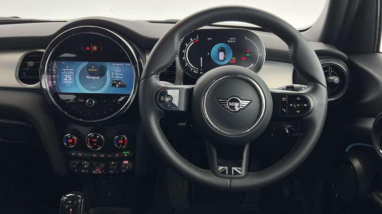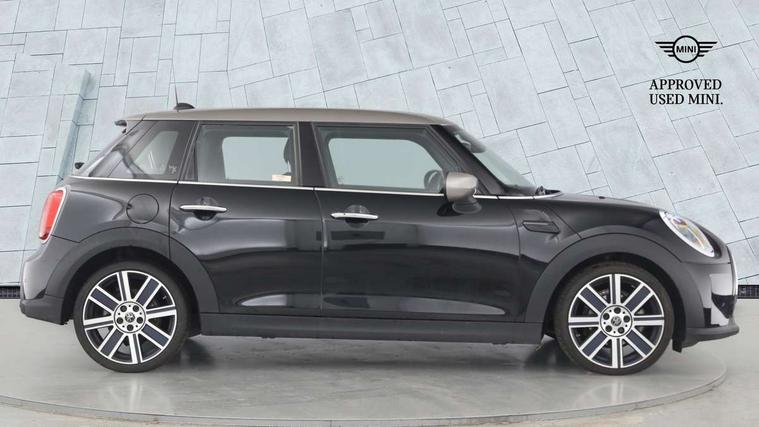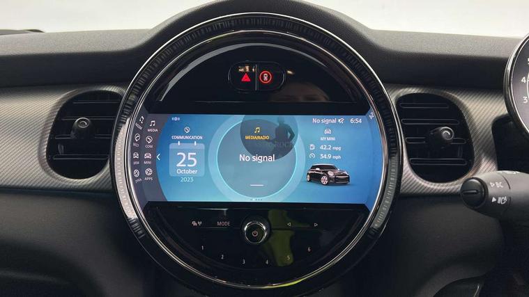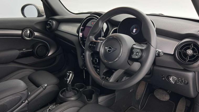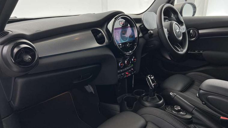 Apple CarPlay, Automatic start/stop function with brake energy recuperation, Compatible mobile phone bluetooth with audio streaming, Electro-mechanical speed dependant steering assistance, Flexible car sharing preparation, MINI Driving Modes - centre toggle switch to control driving setting (sport, mid and green), Mini E-call, MINI TeleServices, On board computer, Rear park distance control, Service interval indicator, Double Vanos system, Fully variable valve control, Gear change indicator display, High precision injection, Performance Control, Steptronic transmission with double clutch, 8.8" touchscreen with LED ring, FM tuner and DAB digital radio, 3rd brake light, Automatic headlight activation switch, Body colour fuel filler cap, Chrome line exterior - radiator grille bars, tailgate handle, lower front grille grating and rear central fog-light, Dynamic brake lights, Electric front+rear windows, Heated rear window, Heated windscreen washer jets, Metal door sill strips with MINI imprint, Model logo Cooper on right of tailgate, Rain sensor window wipers, Rear fog lights, Rear LED lights with union jack design, Rear side wing doors, Rear window wiper, Side scuttle panel with integrated indicator, Sun/heat protection glass, White indicator lenses, 12V Accessory socket in centre console, 3 seat bench in 2nd row, 4 lashing eyes in luggage compartment, 60/40 split folding rear seat, Anthracite headliner including grab handles and clothes hooks, Carbon black colour line - Knee roll and door armrest, Chrome interior highlights, Chrome line interior - air vents, gear lever base, door handles and speakers in doors, Cupholders, Front and rear head restraints, Front and rear isofix with front passenger airbag deactivation, Front and rear velour floor mats, Glove compartment, Height and length steering column adjustment, Interior lighting with 12 different colours across the dashboard, underneath door bezel with illuminated laser-engraved design on central display, Leatherette gearshift lever and handbrake gaiters, LED reading lights, vanity mirror lights, front foot well light and spotlight on front seats, Mechanical seat adjustment - forward/back & backrest for front seats and driver seat height adjust, MINI yours badge on exterior pillar, Multifunction steering wheel, Single front passenger seat, Storage compartments in doors, Sunvisors with vanity mirrors, Walknappa leather steering wheel with grey seam and MINI Yours badge on Piano Black lower steering wheel spoke, 3 point seatbelts on all five seats, 6 Airbags - front, side, head and seat belt tensioners, Anti-lock braking system (ABS), Child locks on rear doors, DSC - Dynamic Stability Control, Front and rear disc brakes, Hill start assist, Single tone fanfare horn, Tyre pressure monitoring system, Alarm system with tilt sensor, monitoring doors, bonnet interior and tailgate, Electronic vehicle immobiliser, Start/stop toggle with keyless go, Tool kit,