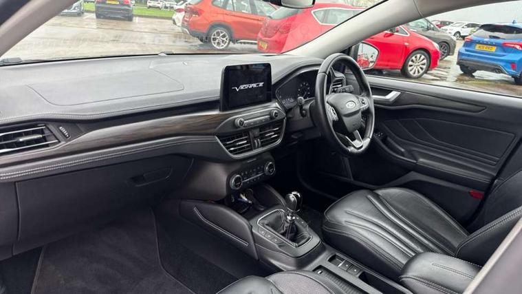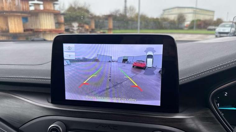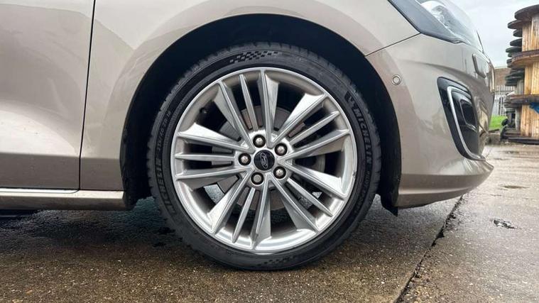 Active park assist system, Bluetooth system, Digital clock, Easy fuel capless refuelling system, Eco mode, Ford pass connect, Ford SYNC 3 nav system with DAB radio, 8" colour touch screen, voice control, app link, Apple car play/Android auto and 4.2" TFT coloured cluster, Front and rear parking sensors, Head up Display, Intelligent speed assist, Lane keeping aid with lane departure warning, PAS, Rear wide view camera, Selectable drive mode, Trip computer, Diesel particulate filter, 2 USB ports, Aux input, B&O Audio system with 360 degree sound, 10 speakers, 675 watts of total amplifier power and digital sound processor, 'Quickclear' heated windscreen/heated washer jets, Auto dimming rear view mirror, Auto headlamps (on/off), Automatic rain sensing wipers, Body coloured bumpers, Body coloured door handles, Body coloured electrically operated and heated door mirrors with side indicators, Door edge protectors, Electrically operated front and rear windows with one touch opening and closing, Front variable intermittent wipers with electric wash, Heated rear window, LED daytime running lamp, LED front fog lamps with cornering function, LED rear lamps, Polished twin tailpipe, Power folding door mirrors with puddle lights, Rear privacy glass, Roof rails, Tailgate wash/wipe, Unique door and instrument panel inserts, Vignale front grille and body styling, 3 spoke leather trimmed steering wheel with integrated audio controls, 6 way power adjustable driver seat, 60/40 split back and cushion rear seats with 2 height adjustable headrests, Ambient LED multi colour interior lighting, Auto fold rear seats, Centre console with sliding front armrest, Dual zone electronic air temperature control, Front passenger seat manual height and lumbar adjust, Front/rear floor mats, Heated front seats, Heated steering wheel, Height adjustable front headrests, Isofix child seat preparation, Leather gear knob, Leather upholstery, Load through ski hatch, Reach + rake adjustable steering column, Rear centre headrest, Soft console knee pads, ABS+Electronic Brake force Distribution, Auto hold function, Driver airbag, Electronic parking brake, Electronic stability control, Front and rear seatbelt reminder, Front inertia reel height adjustable seatbelts with pre-tensioners, Front passenger airbag, Front side airbags, Hill start assist, Passenger airbag deactivate switch, Post collision braking, Pre collision assist with autonomous emergency braking and pedestrian/cyclist detection, Side curtain airbags, Three rear inertia reel lap/diagonal seatbelts, Tyre pressure monitoring system, Ford keyfree system with Keyless entry and keyless start, MyKey system, Remote central locking & engine immobiliser, Thatcham category 1 alarm, 18" 5x3 spoke liquid aluminium alloy wheels, Mini steel spare wheel,