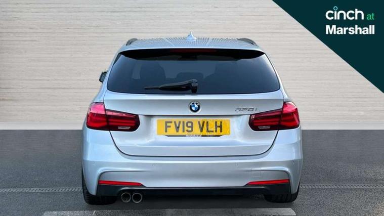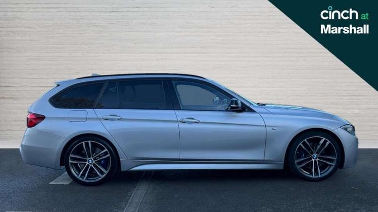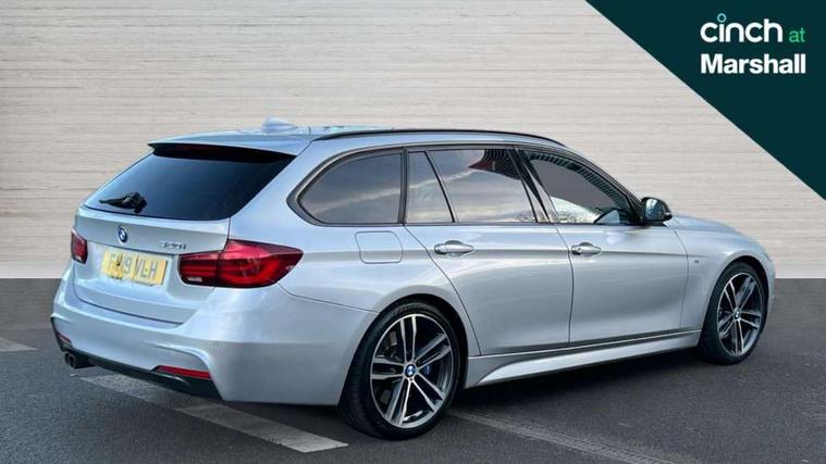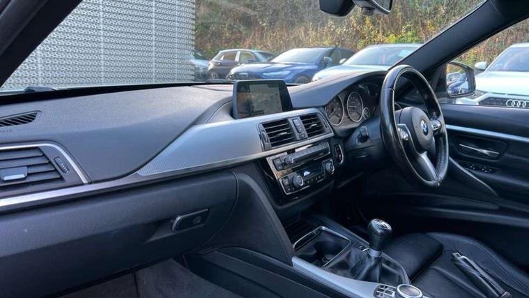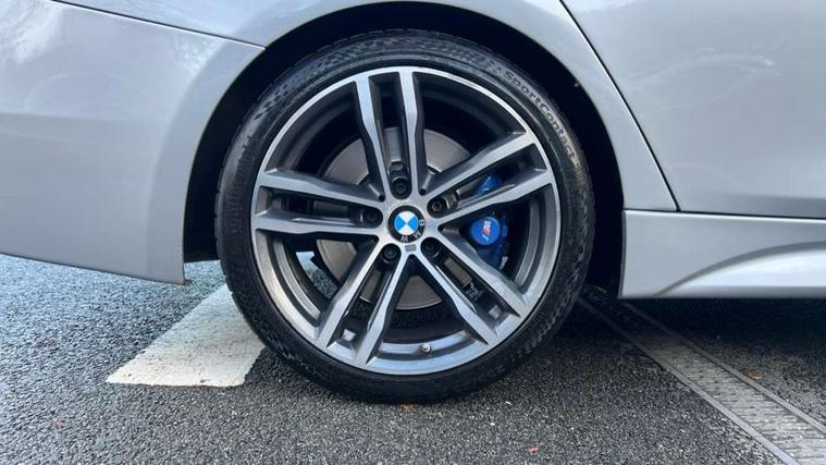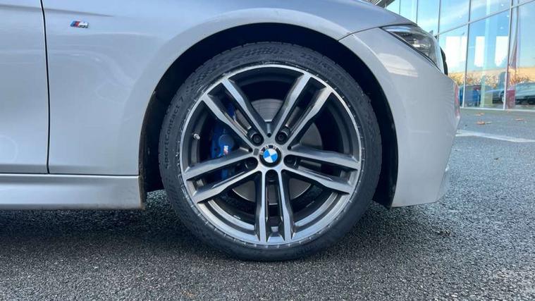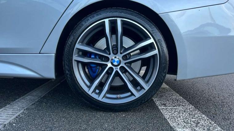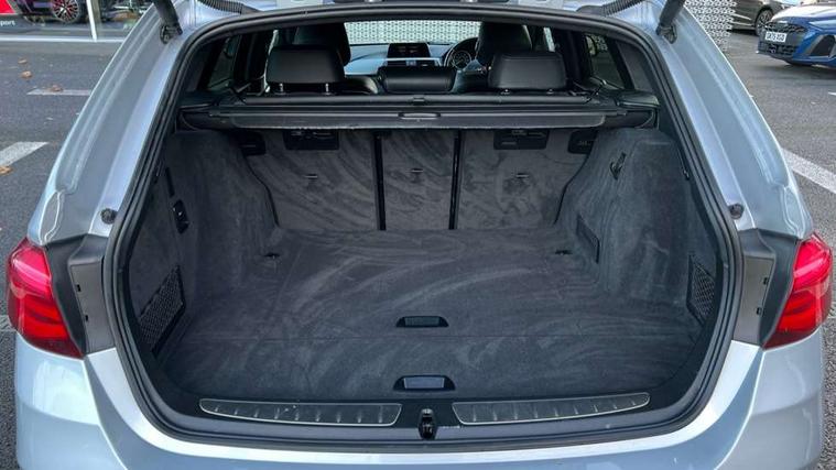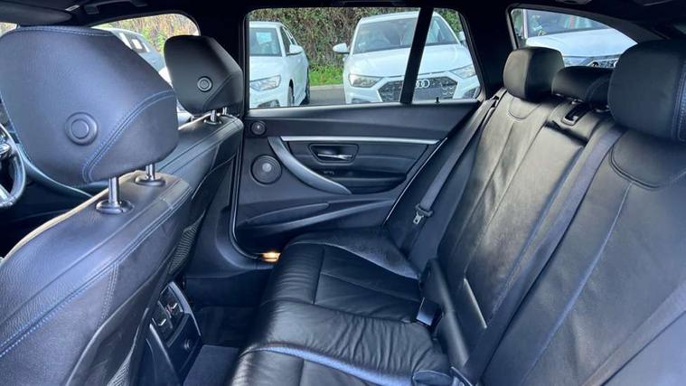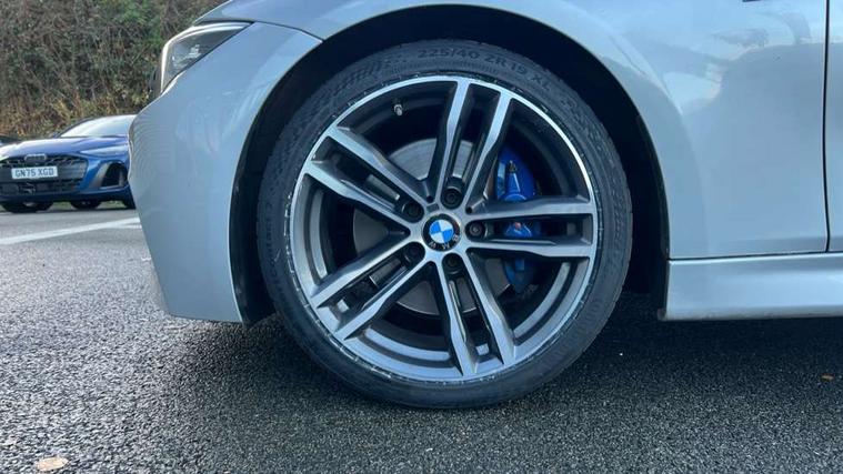 Automatic start/stop system, Automatic tailgate operation, Average speed gauge, BMW iDrive controller on centre console, BMW Online services, BMW remote services, BMW Teleservices, Brake force display, Brake pad wear indicator in front and rear, Check Control warning system for monitoring of lights and door/luggage compartment open warning, Controller and Control Display+6.5" monitor, Cruise control with brake function + speed limiter, Digital clock, Door/boot open warning light, Instrument cluster with speedometer with mph readout, tachometer, fuel gauge and oil temperature gauge, Lights on warning, M Sport instrument cluster, Odometer, Oil sensor for level and grade, On board computer, On board diagnostics, Operation warning of all exterior lights, Optimum shift indicator, Outside temperature display, Pesonal profile, Real time traffic information, Service interval indicator, Trip computer, Battery cut-out switch, Drive Performance Control, Electronic differential lock, Multi-link rear suspension, BMW professional radio/CD/MP3, CD player, DAB Digital radio, Harman/Kardon loud speaker system, 2 speed adjustable intermittent wipers with wash/wipe function, Active air flap radiator grille, Auto dimming rear view mirror, Automatic headlight beam throw control, Body colour bumpers, Body colour door handles, Body colour roof mouldings, Clear indicator lenses, Dark chrome exhaust tailpipe, Dark headlamp surround, Darkened rear light clusters, Direction indicator, side repeaters, integrated in exterior mirrors, Door sill finisher with M designation, Dynamic brake lights, Electric front and rear windows with one touch/convenient open/close function, Front and rear bumper system with replaceable deformation elements, Green tinted heat insulating glass, Heated rear window with automatic switch off, Heated windscreen washer jets, High beam assistant, High gloss black air inlets, High gloss black finish B pillar, High gloss black rear bumper insert, High gloss shadow line, High level third brake light, Independent opening for tailgate window, LED fog lights, LED rear lights, LED welcome home lights, M aerodynamic body styling, Matt black exterior trim, Rain sensor + automatic driving lights control, Rear wash/wipe, Shark fin roof aerial, Sun protection glass, Visible VIN plate, 12V sockets in front centre console and passenger footwell, 3 rear seat head restraints, 4 foldable grab handles - rear with clothes hook, 4 lashing points on luggage floor, 40:20:40 split folding rear bench seat, Anthracite headlining, Automatic interior light soft on/soft off system, Dual zone automatic air conditioning, Folding front centre armrest + storage, Front and rear door armrests, Front and rear velour floor mats, Front door storage bins with bottle holder, Front sports seats with electric side bolster adjustment, Glovebox light, Glovebox opener with chrome spider, Height adjustable front headrests, Indirect front interior illumination - soft-light function, Leather gear knob, Leather gear selector lever handle, Leather handbrake lever, Luggage compartment lighting, Reach + rake adjustable steering column, Rear centre armrest with 2 cupholders, Rear child seat isofix attachment with passenger airbag deactivation, Retractable luggage cover, Separation net, Storage compartment in rear centre console, front and rear door trims and under luggage compartment, Sunvisors with illuminated vanity mirrors and ticket pocket, Through load system, Toolkit located in luggage compartment, Two front cup holders with a sliding lid, Extended lighting package - 3 Series, Extended storage pack - 3 Series Touring/Saloon, High gloss shadow line pack - 3 Series, Interior lights pack - 3 Series Touring, Luggage compartment storage pack - 3 Series Touring, 3 point seatbelts on all seats (2 front, 3 rear), front pyrotechnic belt tensioners and belt force limiters, rear coded belt buckles, ABS, Automatic Stability Control (ASC), BMW emergency call, Brake drying, Brake energy regeneration, Braking pre-tensioning, Cornering brake control (CBC), Crash sensor, Driver and front passenger front and side airbags with passenger deactivation and ITS front and rear head airbags, DSC+, Dynamic brake control, Dynamic Traction Control - DTC, Hill start assist, M Sport braking system, Rear child proof door locks, Seatbelt security check for driver seat, Side impact protection, Twin horns, Tyre pressure monitor, Ventilated front and rear disc brakes, Warning triangle and first aid kit, Alarm system (Thatcham 1) with remote control and electronic engine immobiliser, Automatic drive away locking facility, Central locking switch for all doors, fuel filler cap and luggage compartment, Remote control including integrated key with blue insert, Start/stop button with Comfort Go keyless engine start and auto Start/stop deactivation button, Air-conditioning and radio control panel with Chrome highlight, 19" M double spoke alloy wheels style in bicolour orbit grey - style 704M, Low rolling resistance tyres, Run-flat tyres,