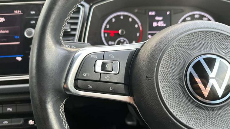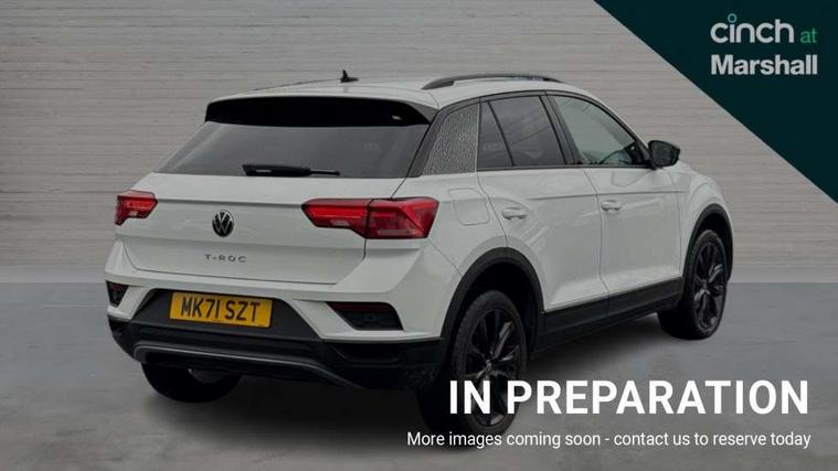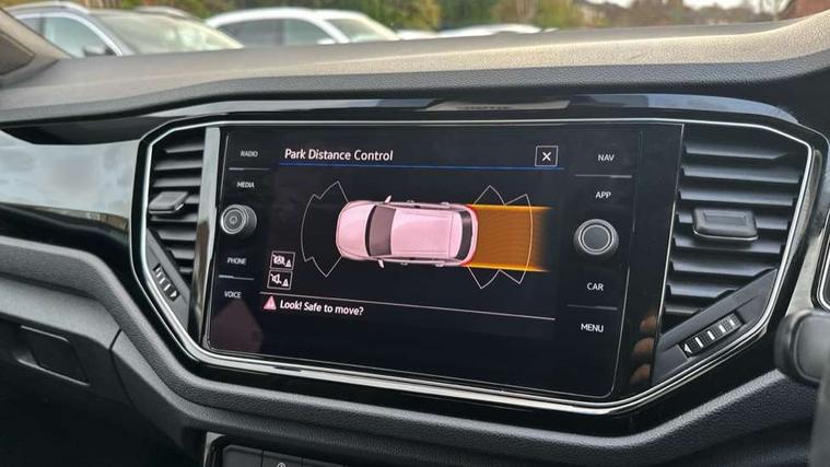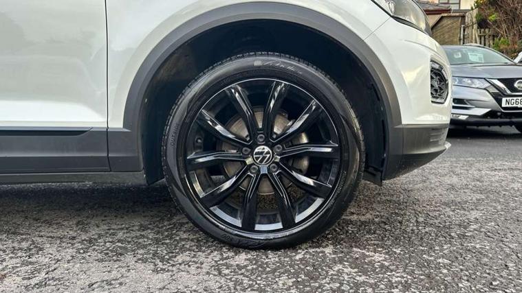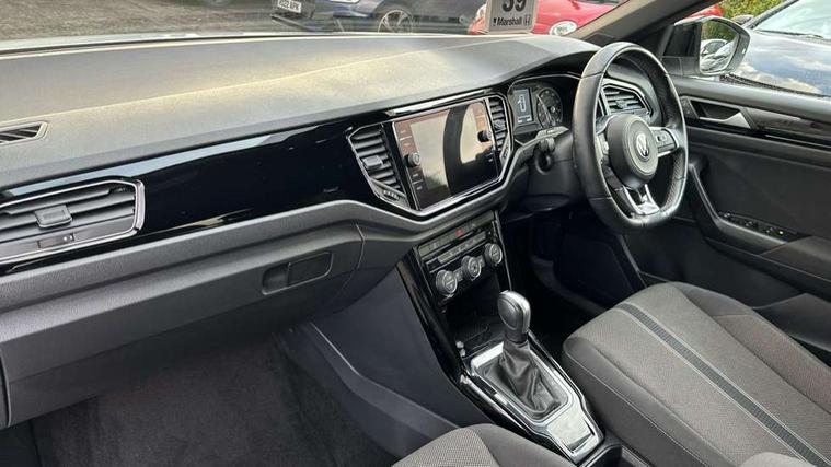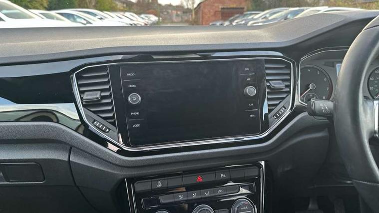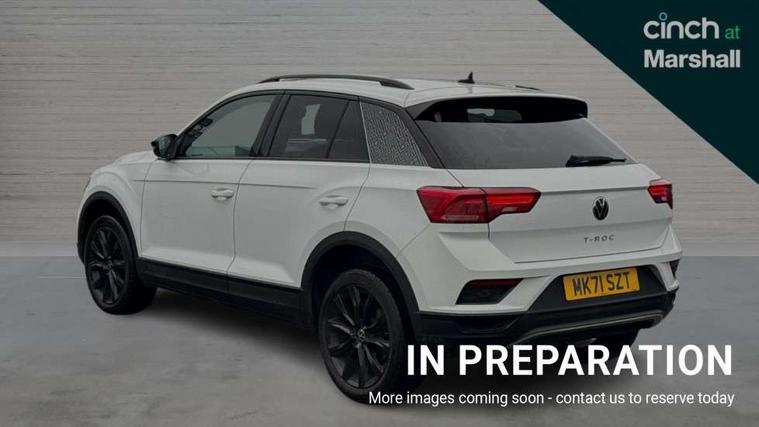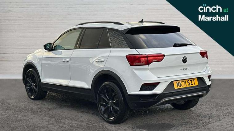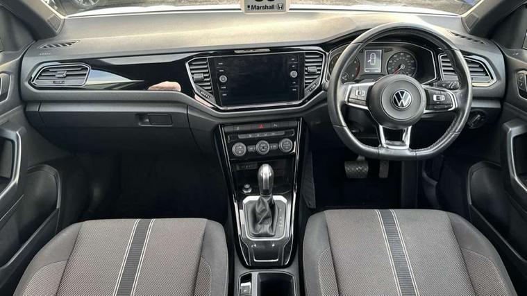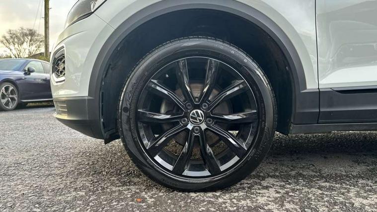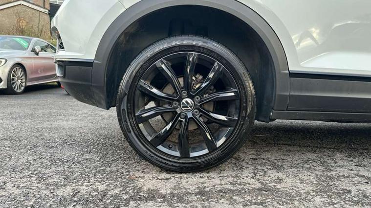 'Lights On' Reminder warning buzzer, Adaptive cruise control, Bluetooth telephone and audio connection for compatible devices, Car information display, Driver tips and journey analysis, Emergency call service, Lane assist with warning text instrument cluster, Modified key software - reduce switch off time for key status change to Long no motion, Multifunction camera, Multifunction computer with visual gear change recommendation for fuel consumption, Service interval indicator, Think blue trainer driver tips and journey analysis, Warning sound and light for doors and tailgate open, Warning sound and light for front seatbelts unfastened, Wireless app connect for apple carPlay, Battery regeneration during braking, Start/stop function with battery regeneration, DAB Digital radio, Diversity antenna for FM reception, Multi device interface (MDI) with USB connection, Music playback - MP3, WMA and AAC files, Premium USB cable in choice of either Apple or Android smartphone compatibility, SD card slot, Simultaneous pairing of 2 compatible mobile devices, Single CD player, glovebox mounted, SMS functionality - read, compose and send SMS messages using touch-screen display, Storage compartment with longitudinal and height adjustable in armrest and two rear air vents, Title and cover art display, USB-C Interface and USB charging socket, Auto dimming interior rear view mirror, Automatic coming/leaving home lighting function and daytime running lights, Automatic hazard lights activation under emergency braking, Black grained lower door protectors, Black grained wheel arches, Black roof rails, Body colour door handles, Body colour sports bumpers with silver metallic underbody fascia, Body coloured bumpers and radiator grille with chrome trim and front fog lamps with chrome bezel, Chrome trim on upper and lower radiator grille, Dusk sensor, Electrically foldable, adjustable and heated door mirrors with puddle lights and reverse activated kerb-view adjustment on passenger's door mirror, Exhaust tailpipes in black, External USB type C socket and charging sockets, Front and rear electric windows, Front windscreen wiper with intermittent wipe and 4 position delay, Fully galvanised body, Heated rear window, High level 3rd brake light, LED headlamps with automatic range adjustment and unique signature LED separate daytime running lights, LED rear number plate lights, LED tail lamp rear comination lamps, Privacy glass, Rain sensor, Rear tinted glass from B-pillar backwards approx 65% tinted, Rear wash/wipe with intermittent wipe setting, Trim strips on grille and vehicle side, Volkswagen roundel, 12V socket in centre console storage area, 3 rear head restraints, 4 load lashing points in luggage compartment, Black roof lining, Climate control - 2 zone electronic air conditioning with automatic air recirculation and allergy filter, Door and side trim panel, Drawer under drivers seat, Front centre armrest, Front cupholders x 2, Front seat back storage pockets, Glovebox, Height adjustable front seats, Height/reach adjust steering wheel, Instrument lighting, white adjustable panel illumination, Interior light in footwell, Isofix easy fit child seat preparation for 2 outer rear seats, Leather gearshift knob, Leather multi function sport steering wheel with gear change selection via paddle shift on steering wheel, LED interior light with switch off delay/dimmer and 2 front/rear LED reading lights, Load through provision with single cup holder when folded down, Luggage compartment cover, removable, Luggage compartment lighting, Split folding rear seat backrests with centre armrest, Storage compartment in left and right luggage area, Storage compartment in rear doors, Storage compartments in driver and front passenger doors, Sunvisors with illuminated vanity mirrors, White ambient lighting, Black decal on C-pillar pack - T-Roc, 3 rear three point seatbelts, ABS, Curtain airbags, Driver and front passenger safety-optimised head restraints, Drivers and front passengers airbags with passengers deactivation switch, Drivers seatbelt reminder, Electronic parking brake with auto hold, Electronic stability control (ESC) includes ASR, EDL, EDTC and trailer stabilisation function, Front assist with city emergency braking and pedestrian monitoring, Front seat side impact airbags, Predictive pedestrian protection, Rigid safety cell with front and rear crumple zones, Single tone horn, Three point height adjust front seatbelts + pretensioners, Tyre pressure loss indicator, Ventilated front and rear disc brakes, Volkswagen roadside assistance, Alarm with remote central locking and interior protection, Electronic engine immobiliser, Remote central locking with SAFELOCK, radio remote control with 2 remote control folding keys, Black decorative trims, Piano black decorative inserts in dash, centre console and door panel, 18" Arlo black diamond turned surface alloy wheels with low rolling resistance tyres and anti theft wheel bolts,