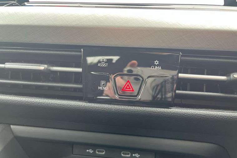 Adaptive cruise control (ACC) with speed limiter and front assist (reacting to vehicles pedestrians and cyclists), Car2X communication, Digital cockpit pro - 10.25" high resolution TFT dash display screen with customizable menus and information, Driver alert system, Dynamic road sign display, eCall - Emergency call service for SOS calls to emergency response, Lane assist, Mobile phone interface with wireless inductive charging function, Multifunction camera for distance control, Power assisted speed sensitive steering, Speedo, rev counter, electronic odometer, trip, service interval display, exterior temperature and fuel gauge, Start/Stop function, USB-C ports in the front and rear centre console with increased charging performance, Warning buzzer and light for front seatbelts unfastened, Wireless app connect, Petrol Particulate Filter, XDS electronic differential lock for improved traction and handling, Premium USB cable in choice of either Apple or Android smartphone compatibility, Ambient lighting, exterior illuminated styling elements at the sides, Auto dimming rear view mirror, Automatic headlamp activation with Coming home and Leaving home feature, Automatic headlights, Body colour bumpers, Body colour door handles, Body colour door mirrors with integrated indicators, Body colour rear roof spoiler, Electrically heated and adjustable door mirrors with memory feature, Front and rear electric windows, Heat insulating glass windscreen, Heated rear windscreen, High level 3rd brake light, Highway light, LED License plate illumination, Rain sensor, Rear fog light on one side and reversing lights on both sides, Rear lights incorporating LED technology, Rear side wing doors, Rear windscreen washer and wiper with interval delay, Welcome light, 10 colour interior ambient lighting, 12V socket in front centre console, 12V socket in luggage compartment, 3 rear head restraints, 3 seat bench in 2nd row, Drivers and front passengers sun visors with vanity mirrors, Front centre armrest with storage compartment, Front cupholders x 2, Front passenger seat, Front passenger seat lumbar adjustment, Front reading lights x 2 incorporating LED technology, Glovebox, Height adjustable passenger seat, Height and reach adjustable steering wheel, Isofix child seat preparation for 2 rear child seats and front passenger seat, Luggage compartment lighting, Maze cloth upholstery, Removable luggage compartment cover, Soul black instrument panel, Split folding backrest with centre armrest and unsplit rear seat bench, Storm grey roof lining in recycled material, Woven fabric storage compartments in front and rear doors, 3 point height adj front seatbelts + pretensioners, 3 rear three point seatbelts, ABS, Child locks on rear doors, Driver and front passenger airbag with front passenger airbag deactivation, Drivers and front passengers safety optimised head restraints, Electronic parking brake with auto hold, ESC (Electronic Stability Control), Extended pedestrian protection measures, Front centre airbag, Front disc brakes, Front side airbags with curtain airbags, Rear disc brakes, Two tone horn, Tyre pressure monitoring system, Alarm with interior protection and deactivation via infotainment system, Electronic engine immobiliser, High gloss black centre console, Silver silk decorative inserts in dash and front door panels,