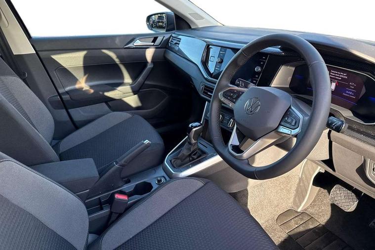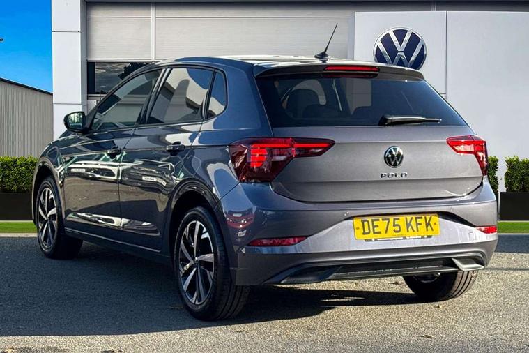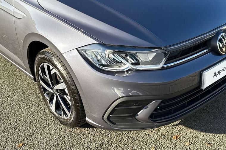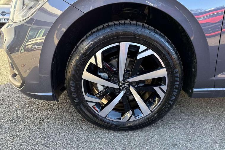 Advanced driver attention and drowsiness monitor, Bluetooth mobile phone interface, Dynamic road sign display, Emergency call service, Mobile phone preparation with inductive charging function, Multifunction front facing camera for distance control, Power assisted speed sensitive steering, Predictive adaptive cruise control without follow-to-stop and speed limiter, Preparation for navigation system with media and internet package, Preparation for We connect and We connect plus, Rear view camera, Speedo and rev counter, electronic odometer, trip, service interval display and exterior temperature gauge, Standard rear axle, Travel Assist - Lane keeping system and traffic jam assist, Travel assist including emergency assist, Trip computer, Warning signal and warning light for front and rear seatbelts not fastened, Washer fluid level indicator, Wireless app connect, Front wheel drive, Rear shock absorpion, Start-stop system with battery regeneration (recuperation - energy recovery during braking), DAB Digital radio, Diversity antenna for FM reception, Automatic dimming interior rear view mirror, Automatic headlight control with LED separate daytime running lights with coming/leaving home function, Body colour bumpers with chrome inserts, Body colour door handles, Body colour door mirrors, Electric front windows, Engine badge deletion, Headlight range adjustment, Heat insulating and laminated safety glass windshield, LED Headlights, LED rear combination lamps, Power folding adjustable/heated exterior mirrors and front passenger exterior mirror lowering function, Rain sensor, Rear electric windows, Rear fog light, Rear side wing doors, Rear tinted glass from B-pillar backwards approx 65% tinted, Rear windscreen washer and wiper with interval delay, Third brake light, 12V power socket in centre console, 2 front and 2 rear reading lights with switch off delay and dimmer, 2 USB-C ports in the front, 2 USB-C charging sockets on the center console in the rear, 3 rear head restraints, 60/40 split folding rear seat and rear seat bench not split, Ceramique roof lining, Chrome plated radiator grille inserts, air vent surrounds and light switch surrounds, Door and side trim panel, Driver and front passenger seat height adjustment, Driver/passenger sunvisors with illuminated vanity mirrors, Front centre armrest, Front seat backrest storage pockets, Front standard seats, Handbrake lever handle in leather, Hartley/Thomas cloth upholstery, Headliner in recycled material, Isofix child seat preparation easy-fit (for two outer rear seats, and front passenger seat) compatible with I-size, Leather trimmed gear knob, Luggage compartment cover, Luggage compartment lighting, Removable luggage compartment floor, Single front passenger seat, Standard climatic zones, Standard pedal cluster, Three spoke leather wrapped multifunction steering wheel with shifting paddles, Light and vision pack - Polo, 3 point height adj front seatbelts + pretensioners, 3 point seat belt for centre rear seat, 3 point seatbelts, outer rear with ECE lable, ABS, Driver and front passenger airbag with front passenger airbag deactivation, Drivers and front passengers safety optimised head restraints, ESC (Electronic stability control) + EDL (Electronic Differntial lock) and ASR (Traction control), Extended and predictive pedestrian/ cyclist protection, Front assist with autonomous emergency braking (for Adaptive Cruise Control ACC up to 130 mph), Front curtain and side airbags with center airbag, Front disc brakes, Hill hold control, Manual child lock in rear doors, Rear drum brakes, Single tone horn, Tyre pressure loss indicator, Alarm with interior protection, Anti-theft alarm system with interior monitoring, backup horn, and towing protection, Anti-theft wheel bolts, Electronic engine immobiliser, Lava stone black gloss/matt decorative inserts in dash and front door panels, 16" Torsby alloy wheels, Low rolling resistance tyres,