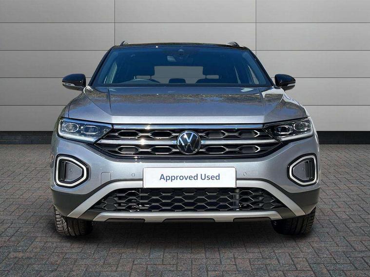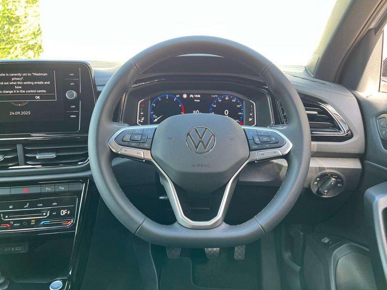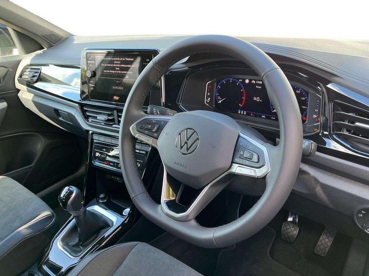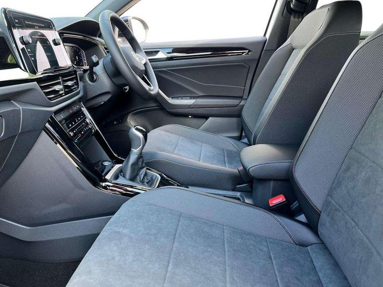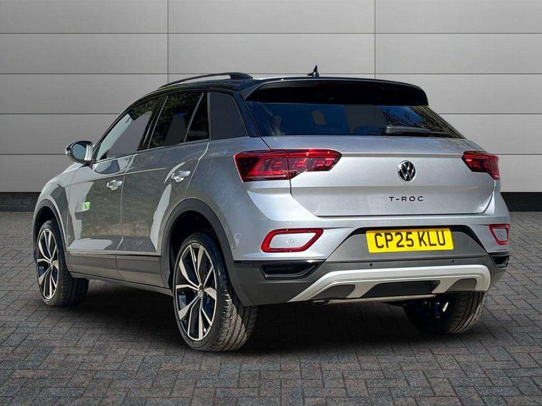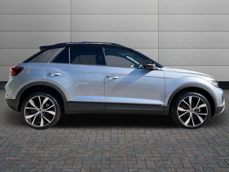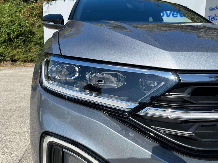 10.25" Digital cockpit pro, Advanced driver attention and drowsiness monitor, Dynamic road sign display, Emergency call service, Lane keeping system Lane Assist, Mobile phone interface, Modified key software - reduce switch off time for key status change to Long no motion, Online services, Park assist including front and rear parking sensors, Power assisted speed sensitive steering, Rear view camera, Service interval indicator, Tailgate/trunk lid release from outside, Think blue trainer driver tips and journey analysis, Warning sound and light for front seatbelts unfastened, Wireless app connect, Battery regeneration during braking, Start/stop function with battery regeneration, DAB Digital radio, Diversity antenna for FM reception, Music playback - MP3, WMA and AAC files, Premium USB cable in choice of either Apple or Android smartphone compatibility, SD card slot, Simultaneous pairing of 2 compatible mobile devices, Title and cover art display, We Connect and We Connect Plus functionality, Adhesive film in carbon look on the C-pillars, Advanced dynamic light assist for LED matrix headlights, Auto dimming interior rear view mirror, Automatic hazard lights activation under emergency braking, Black roof rails, Body colour sports bumpers with silver metallic underbody fascia, Body coloured exterior mirror housings and door handles, Dynamic cornering light, Dynamic headlight range control with self adjusting whilst driving, Electrically adjustable and heated door mirrors, Extended roof spoiler, Exterior ambient lighting, Exterior mirrors aspherical on driver side, convex on front passenger side, External USB type C socket and charging sockets, Front windscreen wiper with intermittent wipe and 4 position delay, Heated rear window, Illuminated front grille, IQ LED matrix headlights, LED 3rd brake light, LED rear number plate lights, LED rear tail lights with dynamic turn signal, LED separate daytime running light, Light mode for poor weather, rain, fog or snow, Power windows with comfort operation and circuit breaker, Privacy glass for rear side windows and rear window, Rain sensor, Rear exhaust tailpipe, Rear fog light on one side and reversing lights on both sides, Rear side wing doors, Rear wash/wipe with intermittent wipe setting, Remote electrically foldable door mirrors, puddle lights and reverse activated passenger's door mirror, Tilting and sliding panoramic sunroof with rear panoramic sunroof, 12V power socket in centre console, 3 rear head restraints, 3 seat bench in 2nd row, 4 load lashing points in luggage compartment, Air care climatronic air conditoning system with active combination filter and 2-zone temperature control, Black roof lining, Chrome plated radiator grille inserts, air vent surrounds and light switch surrounds, Door and side trim panel with leatherette insert, Drawer under drivers seat, Front + rear carpet mats, Front centre armrest, Front comfort sports seats, Front cupholders x 2, Front footwell illumination, Front seat back storage pockets, Glove compartment door with light, Instrument lighting, white adjustable panel illumination, Interior ambient lighting and surround lighting, Interior light delay, Isofix child seat preparation, Leather gearshift handle, LED interior light with switch off delay/dimmer and 2 front/rear LED reading lights, Load-through provision with cup holder when folded down ('Unsplit rear seat bench, split folding backrest, with centre armrest), Luggage compartment lighting, Non-folding front passenger seat backrest, Single front passenger seat, Storage compartment in left and right luggage area, Storage compartment in rear doors, Storage compartments in driver and front passenger doors, Sunvisors with illuminated vanity mirrors, Variable boot floor, height adjustable and removable, Black design pack - T-Roc style design, Driver assistance pack without proactive passenger protection - T-Roc, Easy open package with safelock - T-Roc, 3 point height adj front seatbelts + pretensioners, 3 point seatbelts in outer rear with ECE label, ABS, Child locks on rear doors, City emergency braking and pedestrian monitoring, Driver and front passenger airbag with front passenger airbag deactivation, Driver and front passenger safety-optimised head restraints, Drivers seatbelt reminder, Electronic parking brake, Electronic Stability Control (ESC) inc EDL (Electronic Differential Lock) and ASR (Traction Control), Front and rear passengers curtain airbag system including front side airbags, Predictive pedestrian protection, Rear disc brakes, Two tone horn, Tyre pressure loss indicator, Volkswagen roadside assistance, Black decorative trims, Piano black decorative inserts in dashboard and front door trim panels, Tool kit, Trims for alloy wheels, Tyre mobility kit including compressor and sealing foam,