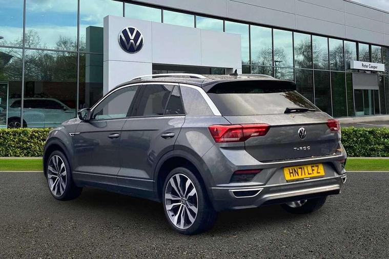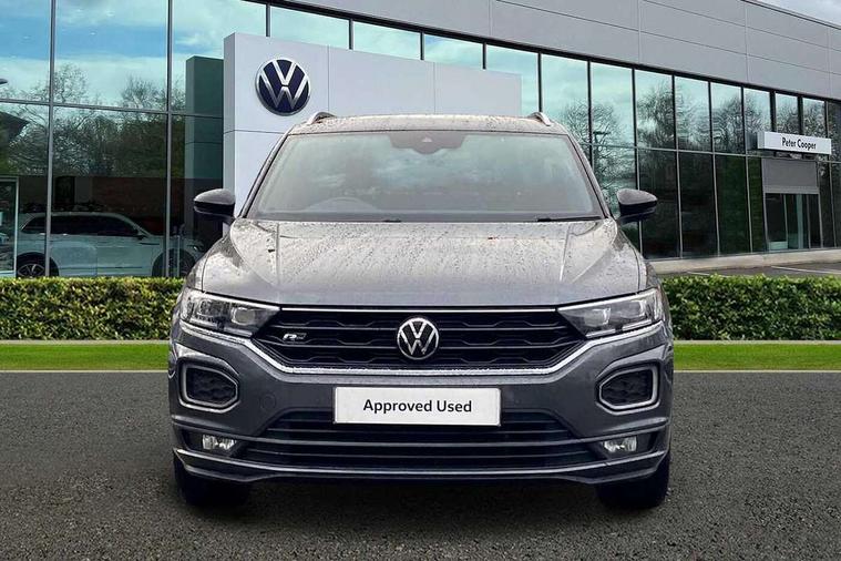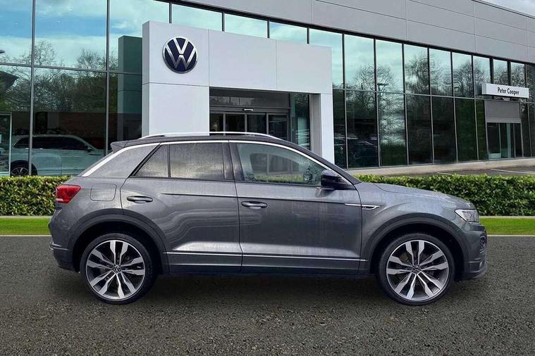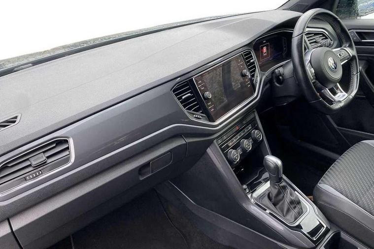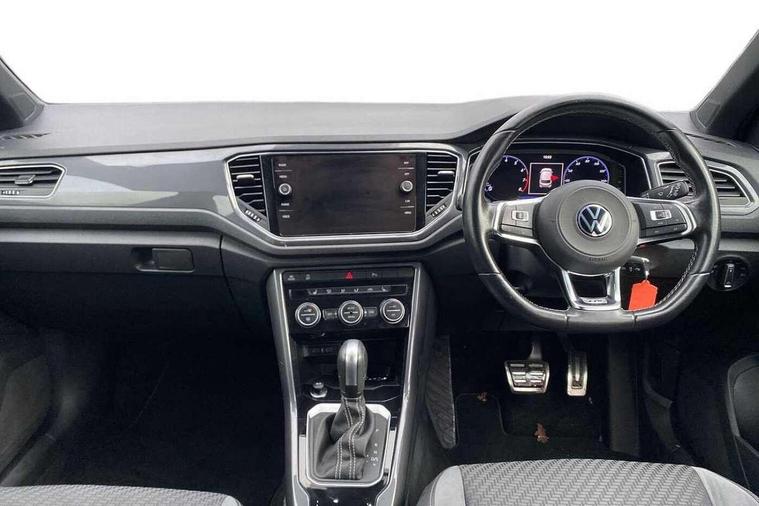 'Lights On' Reminder warning buzzer, Adaptive cruise control, Bluetooth telephone and audio connection for compatible devices, Car information display, Digital Cockpit Pro - Active info display, Driver alert system with audible and visual fatigue detection system, Driver tips and journey analysis, Emergency call service, Lane assist with warning text instrument cluster, Modified key software - reduce switch off time for key status change to Long no motion, Multifunction camera, Multifunction computer with visual gear change recommendation for fuel consumption, Navigation system discover media including streaming and internet, Service interval indicator, Think blue trainer driver tips and journey analysis, Traffic sign recognition, Voice activation, Warning sound and light for front seatbelts unfastened, Wireless app connect for apple carPlay, Battery regeneration during braking, Rear shock absorption for sports version, Start/stop function with battery regeneration, DAB Digital radio, Disk brakes in front, Diversity antenna for FM reception, Music playback - MP3, WMA and AAC files, Premium USB cable in choice of either Apple or Android smartphone compatibility, SD card slot, Simultaneous pairing of 2 compatible mobile devices, SMS functionality - read, compose and send SMS messages using touch-screen display, Storage compartment with longitudinal and height adjustable in armrest and two rear air vents, Three route options - Fast, Short, Eco, Title and cover art display, USB-C Interface and USB charging socket, Auto dimming interior rear view mirror, Automatic coming/leaving home lighting function and daytime running lights, Automatic hazard lights activation under emergency braking, Black grained lower door protectors, Body colored door lower parts, Body colour door handles, Body colour rear roof spoiler, Chrome effect left and right trapezoid exhaust tailpipe fascia surround, Chrome plated moldings, Chrome trim on upper and lower radiator grille, Dusk sensor, Dynamic headlight range control with self adjusting whilst driving, Electrically foldable, adjustable and heated door mirrors with puddle lights and reverse activated kerb-view adjustment on passenger's door mirror, External USB type C socket and charging sockets, Front and rear electric windows, Front fog lights with static cornering function, Front windscreen wiper with intermittent wipe and 4 position delay, Fully galvanised body, Heated rear window, Heated windscreen washer jets, High level 3rd brake light, LED darkened rear light clusters, LED headlamps with automatic range adjustment and unique signature LED separate daytime running lights, LED rear number plate lights, LED tail lamp rear comination lamps, Privacy glass, R-Line design body coloured bumpers, Rain sensor, Rear tinted glass from B-pillar backwards approx 65% tinted, Rear wash/wipe with intermittent wipe setting, Silver anodised roof rails, Volkswagen roundel, 12V socket in centre console storage area, 3 rear head restraints, 4 load lashing points in luggage compartment, Aluminium pedals, Black roof lining and sun visors, Branded points of interest, Carbon flag cloth upholstery, Chrome plated radiator grille inserts, air vent surrounds and light switch surrounds, Climate control - 2 zone electronic air conditioning with automatic air recirculation and allergy filter, Door and side trim panel, Door and side trim panel in foam film, insert in leatherette, Drawer under drivers seat, Front + rear carpet mats, Front centre armrest, Front cupholders x 2, Front seat back storage pockets, Front sports seats with R-Line logo on seat backrest, Glovebox, Heated front seats, Height adjustable front seats, Height/reach adjust steering wheel, Instrument lighting, white adjustable panel illumination, Interior light delay, Interior light in footwell, Isofix easy fit child seat preparation for 2 outer rear seats, Leather gearshift knob, Leather multi function sport steering wheel with gear change selection via paddle shift on steering wheel, LED interior light with switch off delay/dimmer and 2 front/rear LED reading lights, Load through provision with single cup holder when folded down, Luggage compartment cover, removable, Luggage compartment lighting, R Line badge, Scuff plates in door apertures, Split folding rear seat backrests with centre armrest, Stainless steel pedals, Storage compartment in left and right luggage area, Storage compartment in rear doors, Storage compartments in driver and front passenger doors, Sunvisors with illuminated vanity mirrors, Unique R Line door sill protectors, White ambient lighting, R line styling pack - T-Roc, Winter pack - T-Roc, 3 rear three point seatbelts, ABS, Curtain airbags, Driver and front passenger safety-optimised head restraints, Drivers and front passengers airbags with passengers deactivation switch, Drivers seatbelt reminder, Electronic parking brake with auto hold, Electronic stability control (ESC) includes ASR, EDL, EDTC and trailer stabilisation function, Front assist with city emergency braking and pedestrian monitoring, Front seat side impact airbags, Hill start assist, Predictive pedestrian protection, Rigid safety cell with front and rear crumple zones, Single tone horn, Three point height adjust front seatbelts + pretensioners, Tyre pressure loss indicator, Ventilated front and rear disc brakes, Volkswagen roadside assistance, Alarm with remote central locking and interior protection, Electronic engine immobiliser, Remote central locking with SAFELOCK, radio remote control with 2 remote control folding keys, Shadow grey decorative inserts in dash, centre console and door panel, 19" Suzuka alloy wheels with low rolling resistance tyres and anti wheel bolts,