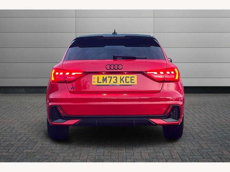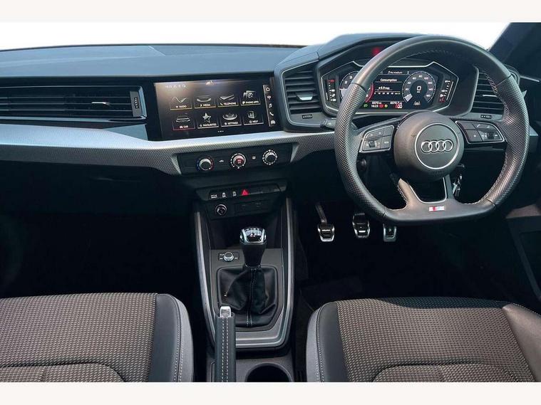 10.25" Digital instrument cluster display classis style instrument dials + speed, odometer, time, outside temperature, telephone menu + fuel level warning, Audi drive select - power steering assistance + engine, Audi smartphone interface with connect compatible smartphone via USB directly MMI display + Nav, music, third party apps controlled via MMI controller, Automatic start/stop system, Bluetooth interface, Cruise control, Driver's information system, Electromechanical power steering, Emergency e-call, Lane departure warning system, Rear parking sensor, Service interval indicator, Speed limiter, Voice control system, Washer fluid level indicator, Sports suspension, 2 x USB type C connection points, 6 passive loudspeakers, DAB Digital radio, MMI radio plus with 10.1" colour MMI display screen and MMI touch, Auto dimming rear view mirror, Black side skirts, Body coloured bumpers, Door sill trims with aluminium inlays and logo, Electric front and rear windows, Electrically adjustable, heated, folding door mirrors with integrated LED side indicator, Front side air inlets in grained matt black and C frame in anthracite black, Front wing badges, Heat insulating glass windscreen and side windows, Heated rear windscreen, High level LED brake light, LED headlights with LED rear lights + dynamic rear indicators + headlight adjustment and high beam, turning light + LED daytime running lights, Privacy glass, Rain and light sensors, Rear fog lights, Rear side wing doors, Rear wiper, Side front spoiler lips in grained matt black, 12V socket in centre console with two cup holders, 3 rear seats with headrests, 3 seat bench in 2nd row, 3 spoke flat bottomed multi-function plus leather steering wheel with S badging, grips in preforated leather and contrast stitching, 40:60 Split folding rear seat or folded fully, Black cloth headlining, Driver and passenger seat with manual height adjust with forward and backwards adjustment, Front and rear black floor mats with contrast stitching in fine silver, Front head restraints, Front passenger seat, Height and reach adjustable steering wheel, ISOFIX child seat mounting for front passenger and outer rear seats including top tether attachment point of outer rear seats, Leather gear knob with aluminium trim, Leather handbrake grip, Luggage compartment light with front and rear reading lights, Manual air conditioning, Manually adjustable lumbar support in front seats, Stainless steel pedals, Black styling pack - A1 Sportback Black Edition, LED interior lighting pack - A1, Luggage compartment pack - A1, 3x3 point rear seatbelts, Audi pre-sense front with pedestrain and cyclist recognition, Brake assist function, Driver and front passenger airbag with front side and head airbags, Electronic Stability Control including ABS, EBD, ASR and EDL, Front passenger airbag deactivation switch, Hill hold assist, Manual rear child locks, Seatbelt height adjustment for front seats, Seatbelt monitoring, Tyre pressure warning light, Warning triangle and first aid kit, Anti theft alarm, Anti theft wheel bolts and loose wheel warning, Immobiliser, Remote central locking with 2 foldaway keys, Aluminium trim for control switches, air vents and digital instrument cluster, Black dashboard, Silver grey inlays polygon structure in diamond paint finish, Structured grey accent areas including air vents, door handle recesses and centre console in quartz paint finish,