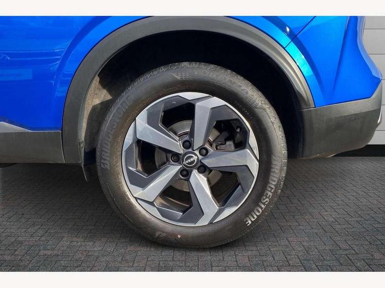 Android auto/Apple CarPlay (Wired), Blind spot warning, Drive modes (sport, normal, eco), Electric speed sensitive power steering, Emergency and breakdown call, Full Digital 12.3" TFT Digital Combimeter, Google maps services - search, weather, 3D maps and Google street view, Idle stop/start system, Intelligent around view monitor, Intelligent Cruise control (ICC), Intelligent driver alert system, Intelligent forward collision warning, Intelligent lane intervention, Lane departure prevention, Lane departure warning system, Maximum speed limiter, Moving object detection, Nissan connect 12.3 inch touchscreen infotainment system, Nissan connect navigation, Push button starter, Rear cross traffic alert, Rear parking sensors, Rear view camera, Remote control services - door locks, lights, horn and car locator, Telematics - notifications and connectivity services, TomTom live traffic services, Traffic sign recognition with legal speed adjustment, Trip computer, Virtual personal assistant and firmware over the air capability, Wireless apple carplay, 6 speakers, AM/FM audio system with DAB, Bluetooth audio streaming, Front USB connections (Type-A and Type-C), Rear USB charging only ports (Type-A and Type-C), Auto dimming rear view mirror, Auto rear wiper when reversing, Automatic hazard signal with emergency stop signal, Body colour mirror caps, Body coloured door handles, Bodyside mouldings, Chrome side window finisher, Door handle with button, Electric auto folding door mirrors, Electrically adjustable and heated door mirrors with LED turn indicator, Follow me home headlights, High beam assist, Intelligent auto headlights, LED daytime running lights, LED Headlights, LED rear lights, One touch front and rear electric windows with remote opening and closing, Partially body coloured bumpers, Privacy glass, Rear bumper with graphite insert, Rear reversing light (bulb lighting), Rear roof spoiler, Rear side wing doors, Rear styling plate, Shark fin antenna, Splash free rain sensing wipers, Super UV and infrared cut glass, Three blink turn signal, 12v power socket in dashboard and luggage, 2x Rear coat hooks, 3 bench rear seats in 2nd row, 3 rear headrests, 4 folding assist grip, 6 Luggage hooks - 4 on floor, 2 on side, 6-way manually adjustable driver's seat, 60/40 split folding rear seat bench, Ambient lighting around centre console, Centre console storage tray, Chrome interior door handles, Cloth monoform upholstery, Driver and front passenger sunvisors with illuminated vanity mirrors, Driver seat back pocket, Dual zone automatic climate control with pollen filter, Electrically adjustable lumbar support for driver, Front and rear door storage, Front centre console and armrest, Front cupholders x 2, Front door with bottle holders, Glovebox with light, Hard trunk cover, Height adjustable driver's seat, Height adjustable front headrests, Height adjustable passenger seat, Leather steering wheel, Luggage board system, Luggage space lighting, Manually adjustable passenger (slide recline + lifter), Multifunction steering wheel, Passenger seat back pocket, Rear armrest with 2 cupholders, Rear door bottle holders, Single front passenger seat, Soft PVC kneepad, Steering wheel gearshift paddles, Steering wheel switches, Sunglasses holder, Tilt/telescopic adjustable steering wheel, Two rear isofix child seat anchorage points with top tether, Welcome light and console tray ambient lighting, 3x3 point rear seatbelt pretensioners + load limiters, ABS with EBD and brake assist, Active brake limited slip, Auto hold function, Child locks on rear doors, Curtain and front side, far side airbags, Driver and passenger airbags, Driver, passenger and 2nd row rear seat belt reminder, Electronic parking brake, Front seatbelt pretensioners + load limiters, Height adjustable front seatbelts, Hill start assist, Intelligent blind spot intervention, Intelligent front emergency braking with pedestrian, cyclist recognition and junction assist, Intelligent rear automatic braking, Tyre pressure monitoring system, Vehicle dynamic control, Capless fuel filler, Engine immobiliser, Intelligent Key, Remote central door locking with deadlocking, Thatcham Cat.1 alarm, Interior instrumental panel B finisher, 18" Diamond cut alloy wheels, Tyre puncture repair kit,