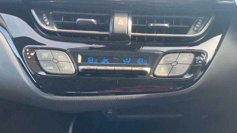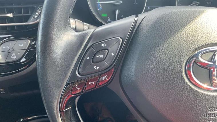4.2" coloured TFT screen for multi-information display, Adaptive cruise control, Bluetooth connectivity, E-call, Electric power steering, Front parking sensors with ICS and auto braking, Hybrid system indicator, Lane departure alert with steering control, Rear parking sensors with ICS, Remote boot door release in cabin, Remote boot door release in key, Reversing camera, Road sign assist - RSA, Simple Intelligent parking assist, Smart entry and push button start, Touch 2 Go navigation system, Trip computer, Voice recognition, Vehicle Stability Control (VSC), 6 speakers, AM/FM radio, DAB Radio (Digital Audio Broadcasting), Toyota touch 2 multimedia system with 8" display, USB connector, Wi-fi connectivity, Anti-jam protection on power windows, Auto dimming rear view mirror, Auto high beam, Auto up and down function on all power windows, Auto wipers, Automatic headlights, Automatic headlights cut-off, Automatically retractable door mirrors, Black and body coloured rear bumper, Black upper front grille, Body colour door handles, Body colour door mirrors, Body colour front spoiler lip, Body coloured front bumper, Boot door release with push button, Electric heated door mirrors, Follow me home headlights, Front and rear power windows, Front fog lights, Honeycomb lower front grille, LED daytime running lights, LED front light guide, LED High mounted stop light, LED rear brake lights, LED rear combination lights, Manual headlight levelling, Noise reduction layer on front windows and windscreen, Power adjustable door mirrors, Privacy glass, Rain sensor, Rear side wing doors, Rear spoiler, Rear tailgate, Rear window defogger, Rear window wiper, Reflective LED headlights, Shark fin antenna, UV-filter on driver and passenger windows, UV-filter on rear windows, 12v power outlet - front, 3 rear headrests, 3 seat bench in 2nd row, 3 spoke leather steering wheel, 60/40 split folding rear seat, Adjustable rear headrests, Adjustable speed limiter switch on steering wheel, Assist grips front and centre pillar, Audio and telephone switches on steering wheel, Black front door assist grips, Blue ambient lighting on front cup holders, Blue ambient lighting on front doors, Boot light, Chrome interior door handles, Cloth upholstery, Driver and front passenger personal light, Driver and front passenger Whiplash Injury Lessening seats, Driver and passenger seatback pockets, Dual zone automatic air conditioning, Floor mats, Front cupholders, Front head restraints, Front sports seats, Glovebox with internal light, Hard tonneau cover, Heated driver and front passenger seats, Hooks for luggage holding net, Humidifying Nanoe air purifier, Illuminated entry system, Isofix attachments on rear seats, Leather gearshift, Light on driver sun visor, Light on passenger sun visor, Manual telescopic steering wheel, Manual tilt steering wheel, Manually height adjustable driver seat, Manually height adjustable front passenger seat, Manually reclining driver seat, Manually reclining front passenger seat, Manually sliding driver seat, Manually sliding front passenger seat, Microphone on front personal light, Mirror on driver sun visor, Mirror on passenger sun visor, Multimedia switches on steering wheel, Pollen filter, Power adjustable lumbar support on driver seat, Shopping bag hooks, Single front passenger seat, Slow opening on lower glovebox, Voice recognition switch on steering wheel, 16 Disk front wheel brake, 3x3 point rear seatbelts, ABS+EBD+Brake assist, Electronic parking brake, Front and rear seatbelt reminder, Front passenger airbag on/off switch, Hill start assist control (HAC), Pre collision system with pedestrian detection, Pre-tensioners and force limiters, Rear door child safety locks, SRS Airbags - Driver + Front passenger, front side, front and rear curtain and driver's knee airbags, Toyota safety sense, Tyre pressure monitoring system, Acoustic vehicle alert system (AVAS), Glass-breaking alarm sensors, Immobiliser, Intrusion alarm, Intrusion sensor, Motion sensor alarm, Power door locks, Power passenger window lock, Remote central locking, Black lower dashboard, Black upper dashboard, Piano black console, Satin grey deco line on upper dashboard, Tyre repair kit,