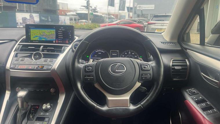 4 driving modes EV/Eco/Normal/Sport, 8" display screen with remote touch interface, Analogue clock, Apple car play/Android Auto, Bluetooth telephone connectivity, Electric speed sensitive power steering, Intelligent parking sensors - 4 front and 4 rear, Lane change flasher function, Lexus link connected services with available optional wifi, Lexus navigation system, Push button starter, Reversing camera, All wheel drive system, Vehicle Dynamics Integrated Management (VDIM), Vehicle Stability Control (VSC), 2 USB ports, 8 Speakers, AUX socket with VTR compatibility, CD player, DAB Digital radio, Auto dimming interior rear view mirror, Bi LED headlight with Auto high beam, Body adhesive, laser screw welding and laser brazed roof structure, Front and rear one touch power windows, with anti-jam protection, Heated and auto folding door mirrors with turn indicators, Hidden exhaust pipe, LED brake lights and rear lights with emergency brake signal, LED daytime running lights, LED front and rear sequential indicators, Rain sensor windscreen wipers, Roof rails, 12V accessory port centre console and luggage compartment, 2 cupholders in front centre console, 2 map pockets in the rear, 2 x fixed shopping bag hooks in boot, 2 x sun visors with vanity mirror and lamp, 6 tie down hooks in boot, 60/40 split folding rear seat, 8 way driver/passenger electrically adjustable front seats, Adjustable rear seat backrest, Card holder installed in driver and passengers sun visors, Centre armrest with storage box, Dual climate control air conditioning system, Front and rear head restraints, Front and rear textile carpet mats, Heated front seats, Leather gear lever, Leather steering wheel with paddle shifts, LED interior illumination, Rear air vents, Rear centre armrest with 2 cupholders, Self charging hybrid, Tahara leather upholstery, Whiplash Injury Lessening (WIL) feature (active headrest) for seats, 2 x Isofix child rear seat restraints, 3 point ELR front seatbelts with pretensioners, 3x3 point rear seat belts, ABS, Adjustable seat belt anchor points, Driver and front passenger 2 stage airbag, Driver/front passenger side airbags, Drivers knee airbag, EBD + Brake Assist, ECB (Electronically Controlled Brake System), Electronic parking brake, Front and rear curtain shield airbags, Front passenger seat cushion airbag, Hill start assist, Hybrid automatic with 6 stage sequential shift and kick down switch, Lexus safety system - dynamic radar cruise control, pre collision system day and night, lane tracing assist, road sign, automatic high beam, OTA, Passenger airbag cut-off device, Traction control, Tyre pressure warning, 2 x remote key fobs, Anti-theft system with siren, alarm, intrusion sensor, glass breakage sensor, tilt sensor and engine immobiliser, Locking wheel nuts, Speed sensitive auto door locking, Two motion door lock with double lock, VIN Window etching, Silver inlays, Space saver spare wheel,