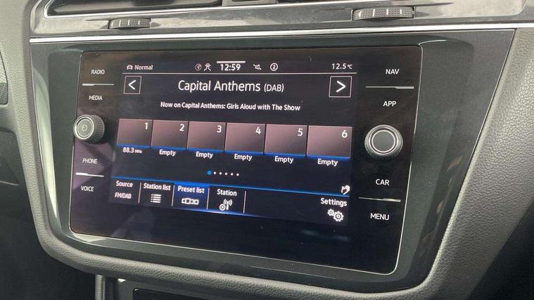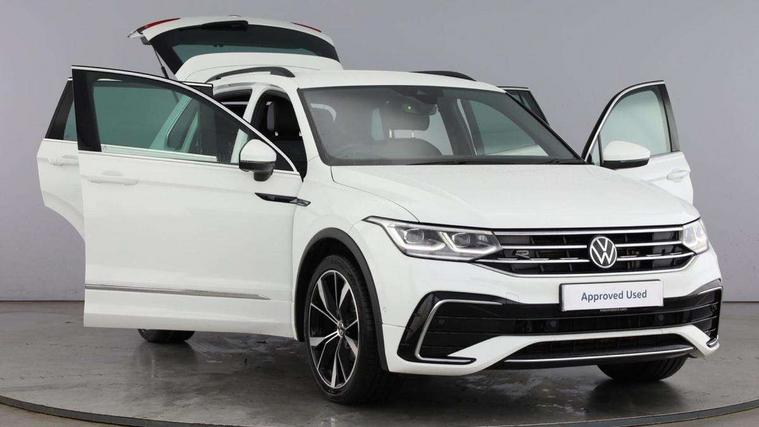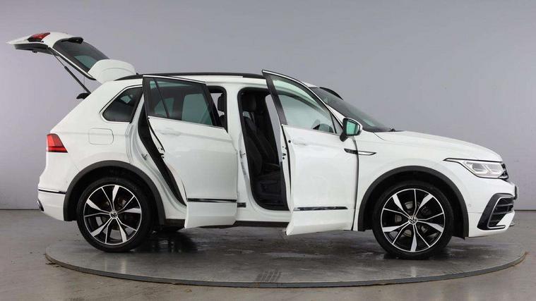 Adaptive cruise control ACC stop and go including speed limiter, App-Connect incl. App-Connect Wireless for Apple CarPlay and Android Auto, Bluetooth phone integration system, Distance control assist, Driver alert system, Driver profile selection, Dynamic road sign display, eCall emergency call system, Electromechanical speed sensitive power steering, Engine start/stop button, Lane keeping system Lane Assist, Lights on warning, Multifunction front facing camera, Outside temperature display, Premium multifunction display with multi colour display, Remote control boot opening, Rev counter, Revision / skills operating concept travel assistant, Service interval indicator, Speed limit display, Start/stop system with regenerative braking, Trip computer, Warning sound and light for doors and tailgate open, Battery regeneration during braking, Diesel particulate filter, Misfuel prevention device for diesel engine, Selective Catalytic Reduction, XDS electronic differential lock for improved traction and handling, 4 X 20 watt output, 8 Speakers, Diversity antenna for FM reception, Radio, SD card slot, Simultaneous pairing of 2 compatible mobile devices, SMS functionality - read, compose and send SMS messages using touch-screen display, Title and cover art display, USB C ports, Auto dimming interior rear view mirror, Automatic headlight control system, Body colour door handles, Chrome moldings on the side windows, Coming/leaving home lighting function, Dynamic headlight range control, Front and rear electric windows, Heated rear window, High level 3rd brake light, Laminated safety glass windshield, heat and sound insulating, LED headlamps with LED separate daytime running light and dynamic cornering light, LED rear combination lamps, LED rear number plate lights, License plate carrier in front and rear, Poor weather light and cornering light, R Line body kit, R Line side sills, Rain sensor windscreen wipers, Rear exhaust tailpipe, Rear fog lamp, Rear side wing doors, Rear spoiler in R style, Rear windscreen washer and wiper with interval delay, Side and rear windows in heat insulating glass, Trailer Stability Programme, Unique R Line badging, Windscreen wipers/ intermittent wipe + 4 position delay, 12V outlet in center console rear and in luggage compartment, 12V outlet in front and tray, 2 cup holders in front, 2 LED front reading lights, 2 LED rear reading lights, 3 bench rear seats in 2nd row, 3 rear headrests, 4 load lashing points, 40:20:40 split folding rear seats, Air Care Climatronic 3 zone automatic climate control with enhanced air filter and controls in the rear, Backrest release for left front seat, Black headlining, Brushed stainless steel pedals and footrest, Carpet mats in front and rear with decorative stitching in Gray, Climate control unit rear with touch function, Door and side trim panel in foam film, insert in leatherette, Front centre armrest, Front footwell illumination, Front seats head restraints (x-adjustment), Height adjustable front seats, Height/reach adjust steering wheel, Instrument lighting white adjustable panel illumination, Interior light with delay, Isofix Preparation 2 Rear child seats, Leather gear knob, Lockable cooled glovebox, Luggage compartment lighting, Luggage net, Rear bench seat asymetrically split folding, longitudinally movable and folding with load-through hatch and center armrest, Remote unlocking for rear seat backrest, Removable luggage cover, Removable rear headrests, Safety optimised front head restraints, Single front passenger seat, Sliding/reclining rear seats, Standard rear seat release, Storage compartment in driver's door, Storage compartment in passenger's door, Storage compartment in rear doors, Storage compartments in luggage area left and right, Storage tray on dashboard, Sun visors with illuminated vanity mirrors, Top front comfort seats, Variable boot floor, height adjustable and removable, Driver assistance pack plus - Tiguan DSG, 3 point seat belt for centre rear seats, 3 point seat belts with seat belt pretensioners for the outer rear seats, Active bonnet, Curtain airbags for front and rear passengers, Driver/Front Passenger airbags, Drivers knee airbag, Electronic parking brake with auto hold, Electronic Stability Control with driver steering recommendation, ABS, ASR, EDL, EDTC and trailer stabilization, Front assist with autonomous emergency braking (for Adaptive Cruise Control ACC up to 130 mph), Front disc brakes, Front passenger airbag deactivation, Front side airbags, Height adjustable front 3 point seatbelts + pretensioners, Hill hold control, Manual child proof rear door locks, Pedestrian monitoring system, Power assisted brakes, Proactive passenger protection system in combination with front assist, Rear disc brakes, Rigid safety cell with front and rear crumple zones, Two tone horn, Warning sound and light for front seat belts if unfastened, Anti theft alarm system with interior monitoring, backup horn and towing protection, Anti theft wheel bolts, Electronic engine immobiliser, Tool kit,