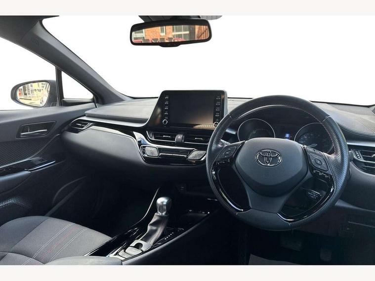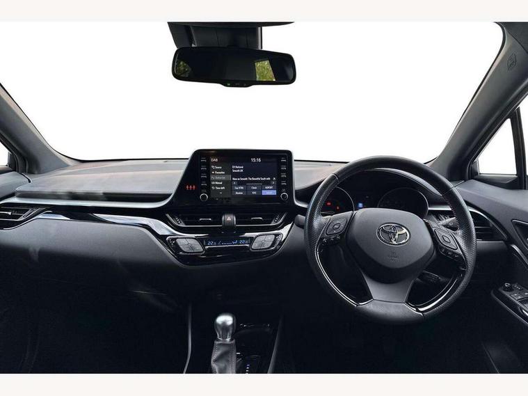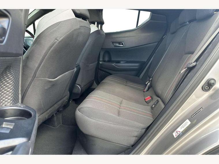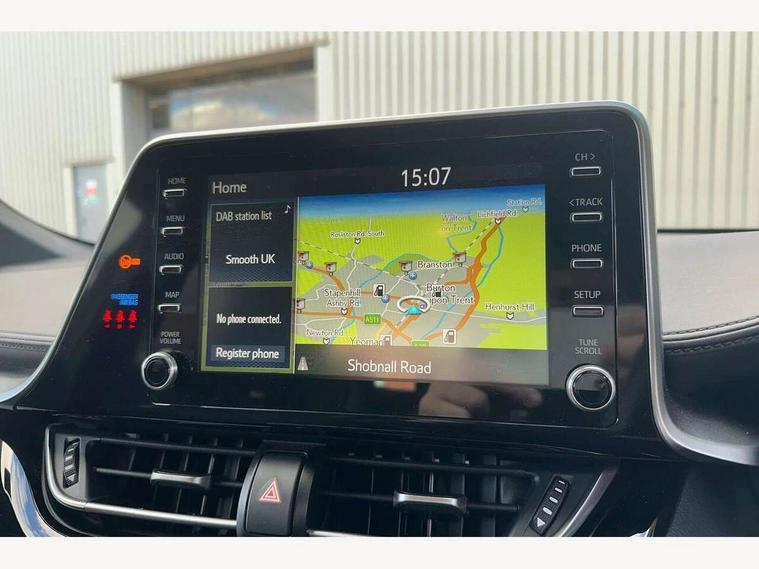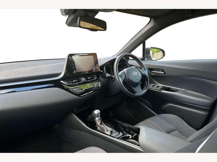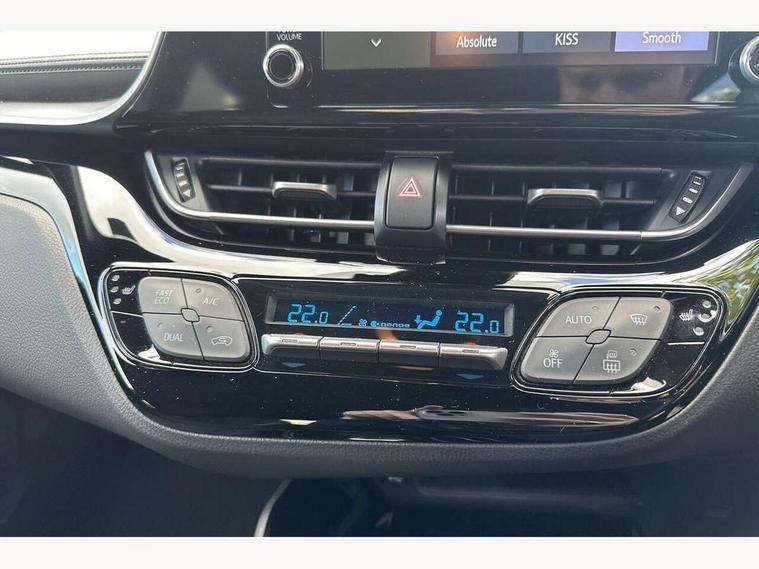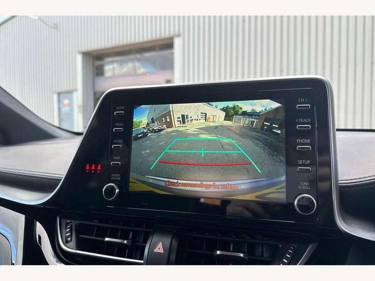 4.2" coloured TFT screen for multi-information display, Adaptive cruise control, Bluetooth connectivity, Electric power steering, Hybrid system indicator, Lane departure alert with steering control, Remote boot door release in cabin, Remote boot door release in key, Reversing camera, Road sign assist - RSA, Simple Intelligent parking assist, Touch 2 Go navigation system, Trip computer, Voice recognition, Vehicle Stability Control (VSC), 6 speakers, AM/FM radio, DAB Radio (Digital Audio Broadcasting), Toyota touch 2 multimedia system with 8" display, USB connector, Wi-fi connectivity, Adaptive front light system, Adaptive LED Headlights, Anti-jam protection on power windows, Auto high beam, Auto up and down function on all power windows, Automatic headlight levelling, Automatic headlights, Automatic headlights cut-off, Black and body coloured rear bumper, Black upper front grille, Body colour door handles, Body colour door mirrors, Body coloured front bumper, Boot door release with push button, Chrome front lower bumper, Electric heated door mirrors, Follow me home headlights, Front and rear power windows, Front spoiler lip in black, Honeycomb lower front grille, LED daytime running lights, LED fog lights, LED front light guide, LED High mounted stop light, LED rear brake lights, LED rear combination lights, Noise reduction layer on front windows and windscreen, Power adjustable door mirrors, Privacy glass, Rear sequential indicators, Rear spoiler, Rear tailgate, Rear window defogger, Rear window wiper, Shark fin antenna, UV-filter on driver and passenger windows, UV-filter on rear windows, 12v power outlet - front, 3 rear headrests, 3 spoke perforated leather steering wheel, 60/40 split folding rear seat, Adjustable rear headrests, Adjustable speed limiter switch on steering wheel, Assist grips front and centre pillar, Audio and telephone switches on steering wheel, Black front door assist grips, Blue ambient lighting on front cup holders, Blue ambient lighting on front doors, Boot light, Chrome interior door handles, Driver and front passenger personal light, Driver and front passenger Whiplash Injury Lessening seats, Driver and passenger seatback pockets, Dual zone automatic air conditioning, Fabric upholstery, Floor mats, Front cupholders, Front head restraints, Front sports seats, Glovebox with internal light, Hard tonneau cover, Heated driver and front passenger seats, Hooks for luggage holding net, Humidifying Nanoe air purifier, Illuminated entry system, Isofix attachments on outer rear seats, Leather gearshift, Light on driver sun visor, Light on passenger sun visor, Manual telescopic steering wheel, Manual tilt steering wheel, Manually height adjustable driver seat, Manually height adjustable front passenger seat, Manually reclining driver seat, Manually reclining front passenger seat, Manually sliding driver seat, Manually sliding front passenger seat, Microphone on front personal light, Mirror on driver sun visor, Mirror on passenger sun visor, Multimedia switches on steering wheel, Pollen filter, Power adjustable lumbar support on driver seat, Shopping bag hooks, Slow opening on lower glovebox, Voice recognition switch on steering wheel, Tech with parking sensor pack - C-HR, 16 Disk front wheel brake, 3x3 point rear seatbelts, ABS+EBD+Brake assist, Electronic parking brake, Front and rear seatbelt reminder, Front passenger airbag on/off switch, Hill start assist control (HAC), Pre collision system with pedestrian detection, Pre-tensioners and force limiters, Rear door child safety locks, SRS Airbags - Driver + Front passenger, front side, front and rear curtain and driver's knee airbags, Toyota safety sense, Tyre pressure monitoring system, Acoustic vehicle alert system (AVAS), Glass-breaking alarm sensors, Immobiliser, Intrusion alarm, Intrusion sensor, Motion sensor alarm, Power door locks, Power passenger window lock, Remote central locking, Black lower dashboard, Black upper dashboard, Piano black console, Silver deco line on upper dashboard, 19" Black machined alloy wheels, Tyre repair kit,