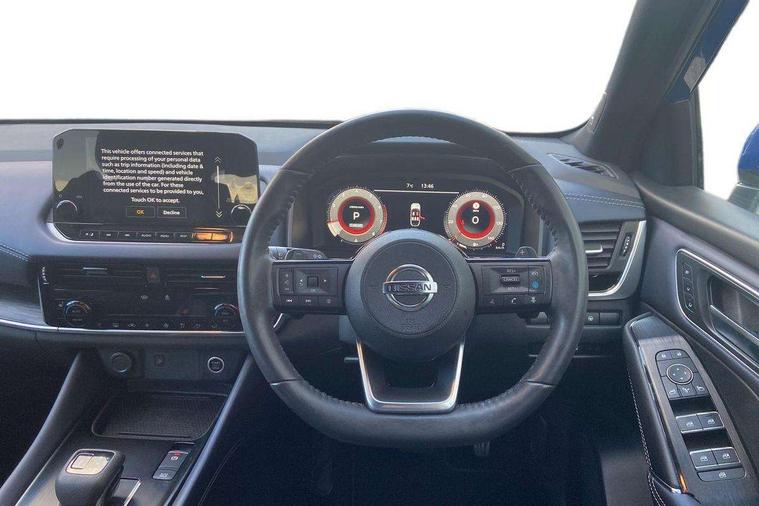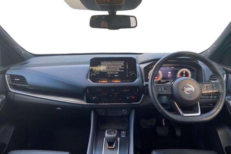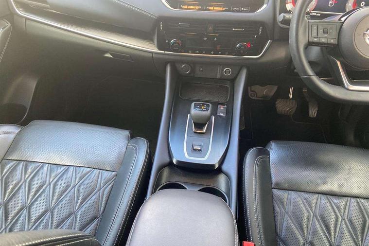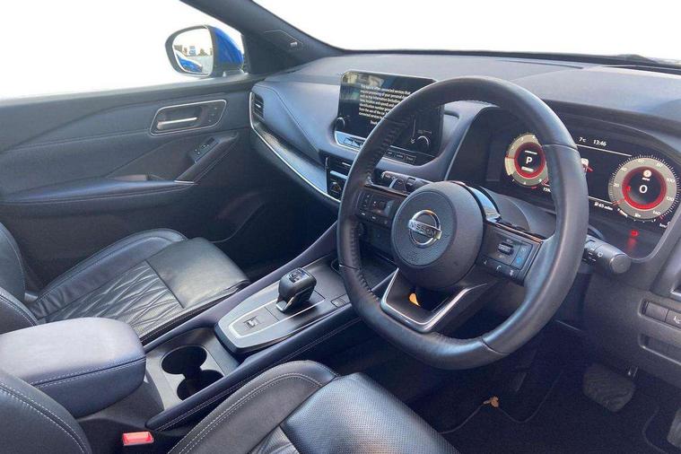 Blind spot warning, Drive modes (sport, normal, eco), Electric speed sensitive power steering, Emergency and breakdown call, Front and rear parking sensors, Full Digital 12.3" TFT Digital Combimeter, Google maps services - search, weather, 3D maps and Google street view, Hands free power tailgate, Idle stop/start system, Intelligent around view monitor, Intelligent Cruise control (ICC), Intelligent driver alert system, Intelligent forward collision warning, Intelligent lane intervention, Lane departure prevention, Lane departure warning system, Moving object detection, Nissan connect 9" touchscreen infotainment system, Nissan connect navigation, Push button starter, Rear cross traffic alert, Remote control services - door locks, lights, horn and car locator, Telematics - notifications and connectivity services, TomTom live traffic services, Traffic sign recognition with legal speed adjustment, Trip computer, Virtual personal assistant and firmware over the air capability, Wireless Apple CarPlay and wired Android Auto, Wireless charging pad, 10 Bose speakers - 2 tweeters, 6 high and medium frequency door speakers and 2 in subwoofer, AM/FM audio system with DAB, Bluetooth audio streaming, Bose acoustimass bass box, Digital amplifier, Front USB connections (Type-A and Type-C), Rear USB charging only ports (Type-A and Type-C), Auto dimming rear view mirror, Auto rear wiper when reversing, Body colour mirror caps, Body coloured door handles, Bodyside mouldings, Chrome side window finisher, Door handle with button, Door mirror memory, Dusk sensor, Electric auto folding door mirrors, Electrically adjustable and heated door mirrors with LED turn indicator, Fixed panoramic glass roof with electric sunshade, Follow me home headlights, Front and rear LED turning signals, Intelligent auto headlights, LED daytime running lights, LED rear lights, One touch front and rear electric windows with remote opening and closing, Privacy glass, Rear roof spoiler, Rear side wing doors, Rear styling plate, Reverse tilting door mirrors, Roof rails, Shark fin antenna, Splash free rain sensing wipers, Super UV and infrared cut glass, Three blink turn signal, 12v power socket in dashboard and luggage, 2x Rear coat hooks, 3 bench rear seats in 2nd row, 3 rear headrests, 4 folding assist grip, 6 Luggage hooks - 4 on floor, 2 on side, 60/40 split folding rear seat bench, 8 way electric adjustable driver seat with massage and memory function, 8 way electric adjustable passenger seat with massage and memory function, Ambient lighting around centre console, Ambient lighting in front doors, Centre console storage tray, Chrome interior door handles, Dark headlining, Driver and front passenger sunvisors with illuminated vanity mirrors, Driver seat back pocket, Dual zone automatic climate control with pollen filter, Electric 4-way lumbar support for drivers seat, Electric adjustable 4 way lumbar support for passenger seat, Front and rear door storage, Front cupholders x 2, Front door with bottle holders, Glovebox with light, Hard trunk cover, Height adjustable front headrests, Leather steering wheel, Luggage board system, Luggage space lighting, Multifunction steering wheel, Passenger seat back pocket, PVC front centre console and armrest, Quilted premium leather upholstery, Rear armrest with 2 cupholders, Rear door bottle holders, Single front passenger seat, Soft PVC kneepad, Steering wheel gearshift paddles, Steering wheel switches, Tilt/telescopic adjustable steering wheel, Two rear isofix child seat anchorage points with top tether, Welcome light and doors with console tray ambient lighting, Heat pack - Qashqai, Tech Pack (ProPILOT + HUD), 3x3 point rear seatbelt pretensioners + load limiters, ABS, ESP, EBD and brake assist, Active brake limited slip, Auto hold function, Child locks on rear doors, Curtain and front side, far side airbags, Driver and passenger airbags, Driver, passenger and 2nd row rear seat belt reminder, Electronic parking brake, Front seatbelt pretensioners + load limiters, Height adjustable front seatbelts, Hill start assist, Intelligent blind spot intervention, Intelligent front emergency braking with pedestrian, cyclist recognition and junction assist, Intelligent rear automatic braking, Tyre pressure monitoring system, Vehicle dynamic control, Advance intelligent key with driver memory storage (seats, mirrors, audio), Capless fuel filler, Engine immobiliser, Rear bumper with silver insert, Remote central door locking with deadlocking, Thatcham Cat.1 alarm, 20" Alloy wheels,