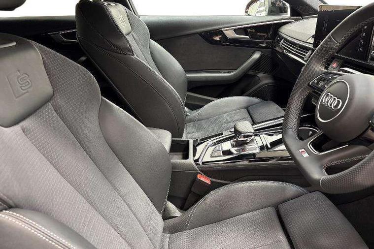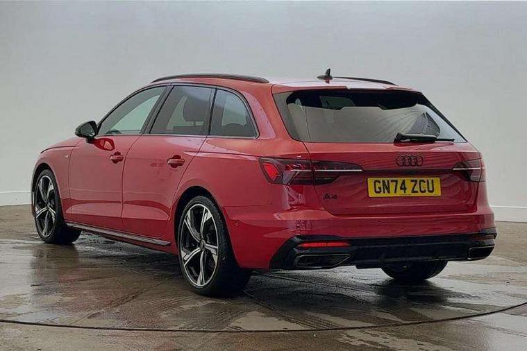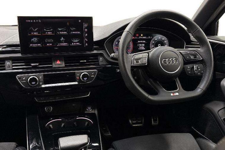 Audi connect safety and service (e-call), Audi drive select, Audi smartphone interface, Audi virtual cockpit, Automatic start-stop system with coasting functionality and efficiency programme, Bluetooth interface, Camera based traffic sign recognition, Electromechanical power steering, Email, calendar and text messages displayed via MMI, Front and rear parking sensors, Lane departure warning, MMI Navigation plus with MMI touch includes 10.1" high resolution colour MMI display, 3D map, Power operated tailgate, Rear view camera, Voice control system, 54 litre fuel tank, Sports suspension lowered by 23mm, 2 USB charging ports, 8 passive loudspeakers, DAB digital radio reception, Audi beam uses LEDs to project the audi logo onto the ground as you exit your A4, Auto dimming rear view mirror, Black Audi rings and black badging (with removed engine badging), Body colour door handles, Body colour front spoiler lip, Body colour side sill trim, Electric adjustable/heated/folding door mirrors with auto dimming, Exhaust tailpipes in dark chrome, Grained matt black side air inlets with matt aluminium silver inlay, High beam assistant, High gloss black B pillar trims and triangular rear door trim, LED headlights with LED rear lights + dynamic rear indicators + headlight adjustment and high beam, turning light + LED daytime running lights, LED third brake light, Privacy glass, Rain and light sensors, Rear diffuser in matt black with trim strip in matt aluminium silver, Rear side wing doors, Rear wiper, RS4 rear spoiler in body colour, S Line roof edge spoiler, Sport front and rear bumpers with side skirts, Variable intermittent front wash/wipe, Windscreen with acoustic glazing, 4 way electric lumbar support for driver and front passenger, 40/20/40 split folding 3 rear seat bench in 3 parts with rear centre armrest, Black carpets, Black cloth headlining, Black perforated leather gearknob, Contrast stitching on seats, steering wheel and gear lever gaiter, Deluxe 3 zone electronic climate control, Electric load area cover, Front and rear head restraints, Front centre armrest, Heated front seats, Illuminated door sill trims with S logo, ISOFIX child seat mounting and top tether, Manual seat adjustment, Single front passenger seat, Stainless steel pedals and foot rest, Black styling pack - A4 Avant, LED Interior light pack - A4/S4, 3 rear seatbelts, 6 airbags - Driver, front passenger, curtain and side windows, Attention and drowsiness assist, Electronic Stabilisation Control (ESC) including ABS, ASR and EDL, Hill hold assist, Multi collision brake assist, Pop-up bonnet for pedestrian protection, Pre sense city, Rear door child safety locks, Seatbelt monitoring, Warning triangle and first aid kit, Anti theft alarm, Anti theft wheel bolts, Central locking, Keyless Go, Piano black finish inlay, Tool kit, Tyre repair kit,