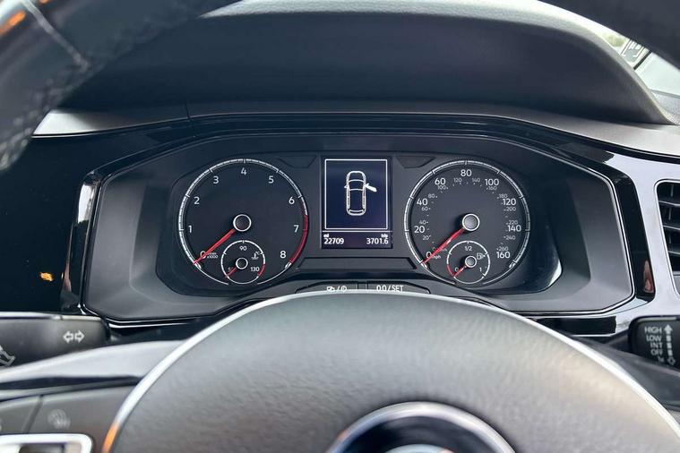 Digital clock, Driver alert system, Emergency call service, Multifunction computer plus, Power assisted speed sensitive steering, Speedo and rev counter, electronic odometer, trip, service interval display and fuel gauge, Start/stop system, Volkswagen connect, Warning buzzer and light for front seatbelts unfastened, Wireless app connect, Battery regeneration during braking, Galvanished body, DAB digital audio broadcast, Diversity antenna for FM reception, Black grille with chrome surround, Black radiator grille with chrome louvres, Body colour bumpers, Body colour door handles, Body colour rear spoiler, Body coloured side sills, Electric front windows, Front windscreen washers and wipers with 4 speed intermittent delay, Heated rear window with auto timer, High level 3rd brake light, Internally adjustable door mirrors, LED daytime running lights, LED rear number plate lights, Rear electric windows, Rear windscreen washer and wiper with interval delay, reverse activated, 2 bag hooks in luggage compartment, 2 front and 2 rear reading lights, 2 front cupholders and 12 V socket with cover, 3 rear head restraints, 4 grab handles, 60/40 split folding rear seat, Centre console storage with open storage compartment, Chrome interior door handles, Driver and front passenger seat height adjustment, Driver and front passenger sunvisors with illuminated vanity mirrors, Dust/pollen filter, Folding rear seat backrest, Front head restraints, Front seat backrest storage pockets, Gear lever gaiter in black trim surround, Glovebox, Handbrake grip button in chrome effect, Height/reach adjustable steering column, Instrument lighting, adjustable panel illumination, Interior light with delay, Isofix Preparation 2 Rear child seats, Leather gear knob and handbrake grip, Leather multifunction steering wheel, Luggage compartment cover, removable, Luggage compartment lighting, Luggage compartment with variable load floor, Storage compartment in front doors, Storage compartment in rear doors, Storage compartment under front seats, Sunglasses holder, 3 point height adj front seatbelts + pretensioners, 3x3 point rear seatbelts, ABS, Automatic post collision braking, Driver/front passenger airbag, Drivers and front passengers safety optimised head restraints, ESP with EDL + ASR, Front and rear passenger curtain airbags, Front disc brakes and rear drum brakes, Front passenger airbag deactivation, Front seat side impact airbags, HBA (Hydraulic Brake Assist), Hill hold control, Single tone horn, Tyre pressure monitoring system, Alarm with interior protection and deactivation via infotainment system, Electronic engine immobiliser, Remote central locking with 2 remote folding keys, Air vents in High gloss black, Limestone grey decorative inserts,