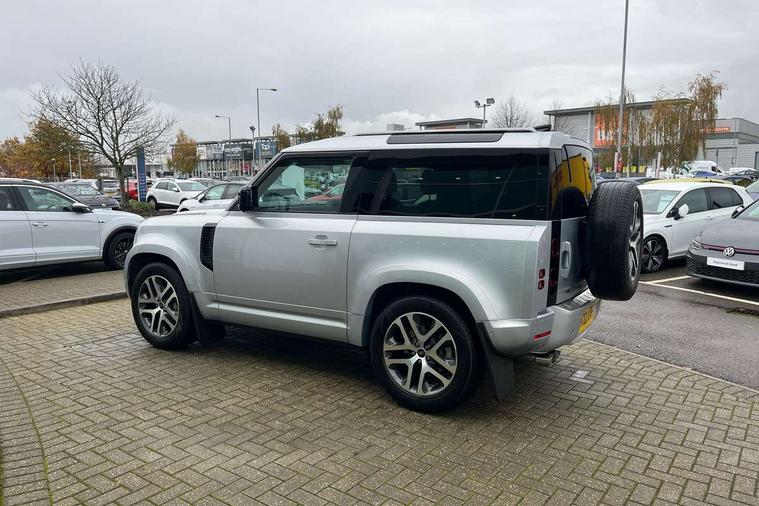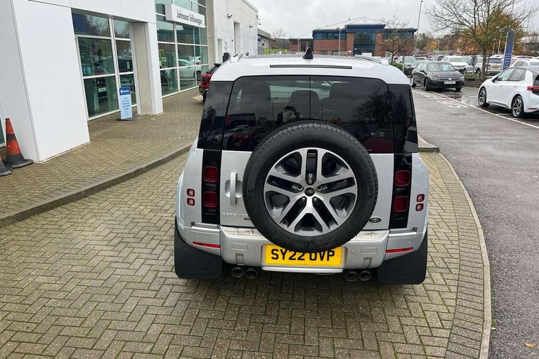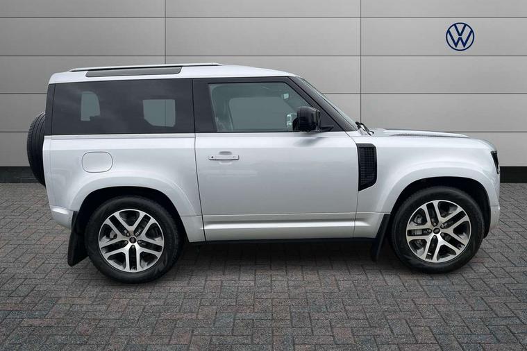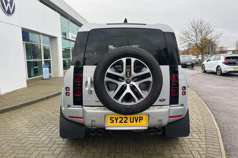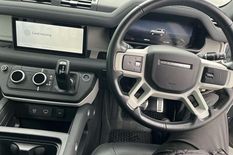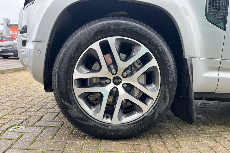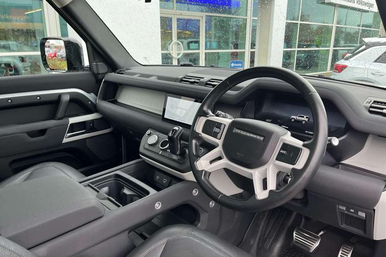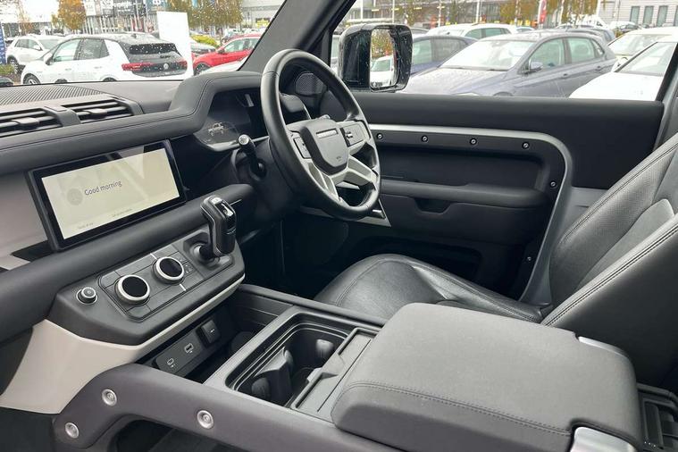 360 degree parking aid, 3D Surround Camera with 360 View, 180 Rear View, Front Traffic Detection, Forward Vehicle Guidance, Tow Hitch Assist and clear sight Ground View, Android Auto, Apple CarPlay, Assisted tailgate with soft close, Blind spot assist, Bluetooth system, Brake pad wear indicator, Clear exit monitor, Connected navigation pro, Cruise control + speed limiter, Driver condition monitor, Electric power assisted steering (EPAS), Lane keep assist, Push button start, Rear traffic monitor, Traffic sign recognition with adaptive speed limiter, Trip computer, Wade Sensing, 8 speed automatic transmission, Adaptive dynamics, All wheel drive system, Electronic air suspension, Twin speed transfer box, DAB Radio (Digital Audio Broadcasting), Meridian 400w sound audio system with 11 speakers and subwoofer, Pivi pro connected, Automatic headlight levelling, Automatic headlights, Body coloured roof, Centre high mounted stop light, ClearSight interior rear view mirror, Electric heated/power fold door mirrors with approach lights and auto dimming driver side, Electric windows with one touch open/close and anti-trap, Follow me home lighting, Front fog lights, Heated rear window with timer, Heated windscreen, Illuminated metal treadplates with brand name script, LED tail lights, Matrix LED headlights with signature DRL, Panoramic rear side glass, Privacy glass, Puddle lights, Rain sensing windscreen wipers, Rear fog lights, Rear wiper, Side hinged tailgate, Sliding panoramic roof, Trailer stability assist, 12 way heated and cooled electric memory front seats with 2 way manual headrests, 12V power socket in loadspace, 3 seat bench in 2nd row, 40:20:40 fixed rear seats with centre armrest, Alpine lights, Durable rubber cabin flooring, Durable rubber loadspace flooring, Electric cabin pre conditioning, Electric reach + rake adjustable steering column, Footwell lights, Front centre console refrigerator compartment, Grained Leather upholstery, Heated steering wheel, Leather gearshift, Light oyster morzine headlining, Loadspace cover, Loadspace Hook, Multifunction steering wheel, Overhead stowage for sunglasses, Premium cabin lighting, Rear headrests, Rear ISOFIX, Rear reading lights, Single front passenger seat, Standard interior, Standard leather steering wheel, Standard seat configuration, Storage glovebox, Sunvisors with illuminated vanity mirrors, Twin front cupholders with cover, Online pack with data plan - Defender, XS Edition exterior pack - Defender, 5 x 3 point seatbelts, ABS, Brake hold function, Cornering brake control (CBC), Cross car beam in light grey powder coat brushed finish, Customer configurable autolock, DSC - Dynamic Stability Control, EBD - Electronic brakeforce distribution, Electric parking brake (EPB), Emergency brake assist, Emergency braking, ESP + traction control, Front airbags with passenger seat occupant detector, HDC - Hill descent control, Hill launch assist, Low traction launch, Remote for (e-Call, Optimised assistance call, InControl app, Climate, beep and flash and door), RSC - Roll stability control, Seat belt reminder, TPMS (Tyre pressure monitoring system), Alarm, Immobiliser, Intrusion sensor, Keyless entry, Locking wheel nuts,
