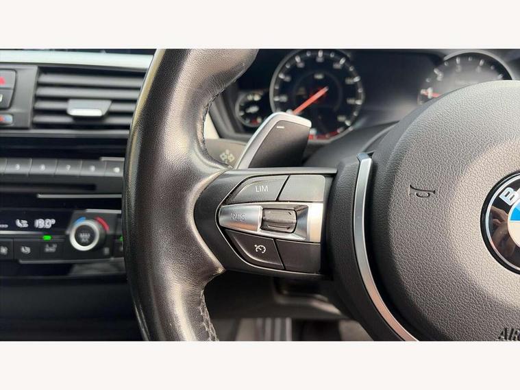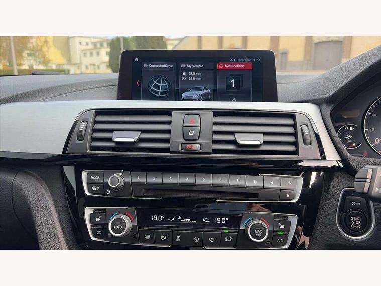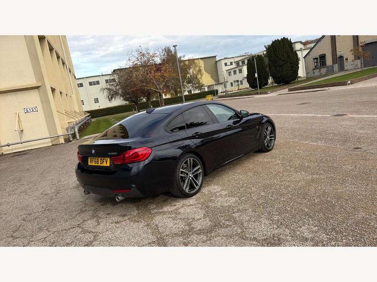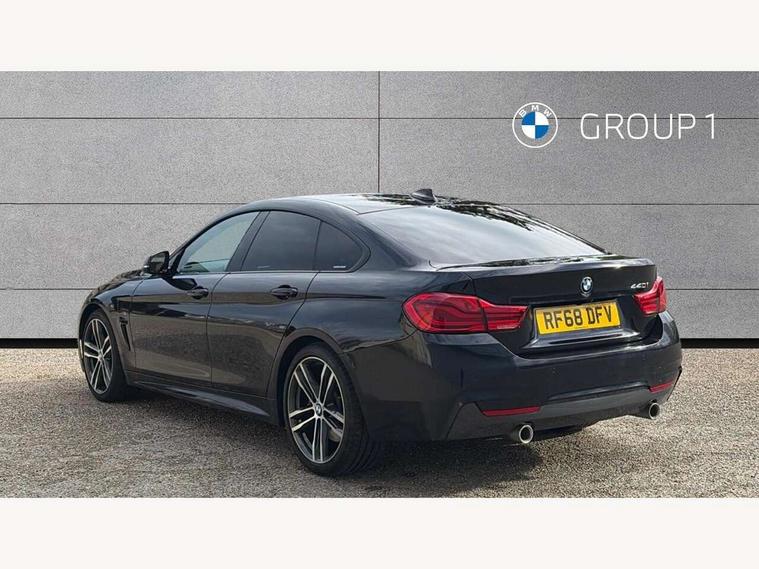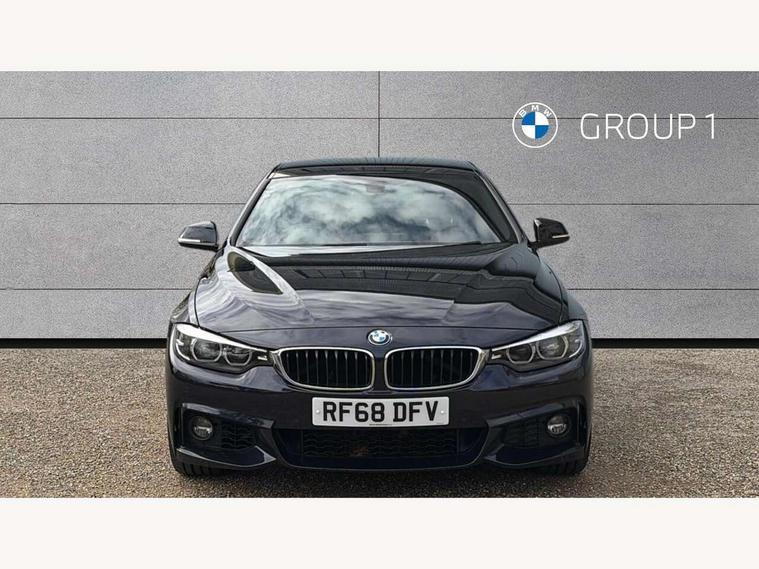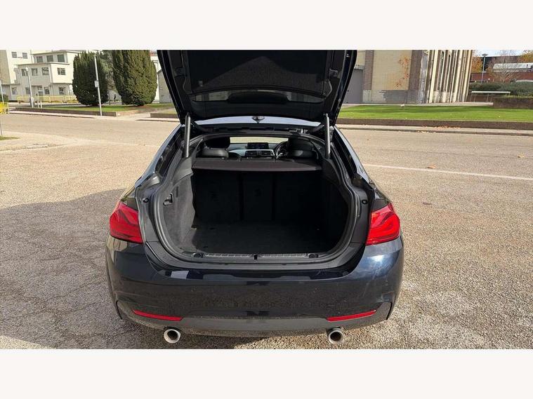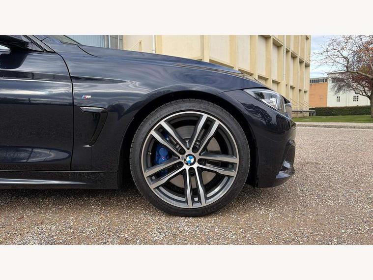 Auto start-stop, Automatic tailgate operation, BMW Online services, BMW remote services, BMW Teleservices, Brake pad wear indicator warning light, Check Control warning system for monitoring of lights and door/luggage compartment open warning, Control display - 6.5" colour display screen, Front/rear park distance control (PDC), iDrive Controller with 8 favourite buttons, Instrument cluster with speedometer with mph readout, tachometer, fuel gauge and oil temperature gauge, Lights on warning by audio warning signal when ignition is switched off, M Sport instrument cluster, Oil sensor for level and grade, warning by check control system, On board computer - average speed, fuel consumption, outside temp display with acoustic warning, clock/date, service interval, odometer/trip meter, Optimum shift indicator, Personal Profile - automatic lock when driving away selectable, Run flat indicator, Aluminium front suspension, Drive performance control with ECO PRO comfort + sport mode, Electronic differential lock, Five link rear suspension, Incorrect fuelling protection, Sport automatic transmission with steering-wheel mounted gearshift paddles and launch control, DAB tuner, Auto dimming rear view mirror, Body colour door handles, Body colour front bumper, Body colour mirror caps, Body colour roof mouldings, Chrome kidney grille with extra wide black, high gloss black vertical slats, Direction indicator, side repeaters, integrated in exterior mirrors, Door sill finishers with M designation, Dual exhaust tailpipes in left with chrome finisher, Dynamic brake lights, Electric front windows with fingertip open/close + anti-trap facility, Follow me home headlights, Front air inlet with high gloss black finish, Front and rear bumper system, Green tinted heat protection glazing, Heated windscreen washer jets, Heated, electrically adjustable exterior mirror aspheric on driver side, convex on passenger side, High gloss black rear bumper insert, High gloss shadow line, High level third brake light, LED daytime running lights, LED direction indicator lenses, LED eyebrow light, LED front fog lights, LED tail lights with 3D L-shaped LED light design, Lightweight engineering, M aerodynamic bodystyling, M designation side badges, Rain sensor including auto headlights activation, Shark fin antenna, Two speed adjustable intervals windscreen wipers, Visible VIN plate, Welcome lighting, Windscreen with grey shadeband, 12V sockets in front centre console and passenger footwell, 2 Rear seat headrests, 3 spoke leather M sport multifunction sports steering wheel, 4 grab handles, Air conditioning and radio control panel in high gloss black, Anthracite headlining, Automatic air conditioning with two zone control, Chrome centre console panel highlight, Driver and front passenger seat heating, Folding front centre armrest with storage compartment, Folding storage compartment with glasses holder + coin tray, Front and rear side armrests integrated into door trim, Front door storage with bottle holder, Front head restraints, Front sports seats with electric side bolster adjustment, Glove compartment, Glove compartment opener with chrome trim, Interior lighting, front centre over interior mirror and rear centre automatic interior light activation when door is opened, ISOFIX child seat preparation+airbag deactivation, Leather gearknob and handbrake lever, Load lashing eyes in luggage compartment, Reach + rake adjustable steering column, Rear centre armrest with 2 cupholders, Rear coded belt buckles, Storage compartment in rear centre console, Sunvisors with vanity mirrors and ticket pocket, Toolkit located in luggage compartment, Two front cup holders with a sliding lid, Velour floor mats, Extended lighting package - 4 Series Gran coupe, Media pack - Professional - 4 Series M Sport, Airbag - Front driver and passenger, front and rear head, front side, curtain head protection, manual deactivation of front passenger airbag possible, Anti lock braking system (ABS) with brake assist, Automatic Stability Control (ASC), Battery safety cut-off, BMW emergency call, Brake drying, Brake energy regeneration, Brake pretensioning, Cornering brake control (CBC), Crash sensor activating central locking release, hazard warning lights, Dynamic brake control, Dynamic stability control + (DSC+), Dynamic Traction Control - DTC, Front and rear ventilated brake disc, Front seatbelt force limiters, Hill start assistant, Pyrotechnically pre-tensioned front seatbelts, Seat belt security check for driver, Side impact protection, Twin horns, Tyre pressure monitoring with three level warning strategy, Variable torque distribution, Warning triangle and first aid kit, Central locking switch for all doors, fuel filler cap and luggage compartment, Electronic engine immobiliser, Remote control integrated key with blue inset, Start/stop button with Comfort Go keyless engine start and auto Start/stop deactivation button, Thatcham category 1 alarm, Reduced rolling resistance tyres, Run flat tyres,