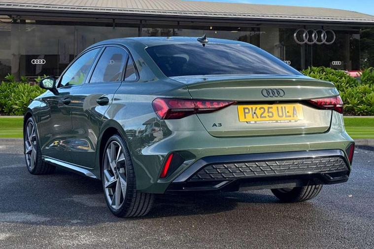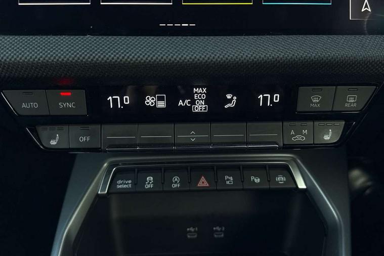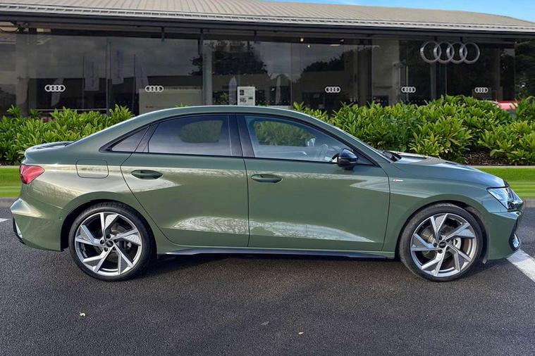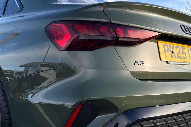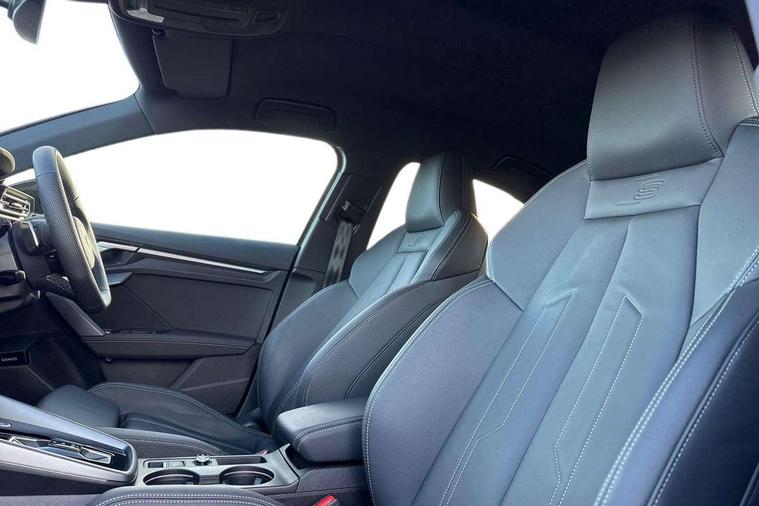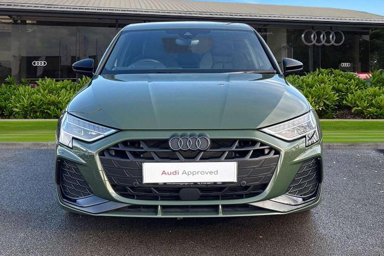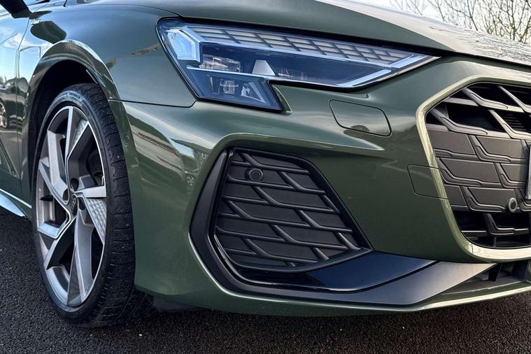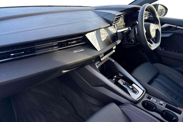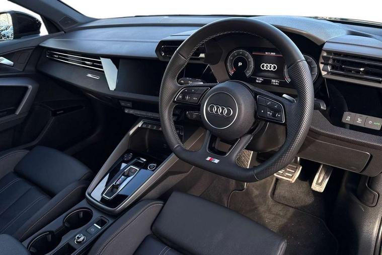 Adjustable speed limiter, Audi drive select, Audi smartphone interface with app store includes wireless Apple carplay, Android auto and Amazon alexa integration, Audi virtual cockpit plus - 12.3" full HD resolution dynamic digital instrument cluster, Automatic start/stop system with recuperation, Bluetooth interface, Camera based traffic sign recognition, Collision avoidance assistant, Cruise control, Distraction and Fatigue warning, e-Call (emergency call), Electromechanical power speed sensitive steering, Emergency assist, Lane departure warning system, MMI Navigation Plus with high resolution 10.1" colour touch screen display, Park Assist with parking system Plus, Service indicator, Trip computer, Voice control system with natural language interaction, Sports suspension, Audi Phonebox light with wireless charging, Audi sound system - 10 loudspeakers including centre loudspeaker and subwoofer, DAB Digital radio, USB ports with charging function in the rear, Acoustic glass windscreen, All weather light, Anthracite grey Audi rings (front and rear), Audi beam uses LEDs to project the Audi logo onto the ground as you exit your A3, Auto dimming frameless rear view mirror, Automatic dynamic range control, Black accents front and rear bumpers, Black accents in the area of the Audi single frame grille, Black accents window trims strips, Dipped beam, main beam, position light and turning light, Electrically adjustable/heated/folding/auto dimming door mirrors with integrated LED indications + kerb view function for passenger side, Exterior model badging, Front and rear side air inlets in grained matt black with dark liquid chrome frame, Front electric windows, Heat insulating glass windscreen, Illuminated door sills with aluminium inserts at the front with S logo, Intersection light, LED 3rd brake light, LED brake lights, LED daytime running x3, LED headlights with LED rear lights and dynamic rear indicators, LED rear number plate lights, LED reverse light, LED tail lights, Light and rain sensors, Manoeuvring light, Motorway light, Privacy glass - dark tinted rear window, rear door and side windows, Rear boot, Rear diffuser and grill in grained matt black with inlay in dark liquid chrome, Rear electric windows, Rear side wing doors, Static Cornering lights, 12V socket and storage compartment in front centre console, 3 seat bench in 2nd row, 3 spoke flat bottomed leather multifunction sport steering wheel with gear shift paddles, 3-zone deluxe automatic air conditioning, 4 way electrically adjustable lumbar support for driver and front passenger, 40/20/40 split folding rear seat bench, Black cloth headlining, Black front and rear floor mats, Front and rear centre armrest in artificial leather with contrasting stitching on armrests and instrument panel, Front and rear headrests, Heated front seats, Height and reach adjustable steering wheel, Manual boot compartment lid, Manually adjustable front seats, Rear centre armrest with cupholder, S badging on the steering wheel, Seat side bolsters, Single front passenger seat, Stainless steel pedals and front footrest in black, Twin leather upholstery with front sports seats S embossed logo, Aluminium interior elements pack - A3, 3x3 point rear seat belts, Driver and front passenger airbag with passenger airbag deactivation, Electronic Stabilisation Control (ESC) including ABS, ASR and EDL, First aid kit with warning triangle and 2 safety vests, Front side airbags with head airbags and interaction airbag, Hill hold assist, Pre-sense front with pedestrian and cyclist detection, Seatbelt monitoring, Tyre pressure loss indicator, Anti theft alarm, Anti-theft wheel bolts, Electronically operated child locks, Immobiliser, Remote central locking with safelock, Black dashboard,