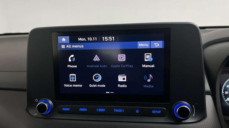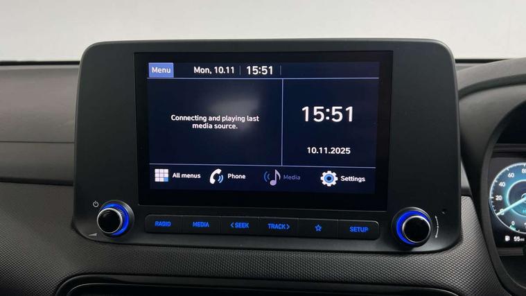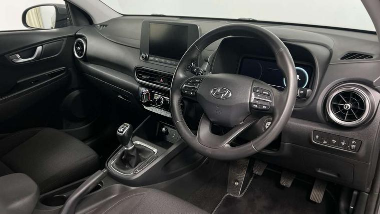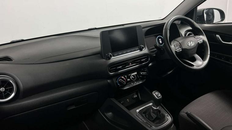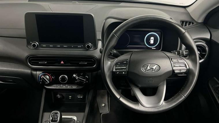 8" Touchscreen display audio + smart device integration, Bluetooth connectivity, Cruise control + speed limiter, Digital clock, Driver attention warning, Driver supervision instrument cluster with 10.25" LCD display, eCall emergency call system, Forward collision avoidance assist with pedestrian detection, Lane follow assist, Lane keep assist, Leading vehicle departure alert (LVDA), Parking system with rear camera and guidance system, PAS, Phone connection with apple carPlay and android auto, Rear parking sensor, Roadside assistance, Windscreen washer fluid sensor and warning indicator, 6 speed intelligent manual transmission, 6 speakers (2 front, 2 tweeters, 2 rear), Front USB ports, RDS and Digital DAB, Steering wheel mounted audio/phone controls, Automatic headlights with dusk sensor, Body colour door mirrors and handles, Door mirror integrated indicators, Electric front/rear windows with drivers one touch/anti-trap, Electrically adjustable and heated door mirrors, Halogen headlights, Halogen rear lights, LED daytime running lights, Positioning Lights - LED, Rain sensor, Rear roof spoiler with integrated LED brake light, Rear side wing doors, Rear wiper, Roof rails, Tinted glass with front door glass and windscreen with shade band, 12V power outlet in front console, 3 seat bench in 2nd row, 60/40 split folding rear seat, Adjustable head restraints, Air conditioning, Centre interior light, Cloth upholstery, Door scuff plate, Driver's seat height adjustment, Driver/passenger sunvisors and illuminated vanity mirrors, Front interior light, Front passenger seat manual adjustments, Height/reach adjustable steering column, Isofix rear child seat fastenings, Leather wrapped steering wheel and gear knob, Luggage compartment lighting, Luggage hooks, Metal paint effect interior door handles, Parcel shelf, Rear centre console with air vents, Single front passenger seat, Sunglasses holder, Vertical adjustment rear head restraints, Trailer wiring package - Kona, Airbags - front, front side and curtain airbags, Anti-lock brake system (ABS), Childproof rear door locks, Downhill brake control, EBD + Brake Assist, Electronic stability control, Fasten seatbelt reminder, Fixed 3 point for second row centre passenger seatbelt, Front seatbelt pretensioners, Height adjustable front seatbelts, Hill start assist control (HAC), Manual parking brake, Passenger airbag deactivate switch, Rear seat alert, Traction control, Tyre pressure monitoring system, Alarm/immobiliser, Deadlocks, Folding key, Locking wheel nuts, Remote central locking, 17" Alloy wheels,