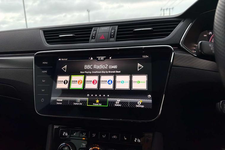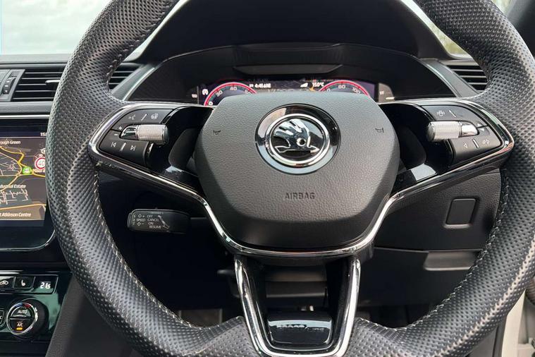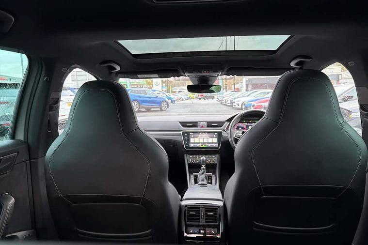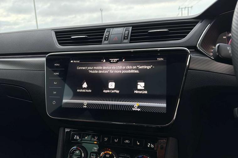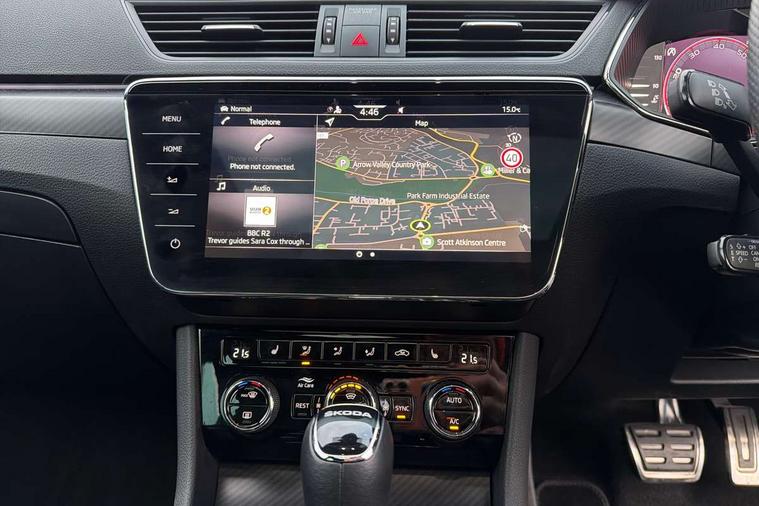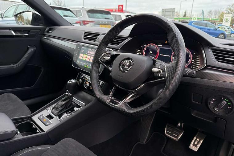 Bluetooth system, CareConnect and Emergency Call, Columbus HDD satellite 3D map navigation with 9.2" colour touch screen, web radio, integrated Wi-Fi, Driver fatigue sensor, Front assist with pedestrian protection, Progressive dynamic steering, Stop/start engine system and energy recovery, Virtual cockpit, Voice control system, Wireless smartlink apple carplay, SmartLink+ android auto, XDS+, 2 USB ports, Bolero radio with 8" touchscreen display, DAB Digital radio, 3rd brake light, Aero front windscreen wipers with intermittent function, Auto dimming rear view mirror, Black rear badge, Body colour door handles, Cornering front fog lights, Electrically adjustable heated and folding door mirrors with memory function, Front and rear electric windows, Full matrix LED headlights with AFS LED DRL integrated with headlight washer LED rear lights(High function), dynamic indicators and lighting animation, Gloss black exterior door mirrors with sports styling including front grill, side strip and window surrounds, Gloss black grille surround with gloss black rib elements, Gloss black rear spoiler (roof), Gloss black strip between rear lights, Light assistant (coming/leaving home/tunnel light), Privacy glass, Rain sensor, Rear exhaust diffuser styling elements, Rear side wing doors, Sportline badging, 12v power point in centre console, 3 seat bench in 2nd row, Black roof headlining, Black textile floor mats, Carbon optic interior elements, Electric auxiliary air heater, Front and rear footwell illumination, Front armrest with storage box, Height adjustable front and rear head restraints, Ice scraper, Illuminated and cooled glovebox, Interior lights with control switches, Isofix child seat fittings on outer rear seats, LED front and rear reading lights, Microsuede/leather upholstery with silver diamond stitching sports seats, One umbrella compartments in driver door with one umbrella in drivers door, Overhead glasses storage compartment, Rear centre armrest with cupholders, Removable parcel shelf, Single front passenger seat, Split folding rear seats, Storage compartment with cover in luggage compartment side panels, Ticket holder on A Pillar, LED package plus - Superb, 3 rear seatbelts, 7 airbags - Front, front side, curtain, driver's knee airbag with front passenger deactivation switch, Driver and passenger seatbelts with warning light, Electronic parking brake, ESC including ABS, EBV, MSR, ASR, EDS, HBA, DSR, RBS, CBC, multi-collision brake (MKB) and Auto hold, Hill start assist, Power operated child lock in rear doors, Tyre pressure monitor, Alarm with interior monitoring tilt sensor and back up horn, Electronic engine immobiliser, Keyless entry and start/stop, Remote central locking with SAFE system, Third remote key,